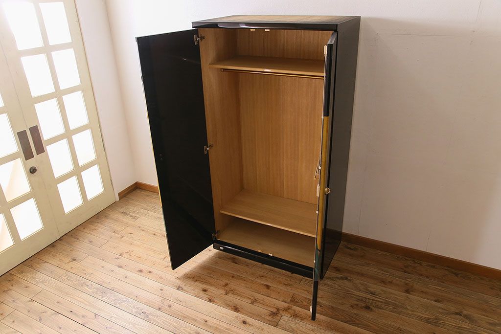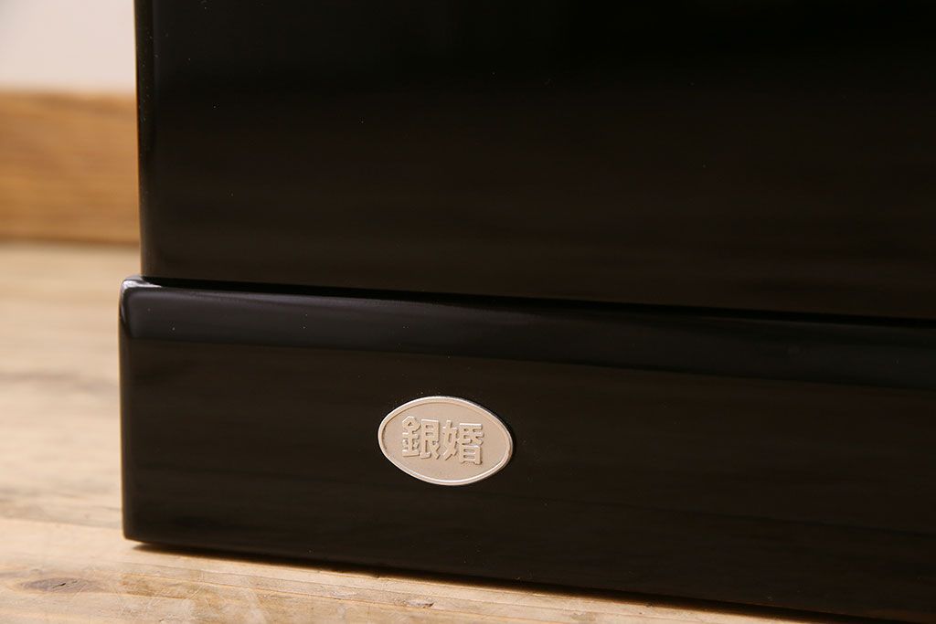 艶やかな黒の下地に鮮やかな花の絵が目を引く衣装箪笥です。