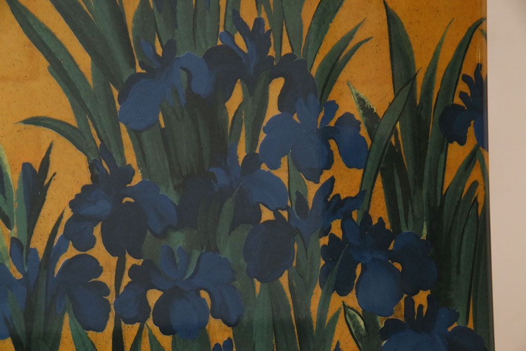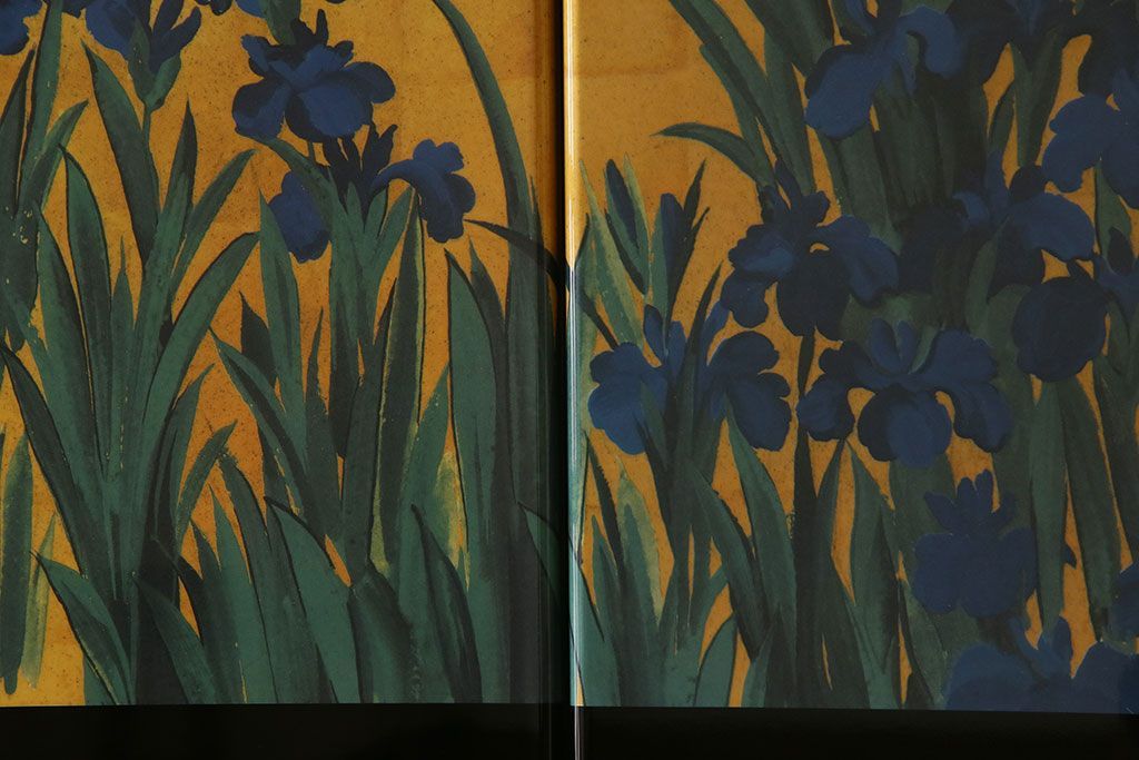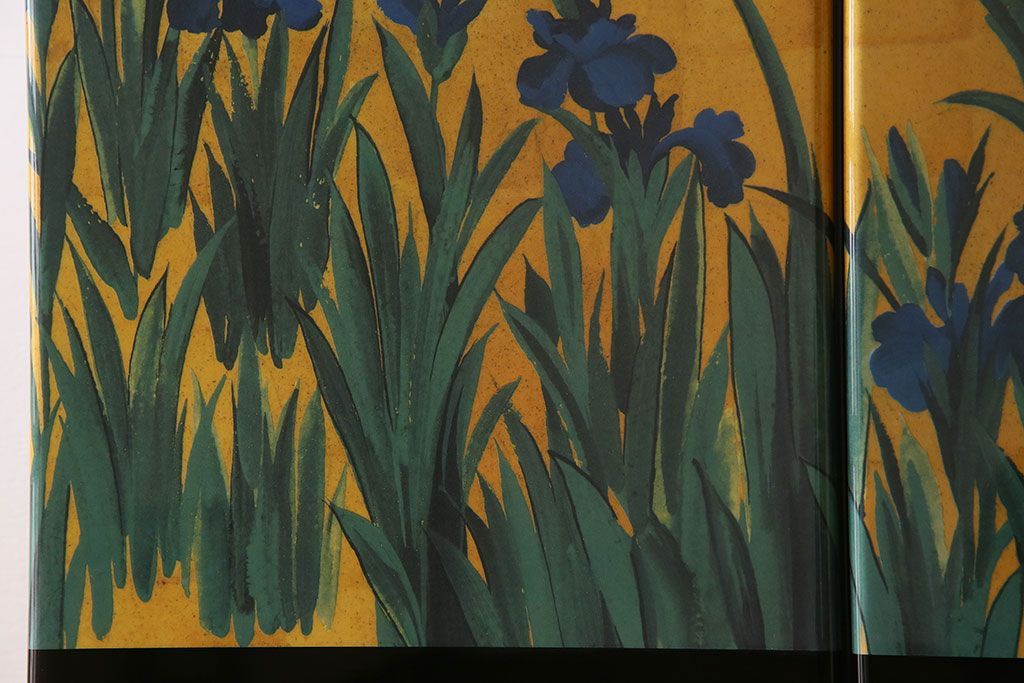 装飾的大画面を得意とする画家、尾形光琳の燕子花図(左隻)を再現しています。