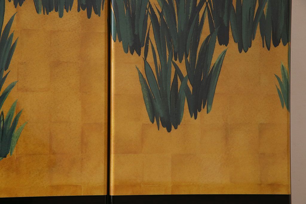 装飾的大画面を得意とする画家、尾形光琳の燕子花図(右隻)を再現しています。