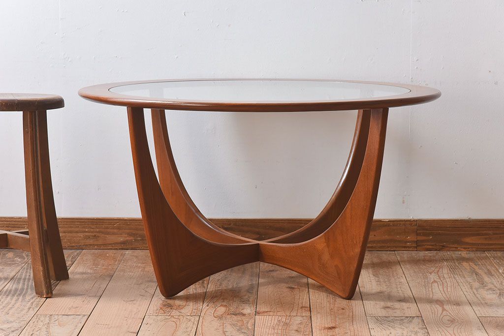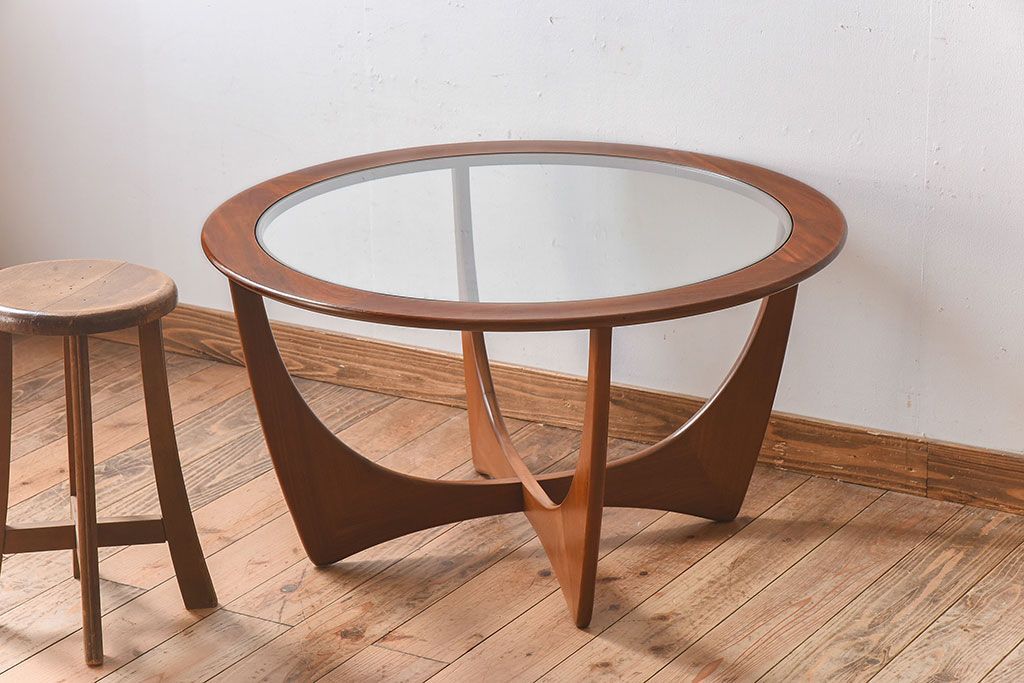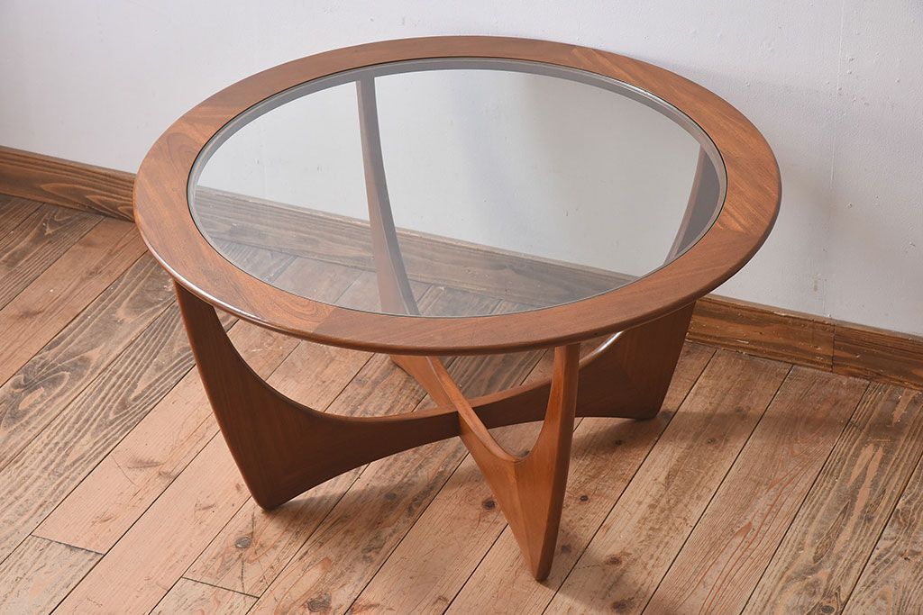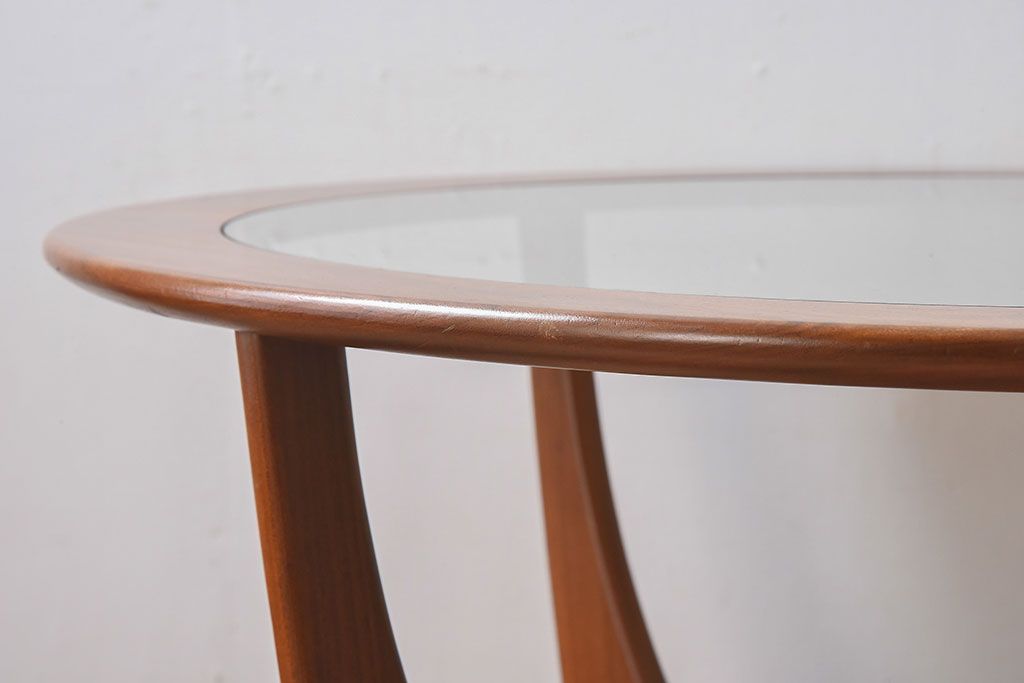 ラフジュ工房> テーブル> センターテーブル・ローテーブル > ヴィンテージ家具 G-plan(ジープラン) 北欧ビンテージ ガラストップラウンドテーブル(センターテーブル・コーヒーテーブル)