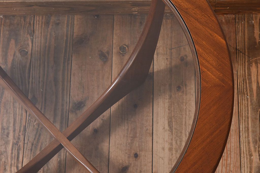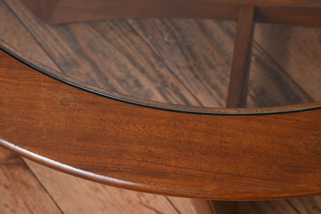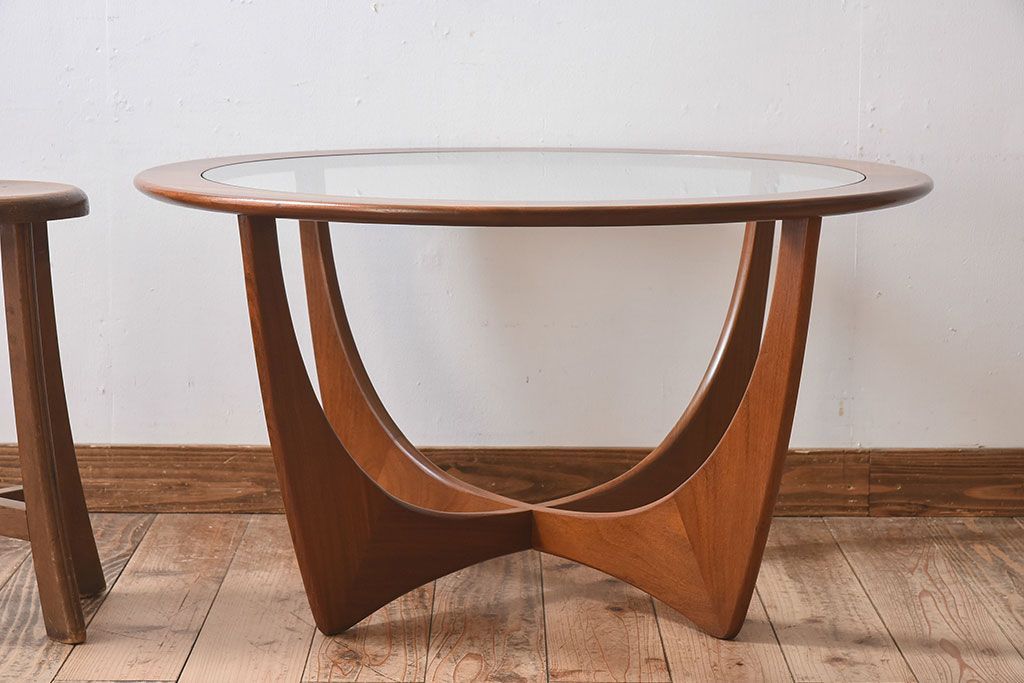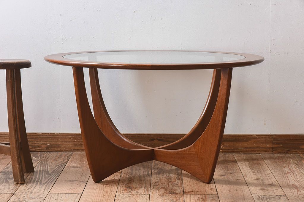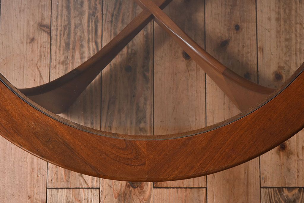ラフジュ工房> テーブル> センターテーブル・ローテーブル > ヴィンテージ家具 G-plan(ジープラン) 北欧ビンテージ ガラストップラウンドテーブル(センターテーブル・コーヒーテーブル)