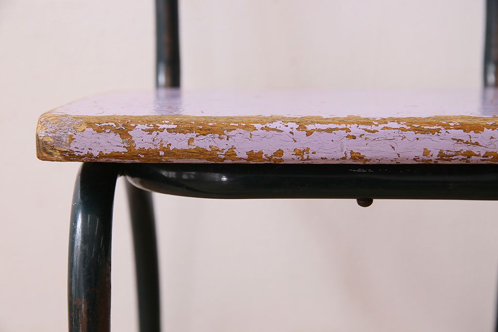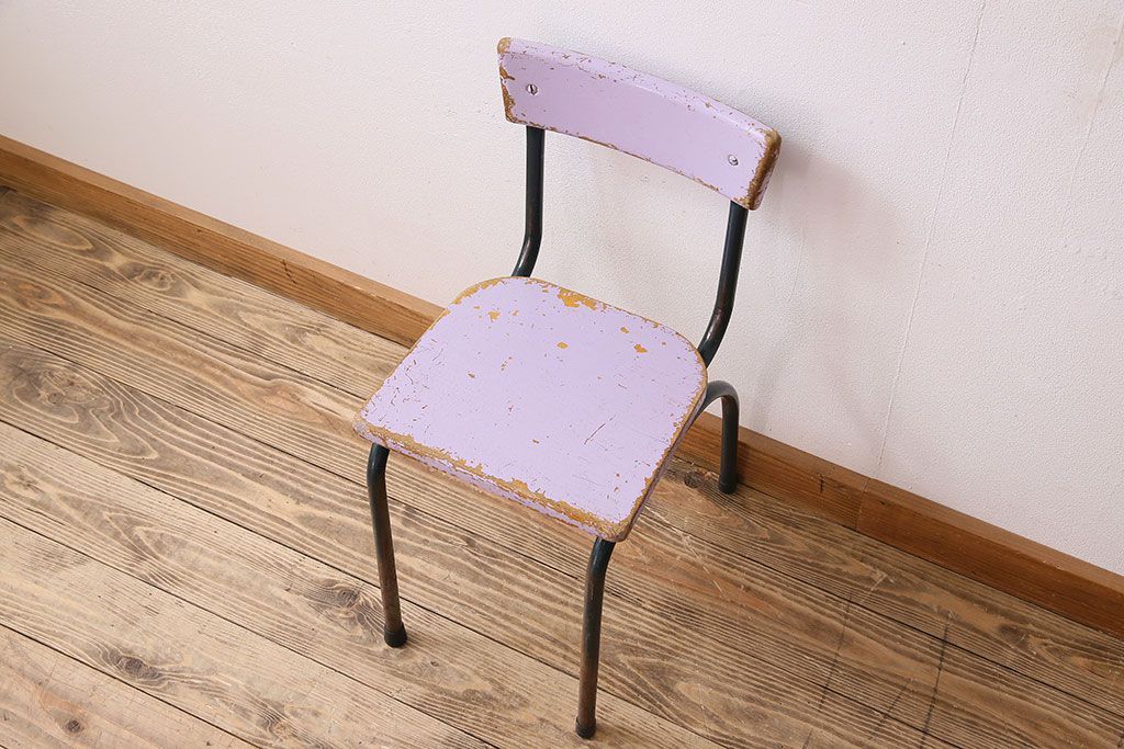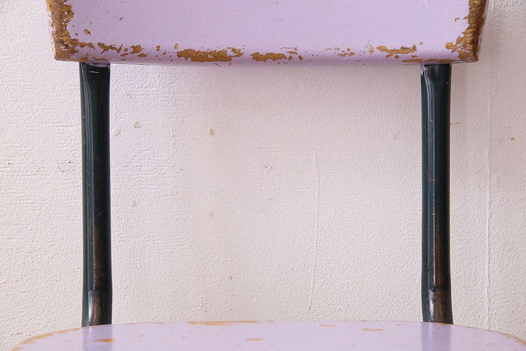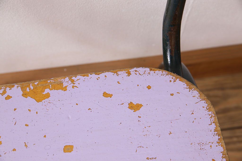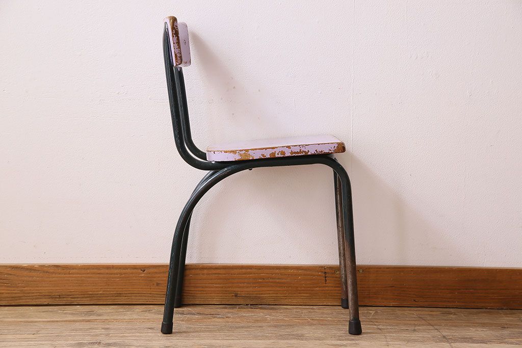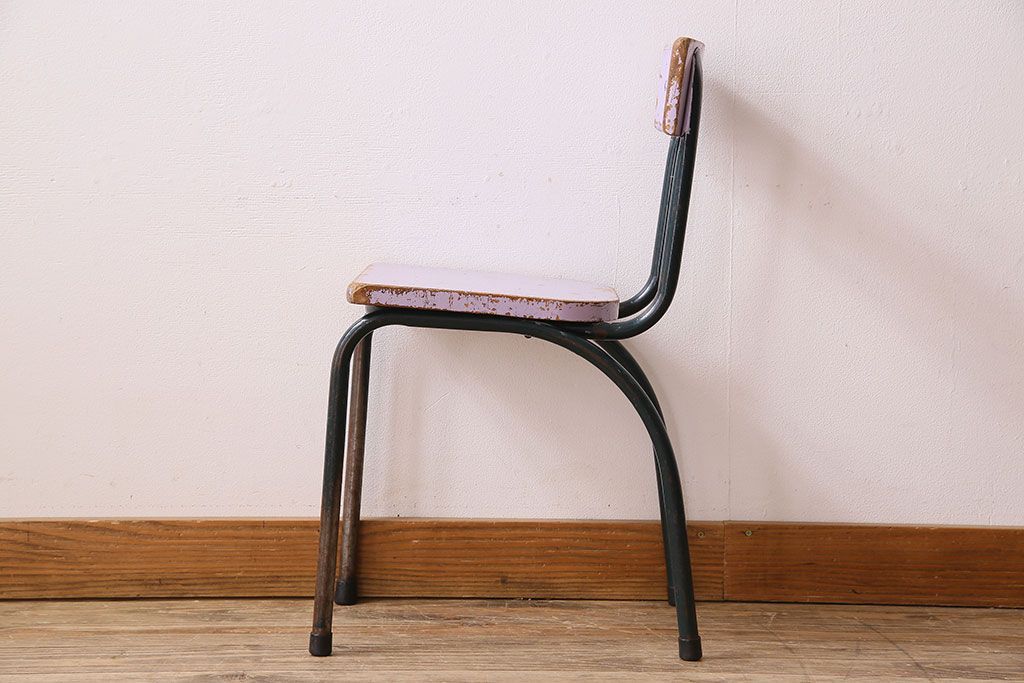 ラフジュ工房> 椅子・ベンチ> アームチェア > ヴィンテージ家具 イギリスビンテージ ピンクペイント 鉄脚スクールチェア(チャイルドチェア、キッズチェア、ダイニングチェア、板座チェア、ベビーチェア、こども椅子、子どもイス、ビンテージ、英国)(3)(R-024500)
