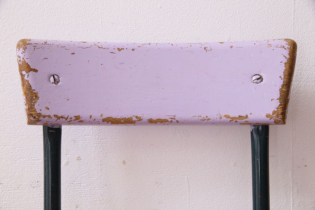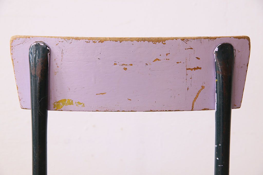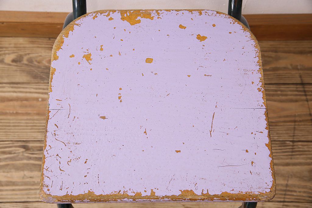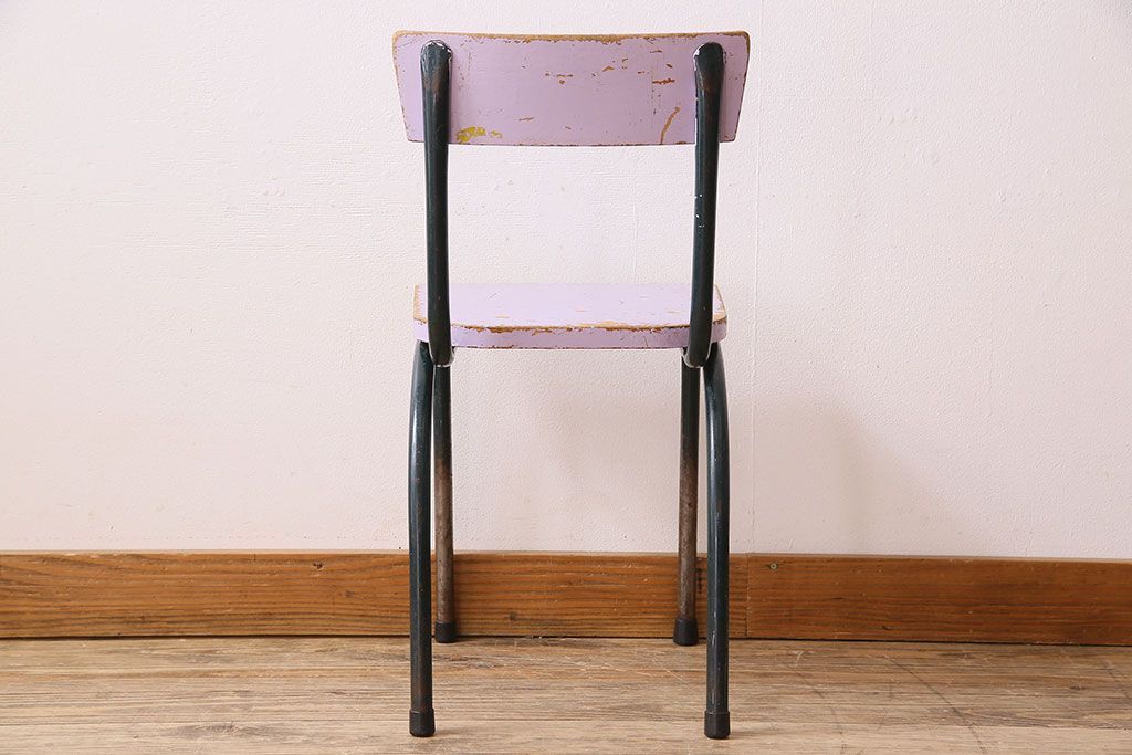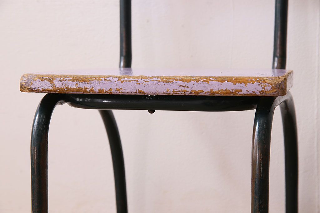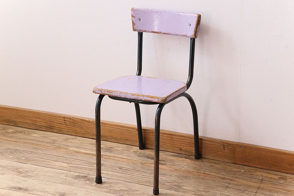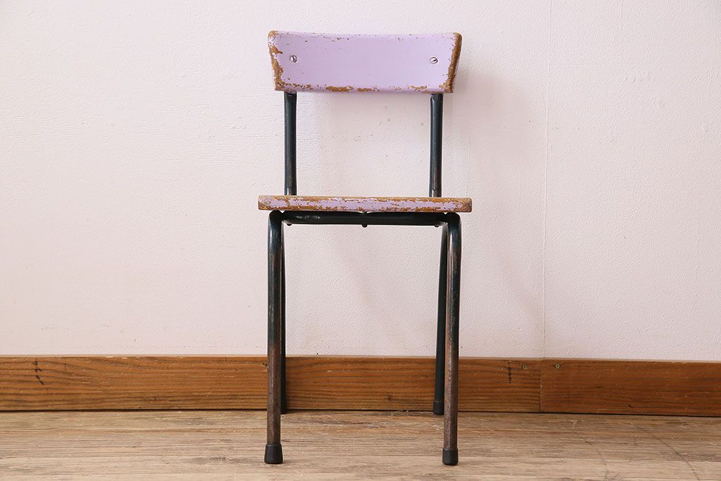 ラフジュ工房> 椅子・ベンチ> アームチェア > ヴィンテージ家具 イギリスビンテージ ピンクペイント 鉄脚スクールチェア(チャイルドチェア、キッズチェア、ダイニングチェア、板座チェア、ベビーチェア、こども椅子、子どもイス、ビンテージ、英国)(3)(R-024500)