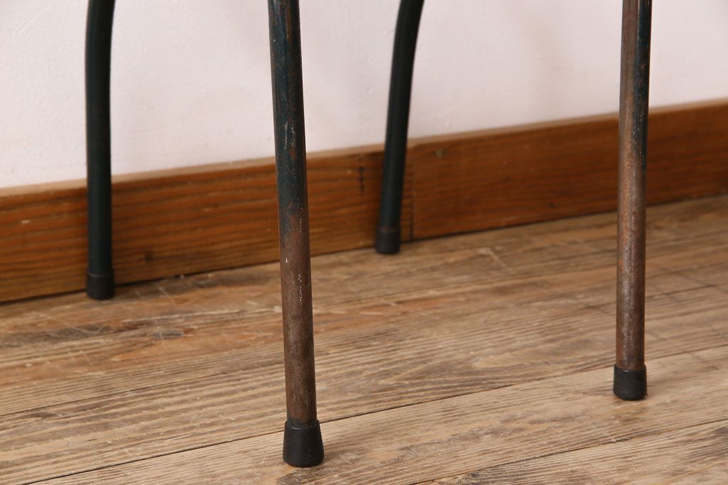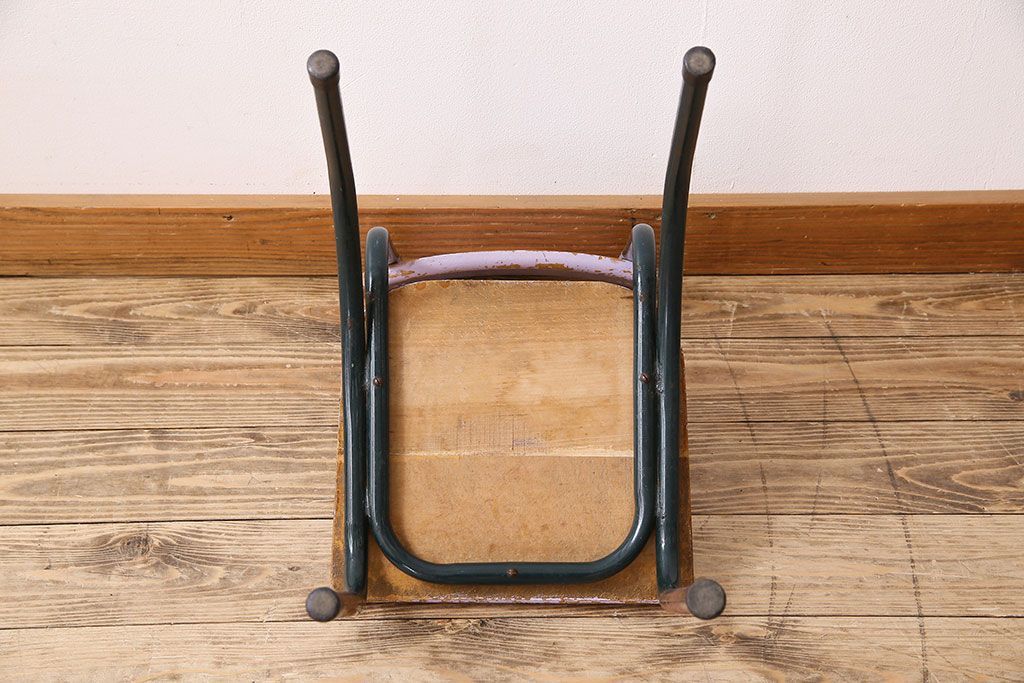 ヴィンテージ家具 イギリスビンテージ ピンクペイント 鉄脚スクールチェア(チャイルドチェア、キッズチェア、ダイニングチェア、板座チェア、ベビーチェア、こども椅子、子どもイス、ビンテージ、英国)(3)(R-024500)