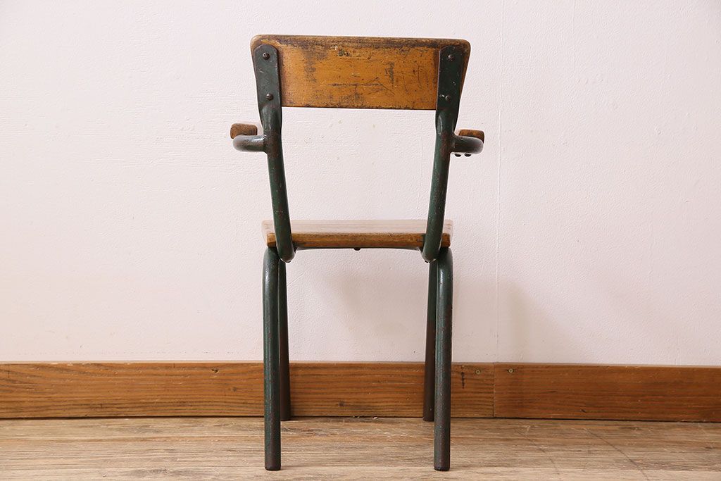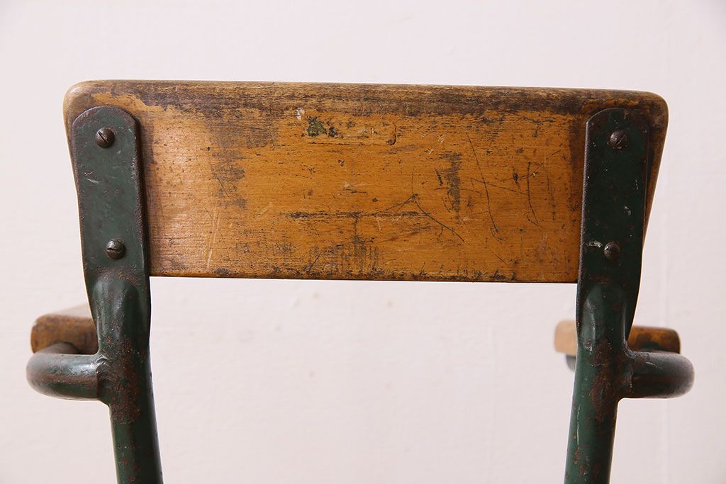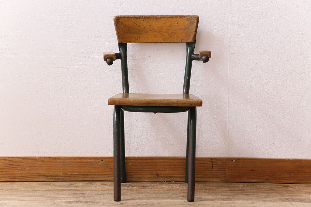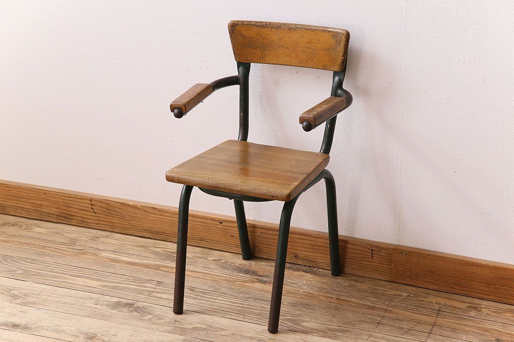 ヴィンテージ家具 イギリス 鉄脚スクールチェア(チャイルドチェア、キッズチェア、アームチェア、ダイニングチェア、板座チェア、ベビーチェア、こども椅子、子どもイス、ビンテージ、英国)