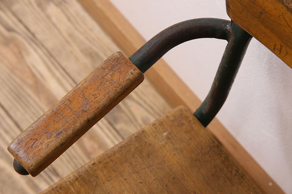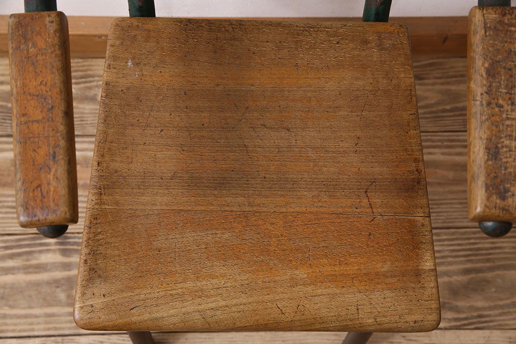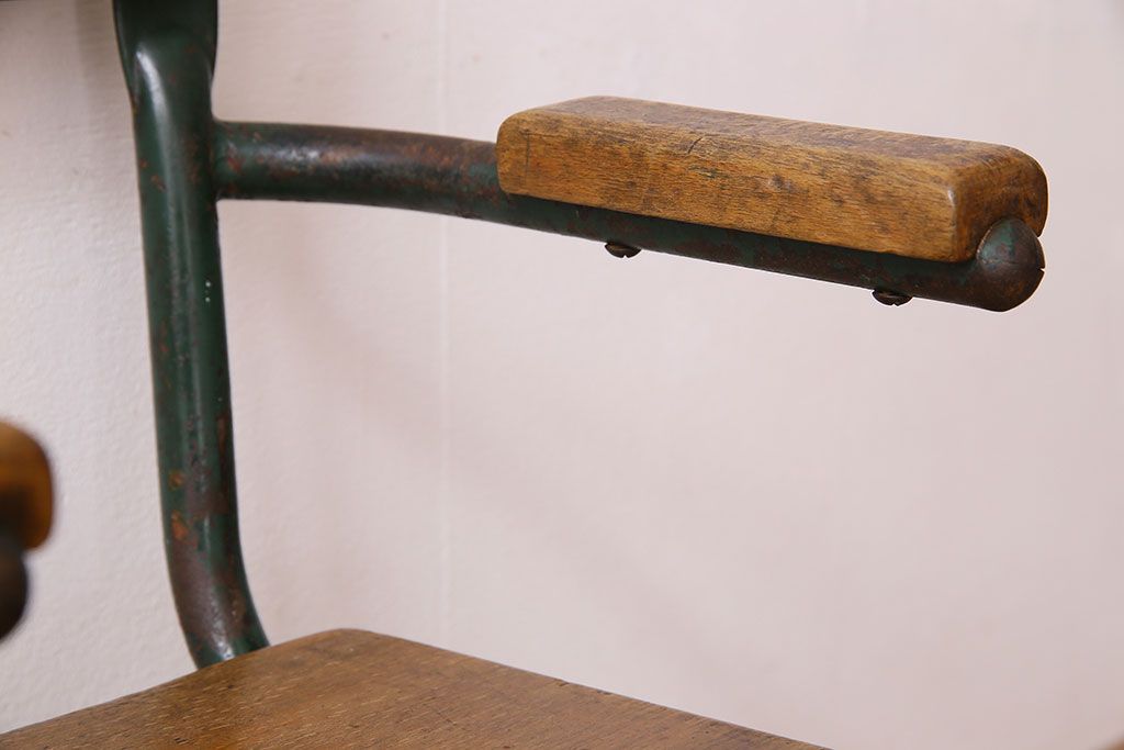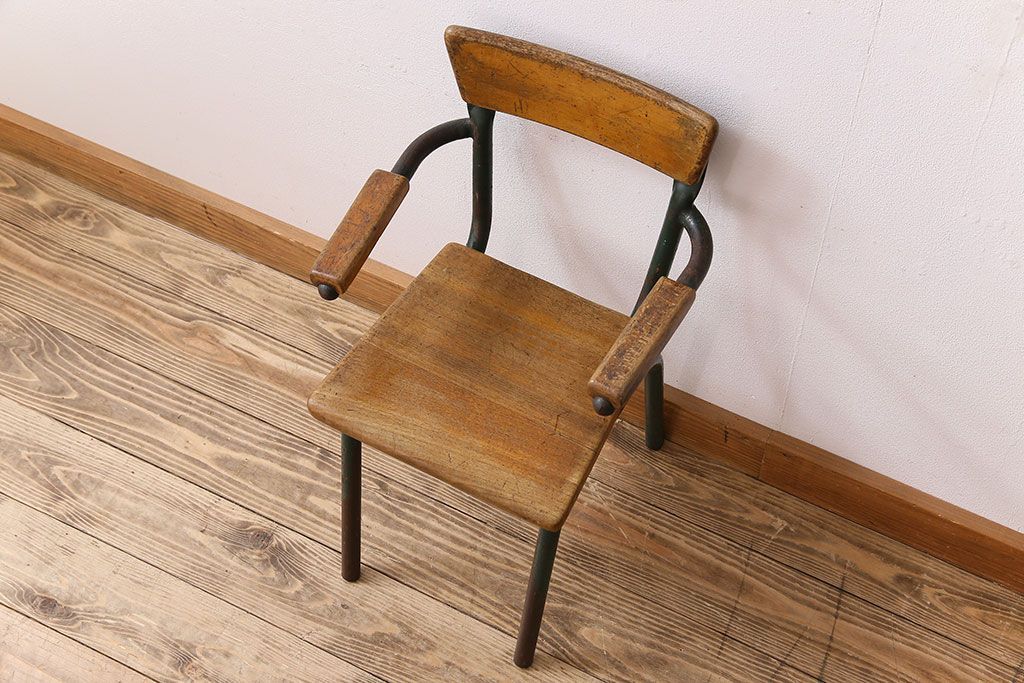 ラフジュ工房> 椅子・ベンチ> アームチェア > ヴィンテージ家具 イギリス 鉄脚スクールチェア(チャイルドチェア、キッズチェア、アームチェア、ダイニングチェア、板座チェア、ベビーチェア、こども椅子、子どもイス、ビンテージ、英国)