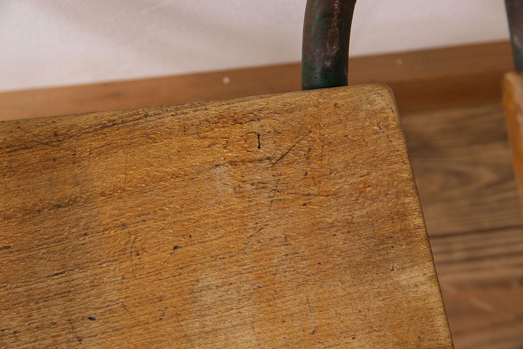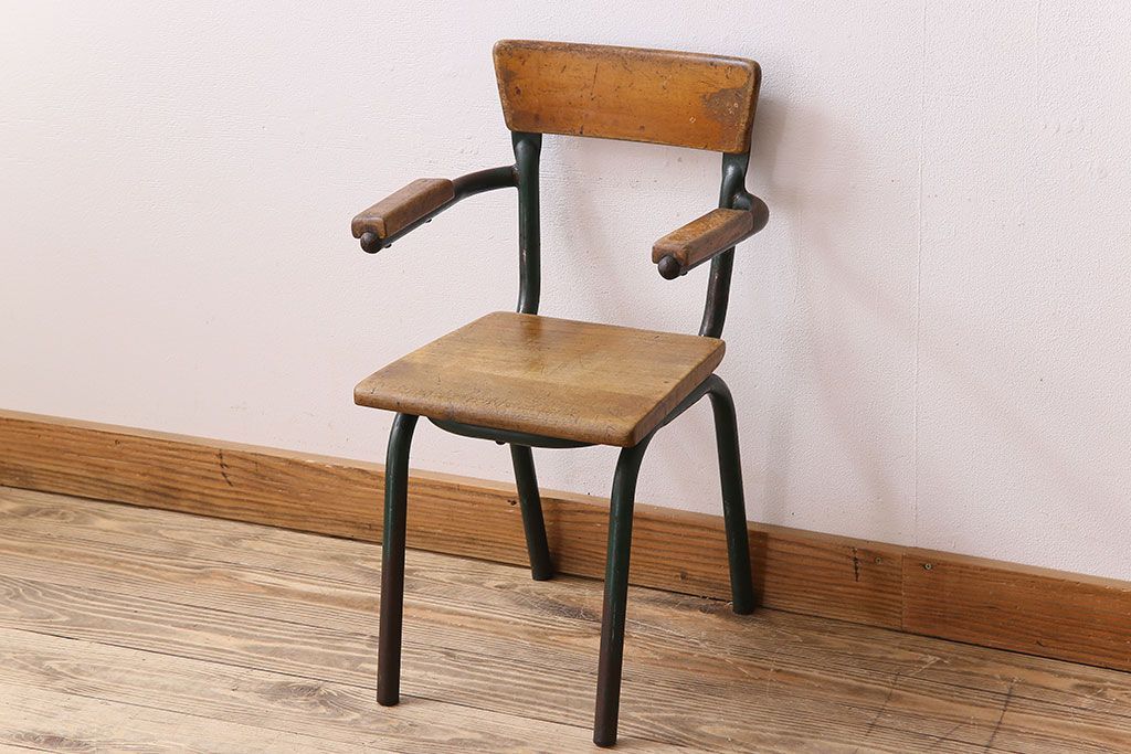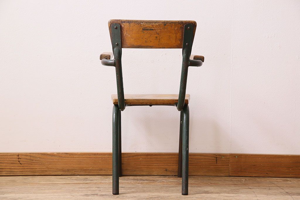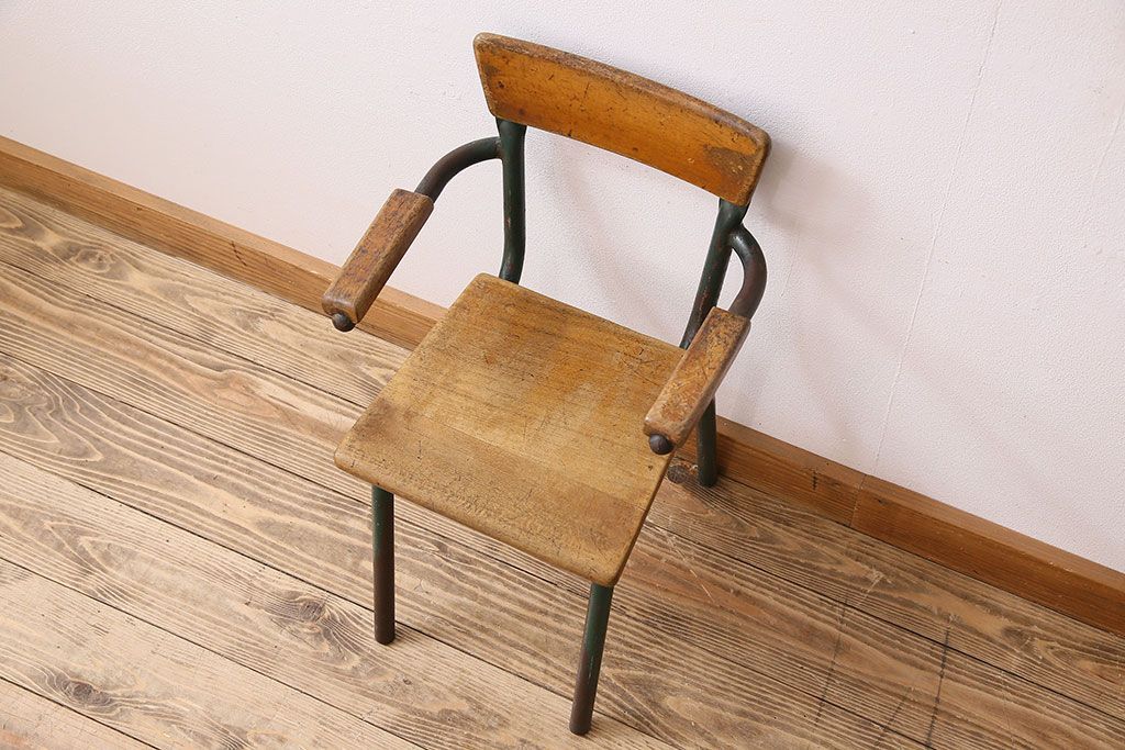ラフジュ工房> 椅子・ベンチ> アームチェア > ヴィンテージ家具 イギリス 鉄脚スクールチェア(チャイルドチェア、キッズチェア、アームチェア、ダイニングチェア、板座チェア、ベビーチェア、こども椅子、子どもイス、ビンテージ、英国)(2)