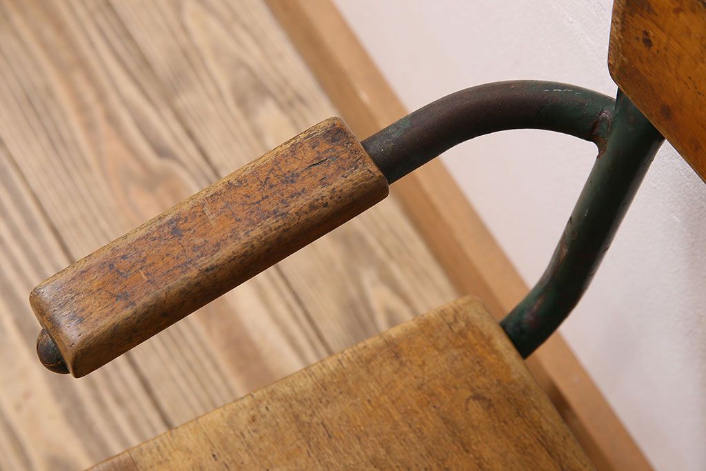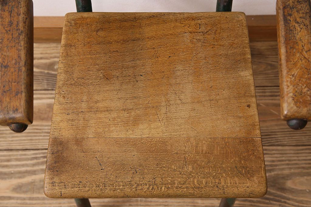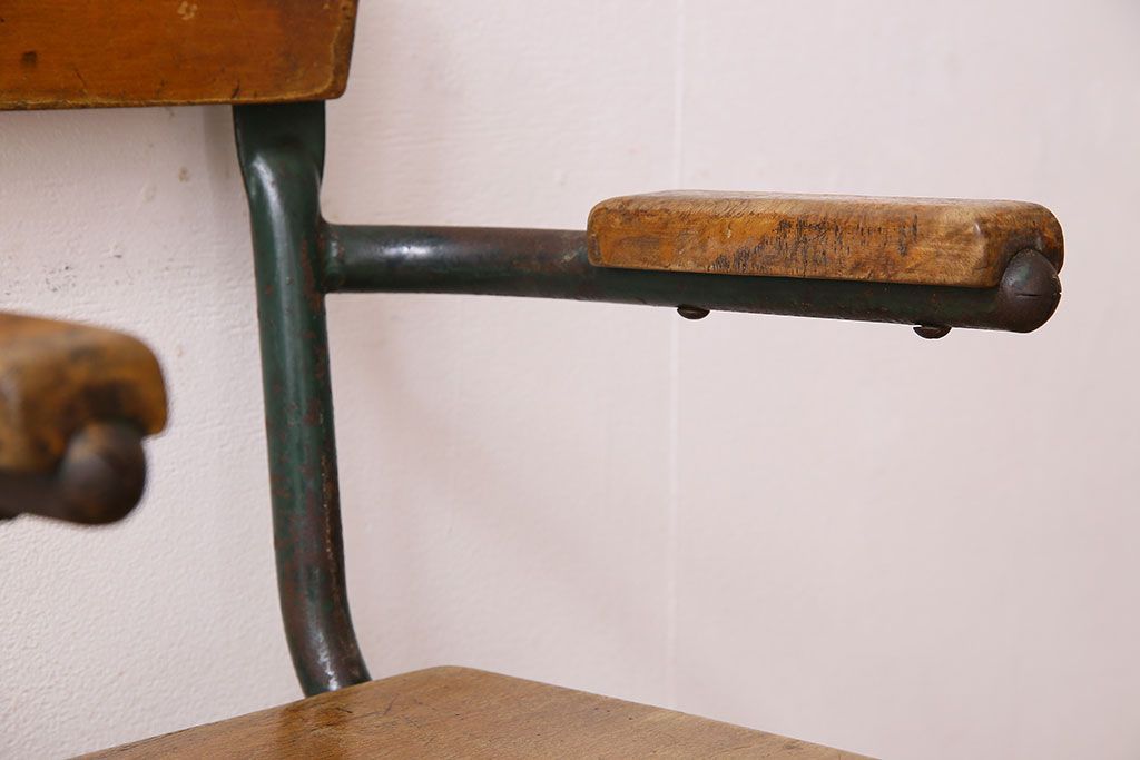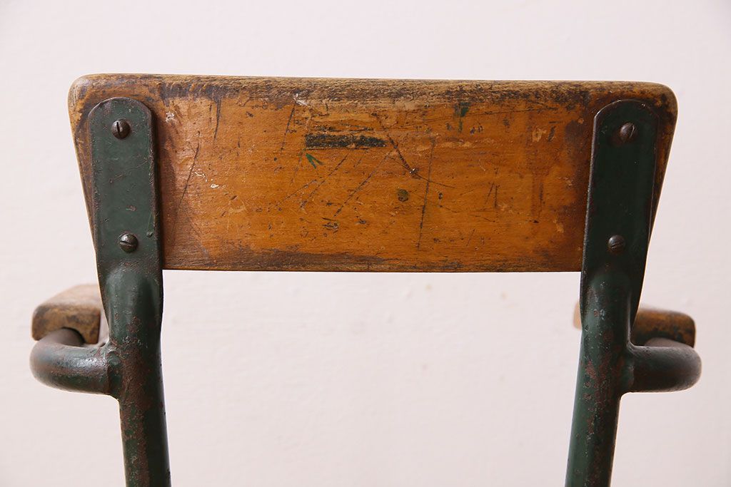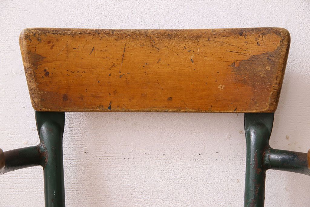 ラフジュ工房> 椅子・ベンチ> アームチェア > ヴィンテージ家具 イギリス 鉄脚スクールチェア(チャイルドチェア、キッズチェア、アームチェア、ダイニングチェア、板座チェア、ベビーチェア、こども椅子、子どもイス、ビンテージ、英国)(2)