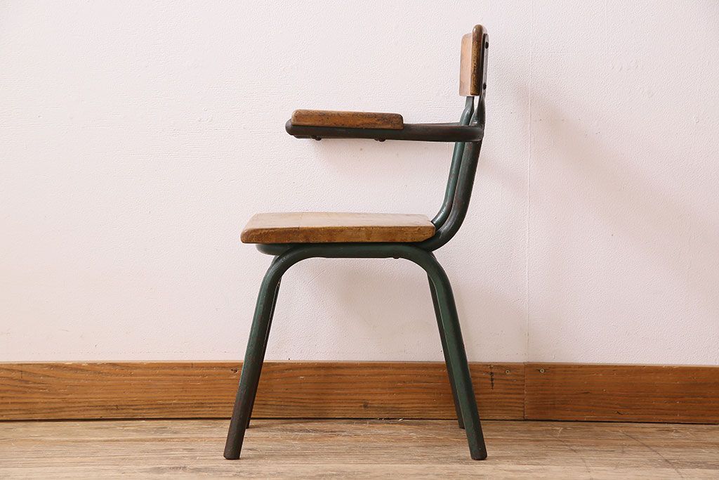 ラフジュ工房> 椅子・ベンチ> キッズチェア・スクールチェア > ヴィンテージ家具 イギリス 鉄脚スクールチェア(チャイルドチェア、キッズチェア、アームチェア、ダイニングチェア、板座チェア、ベビーチェア、こども椅子、子どもイス、ビンテージ、英国)(2)