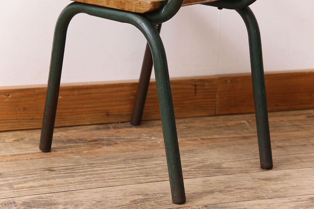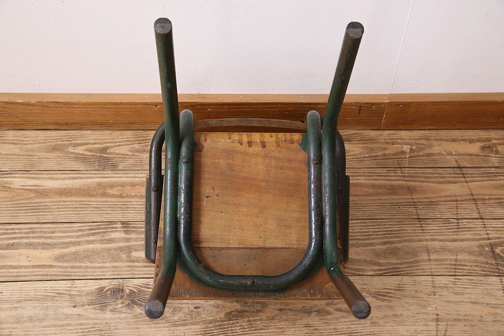 ヴィンテージ家具 イギリス 鉄脚スクールチェア(チャイルドチェア、キッズチェア、アームチェア、ダイニングチェア、板座チェア、ベビーチェア、こども椅子、子どもイス、ビンテージ、英国)(2)