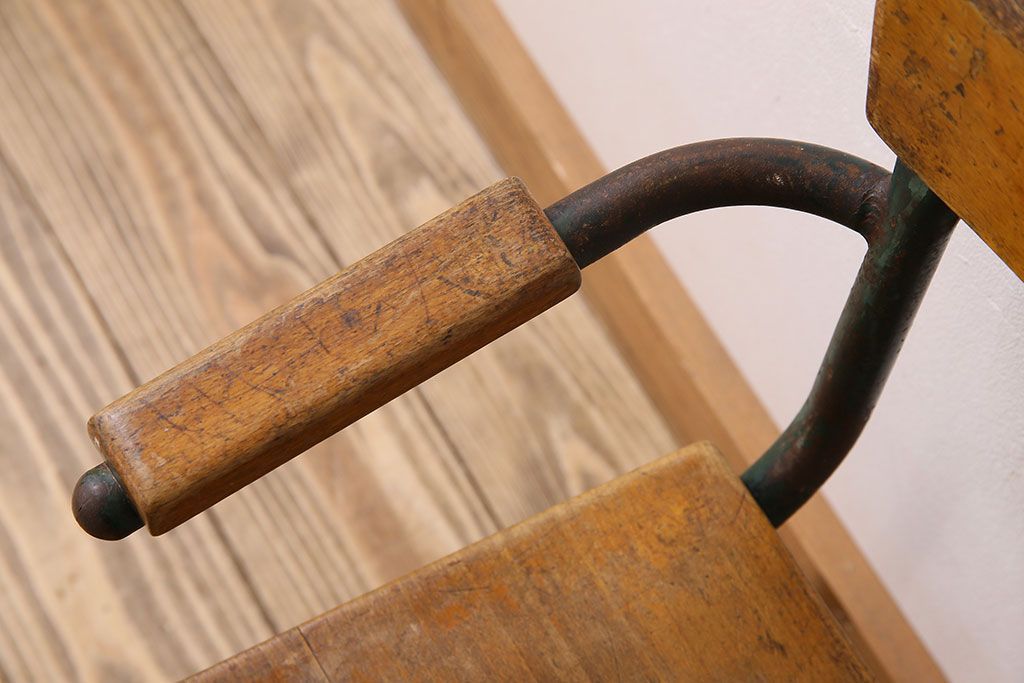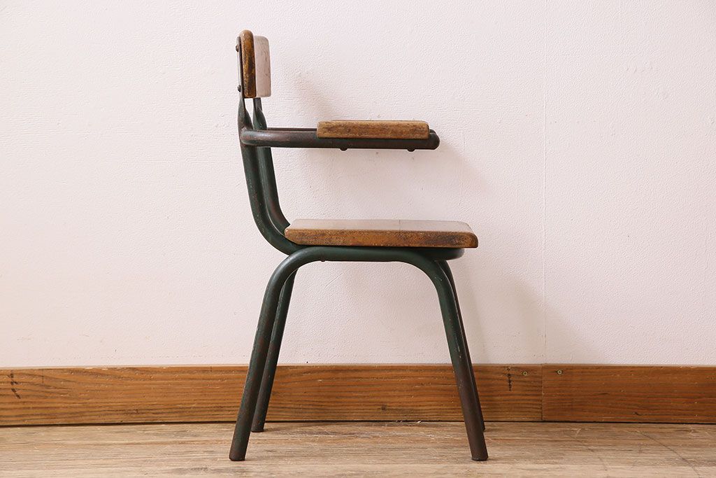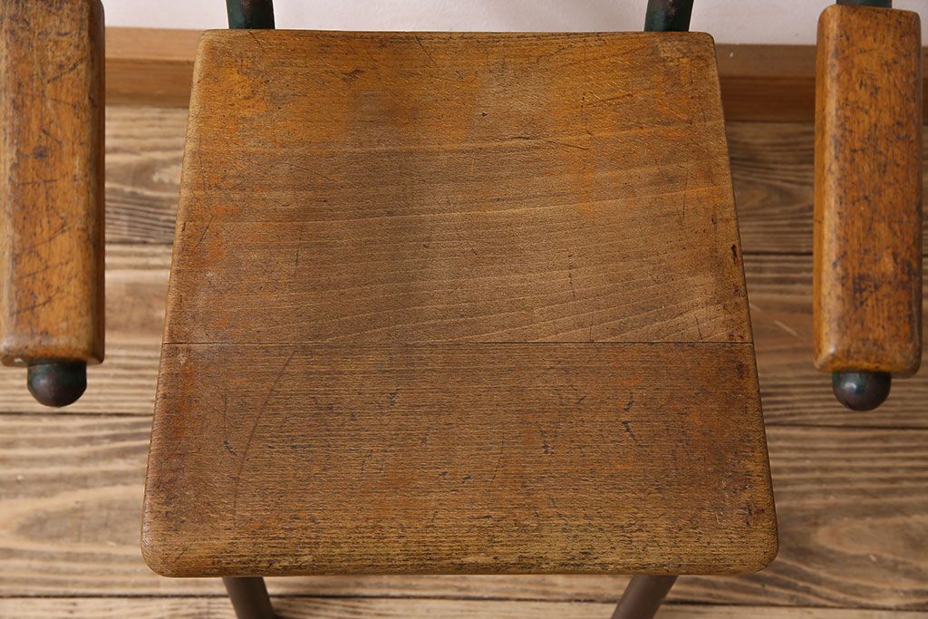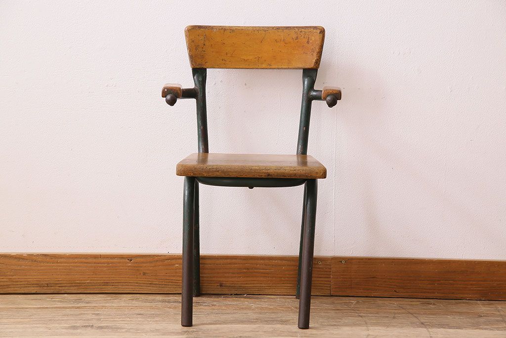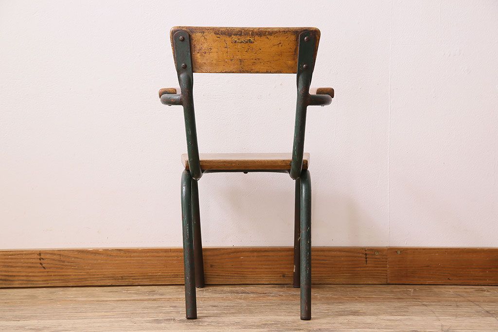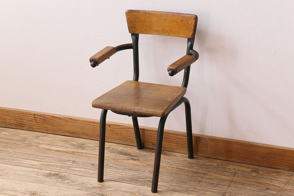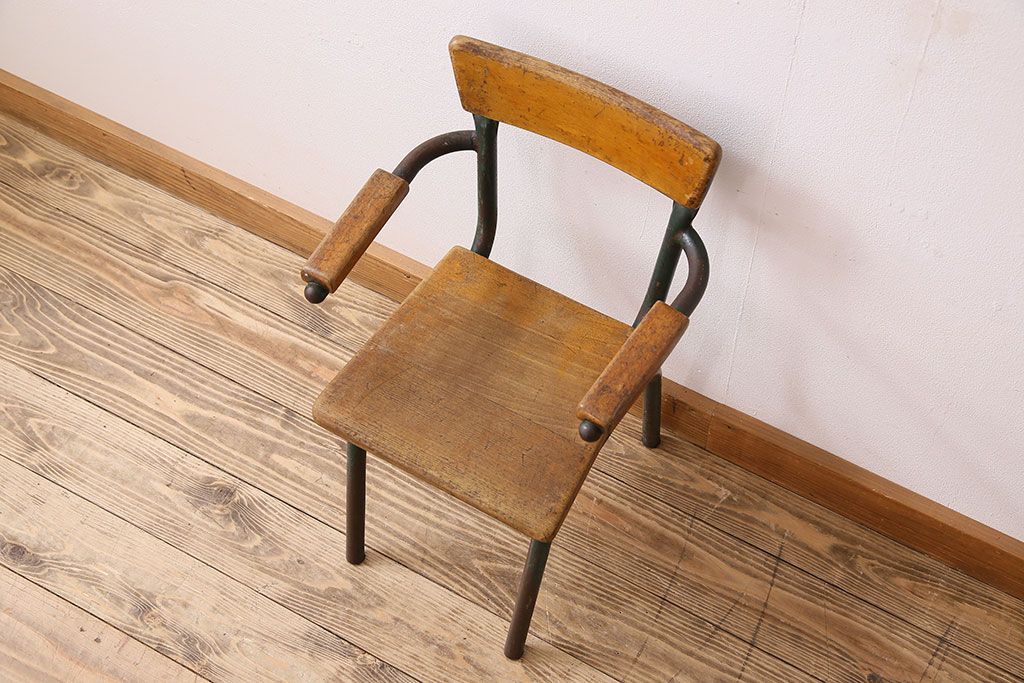 ラフジュ工房> 椅子・ベンチ> アームチェア > ヴィンテージ家具 イギリス 鉄脚スクールチェア(チャイルドチェア、キッズチェア、アームチェア、ダイニングチェア、板座チェア、ベビーチェア、こども椅子、子どもイス、ビンテージ、英国)(3)