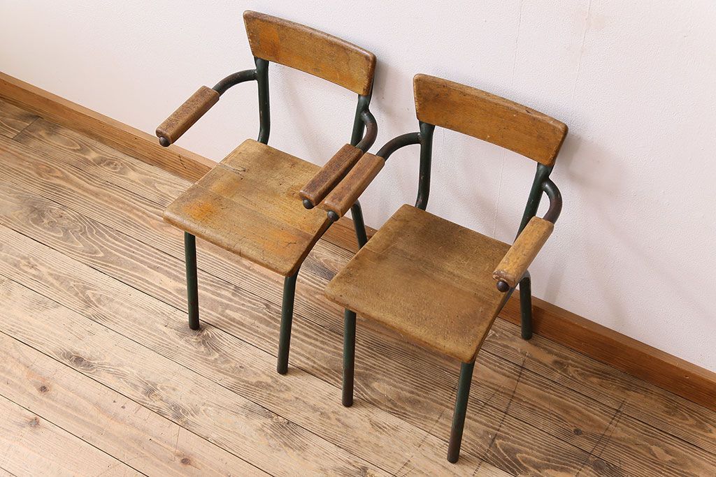 ラフジュ工房> 椅子・ベンチ> アームチェア > ヴィンテージ家具 鉄脚スクールチェア(チャイルドチェア) イギリス ビンテージ 2脚セット(2)