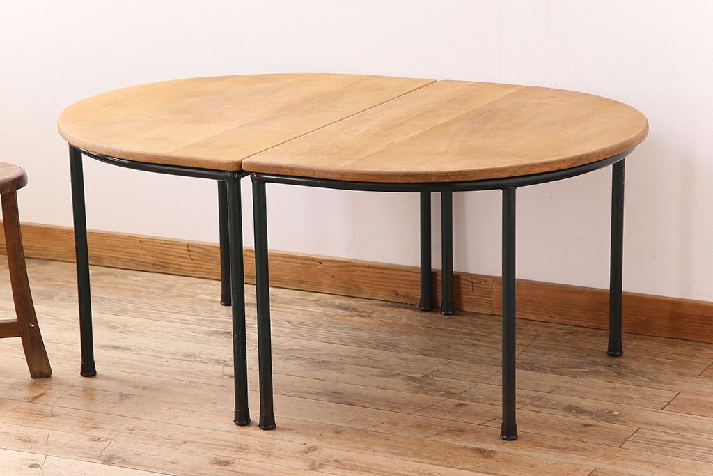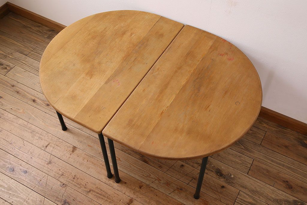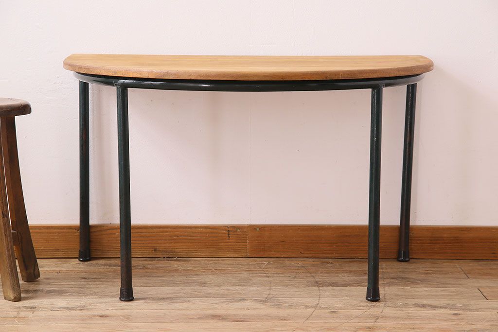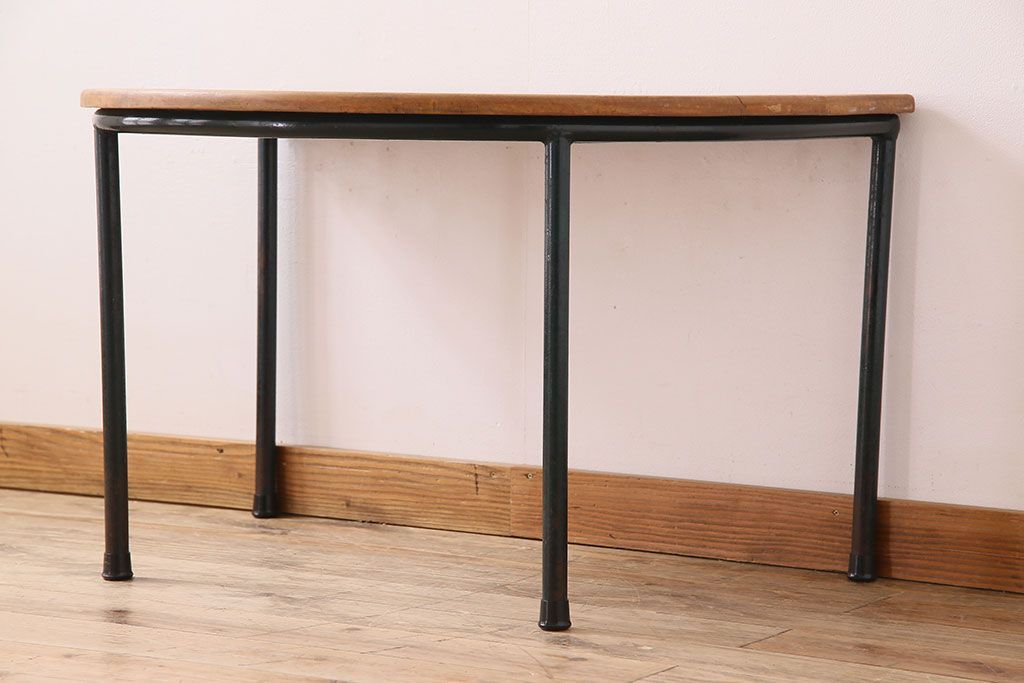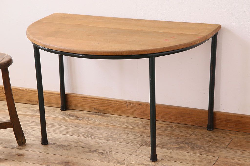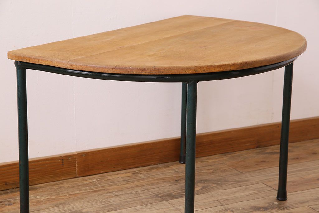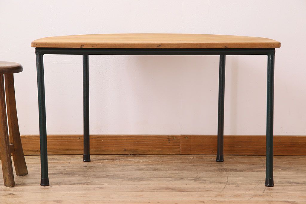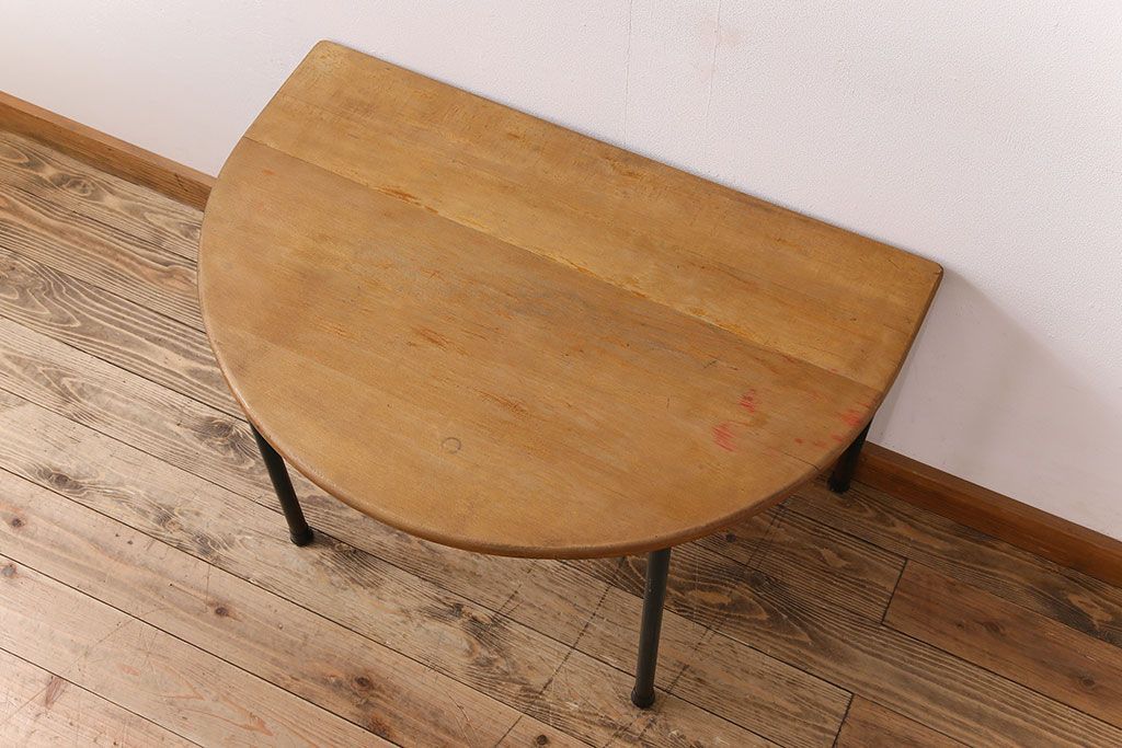 ヴィンテージ家具 半円型天板 鉄脚スクールデスク(キッズデスク) イギリス ビンテージ(2)