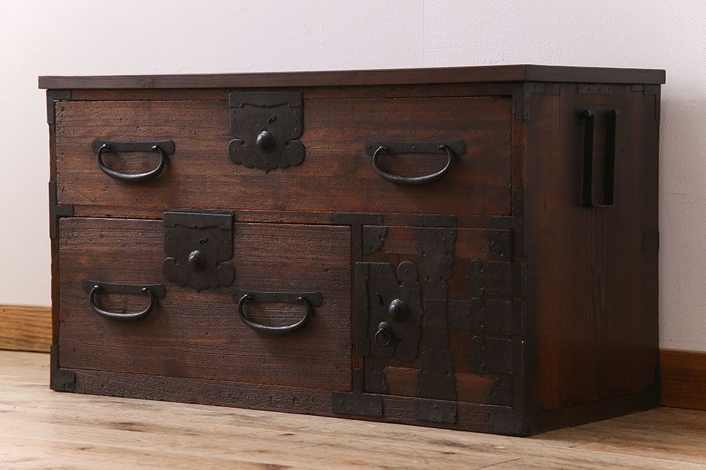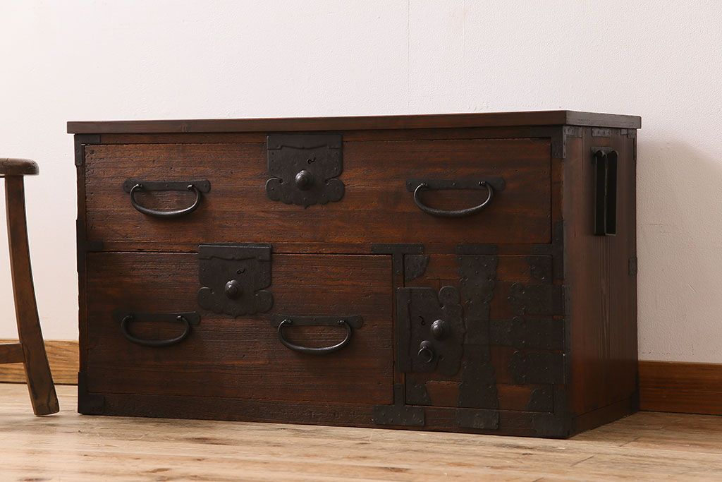 アンティーク家具 檜材天板 アンティークの衣装箪笥ローボード(時代箪笥)