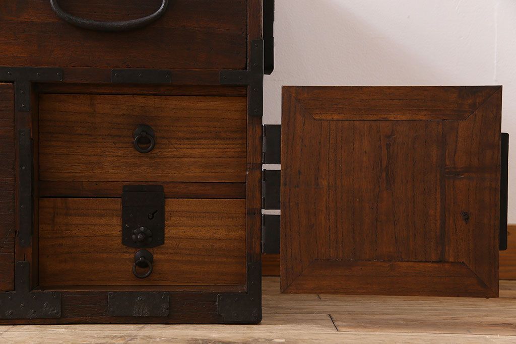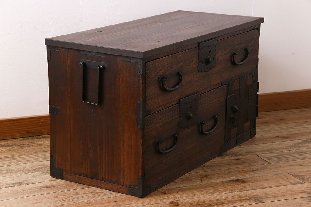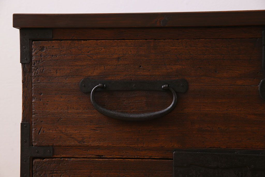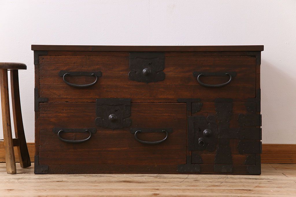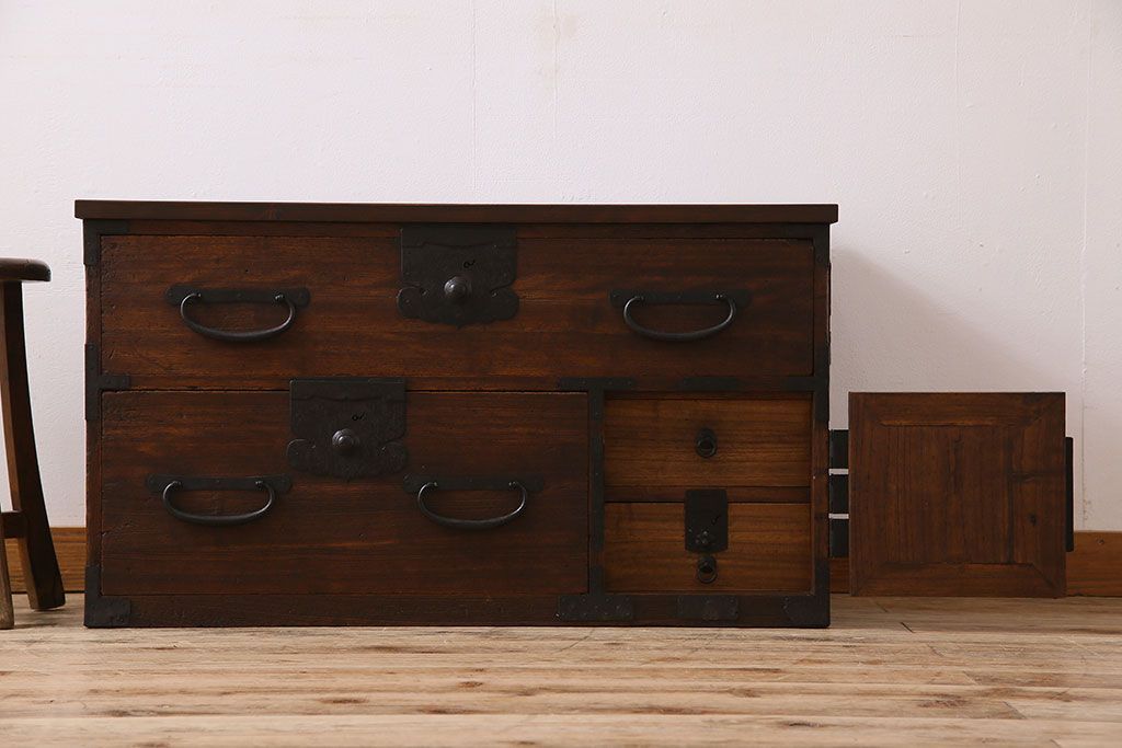 ラフジュ工房> 和箪笥 > アンティーク家具 檜材天板 アンティークの衣装箪笥ローボード(時代箪笥)