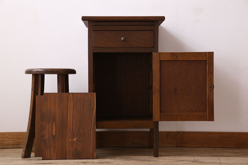 レトロ家具 昭和レトロ 作業台付き!サイドキャビネット(電話台)