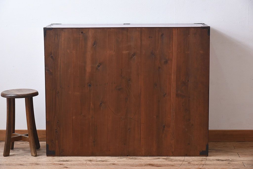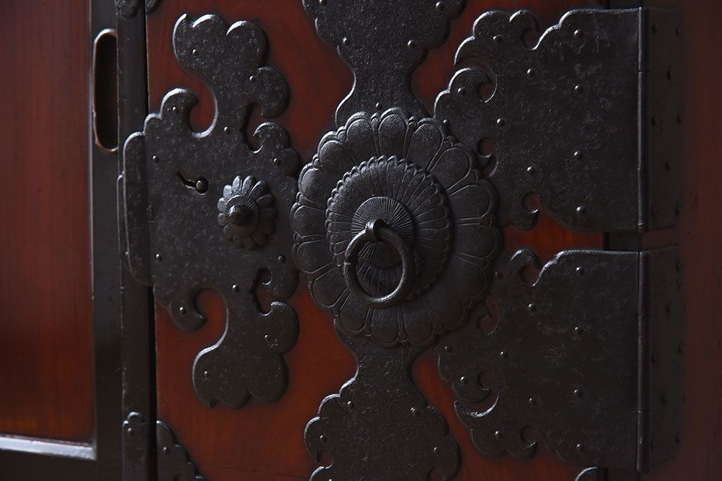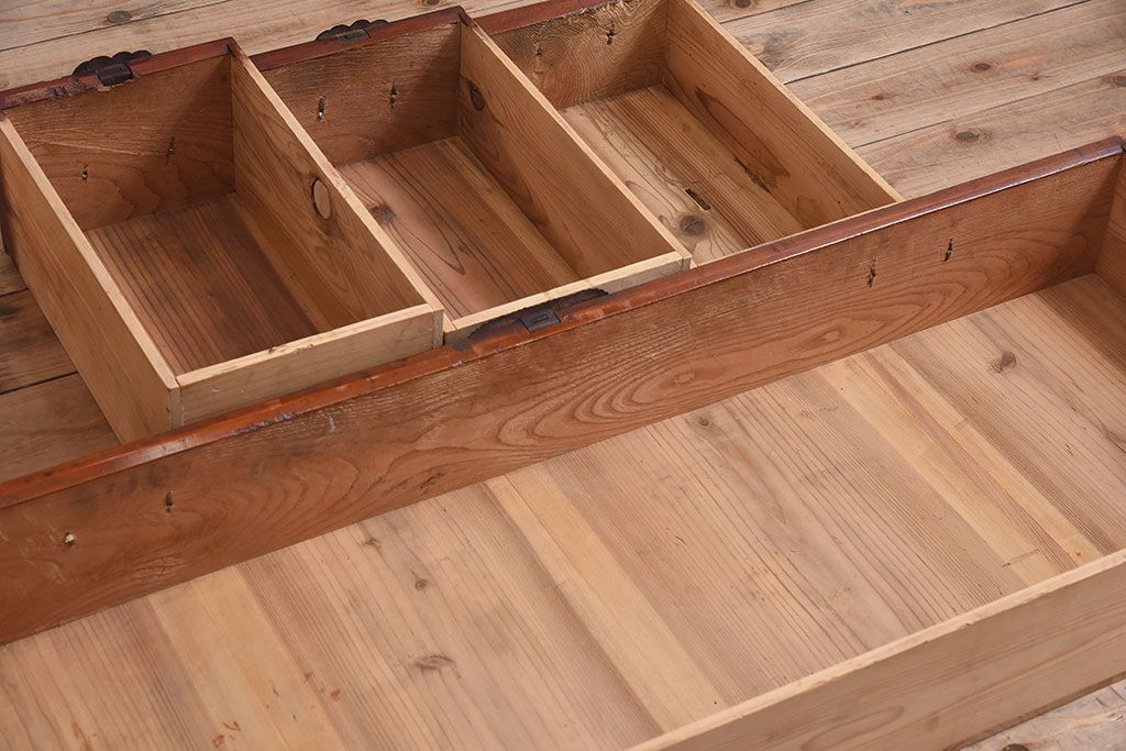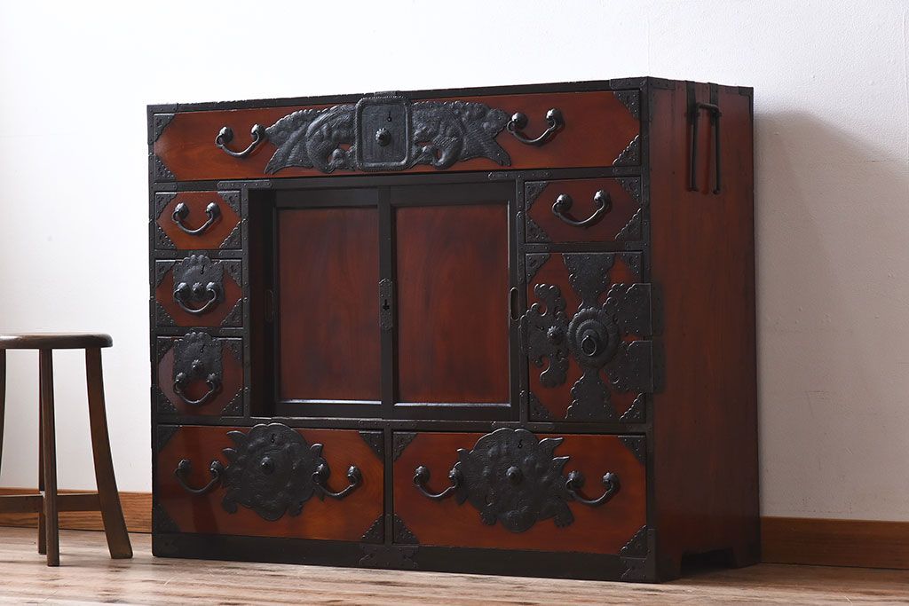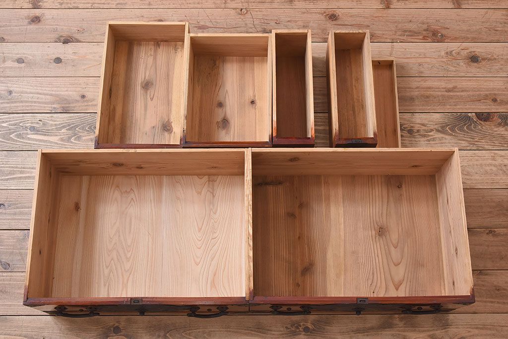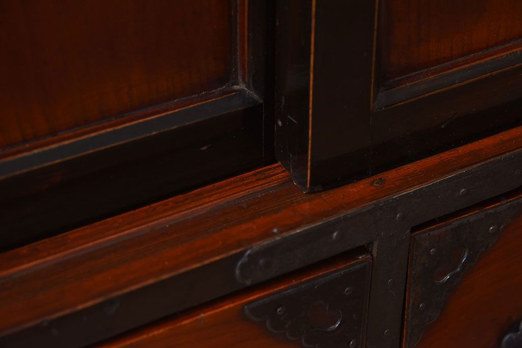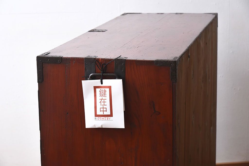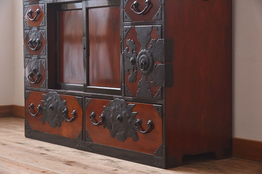 ラフジュ工房> 和箪笥> 船箪笥 > アンティーク家具 珍しい逸品 前面欅材の変わり型アンティーク仙台箪笥(帳場箪笥)