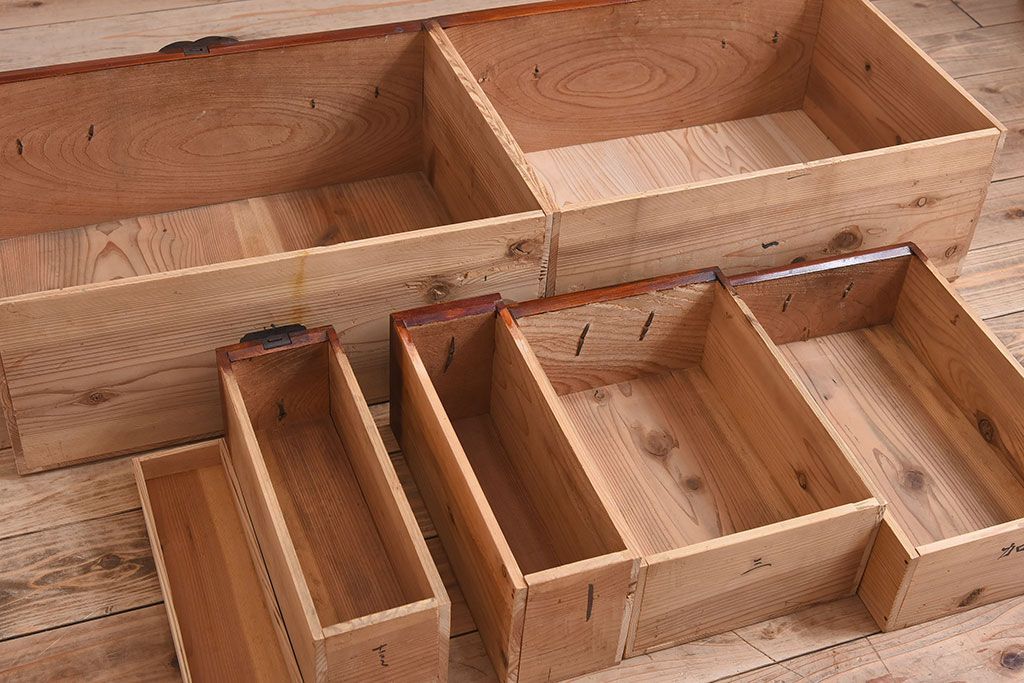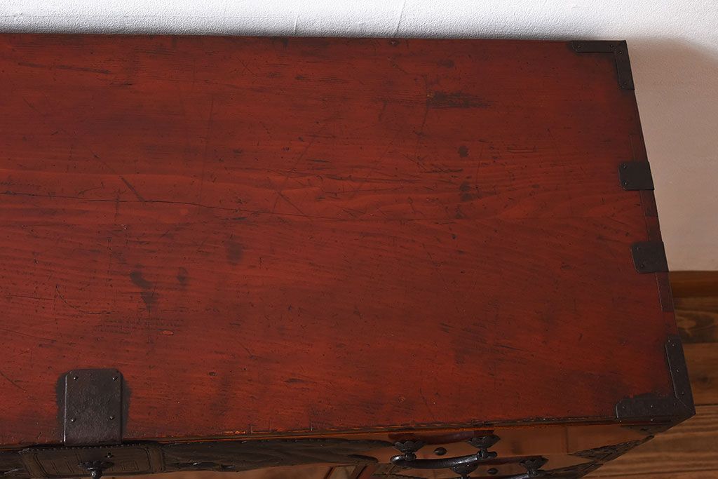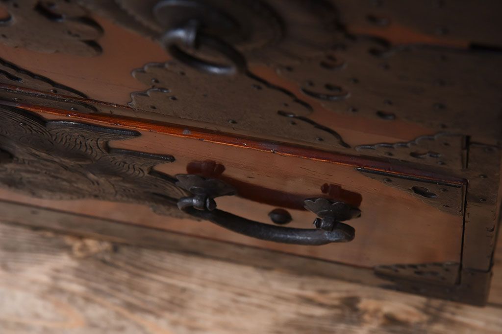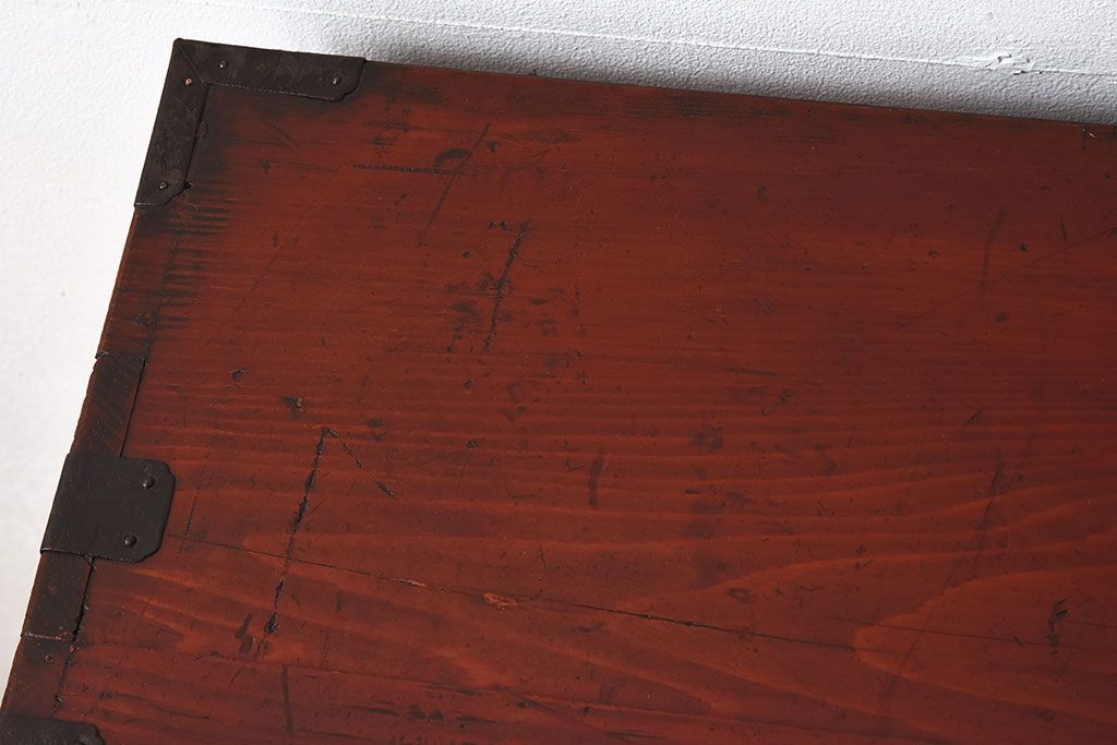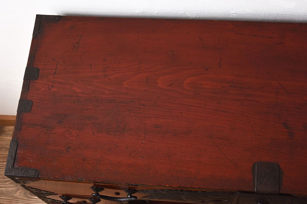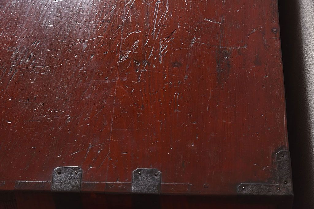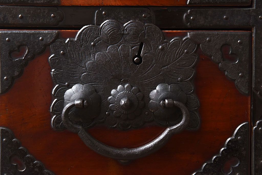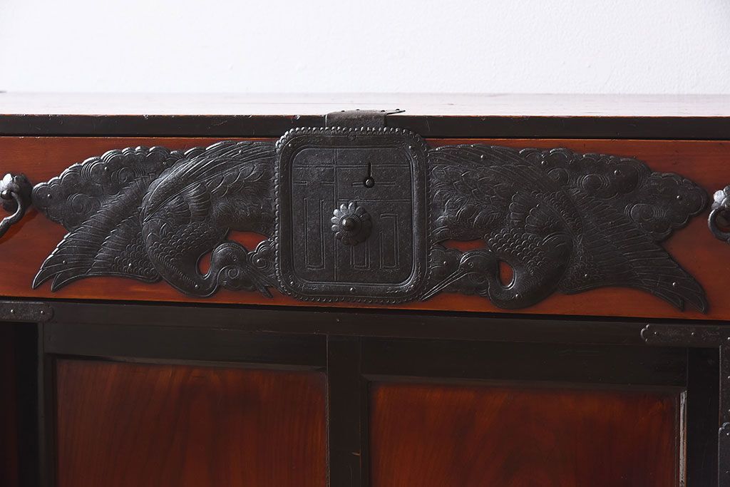ラフジュ工房> 和箪笥> 船箪笥 > アンティーク家具 珍しい逸品 前面欅材の変わり型アンティーク仙台箪笥(帳場箪笥)