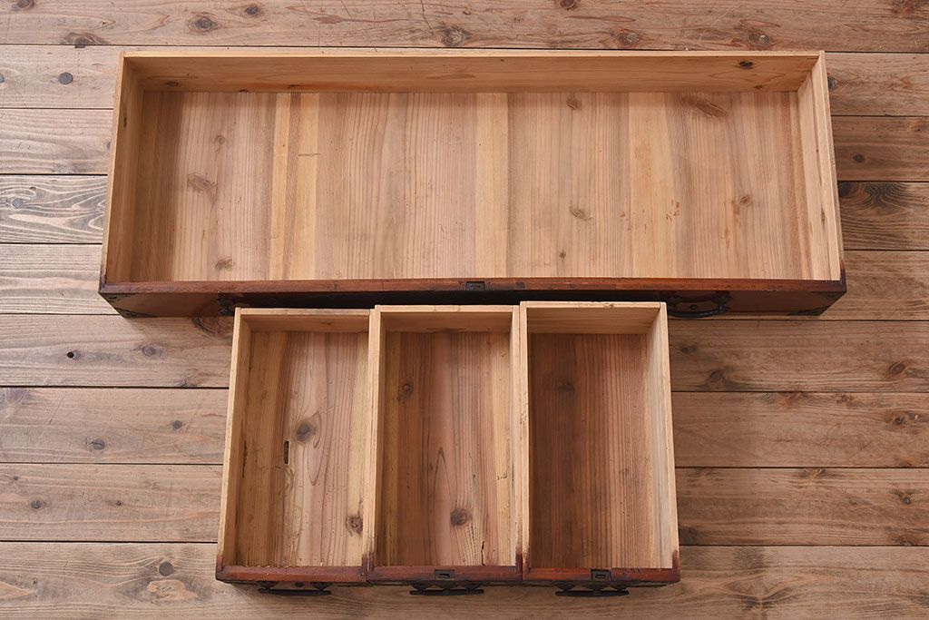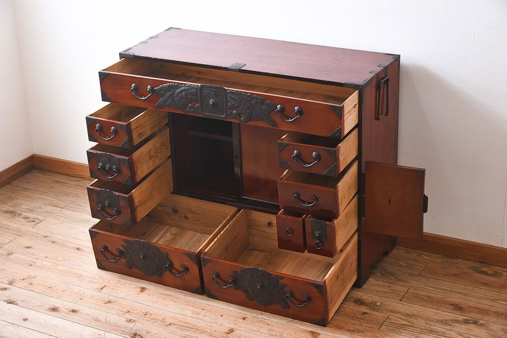 ラフジュ工房> 和箪笥> 帳場箪笥 > アンティーク家具 珍しい逸品 前面欅材の変わり型アンティーク仙台箪笥(帳場箪笥)