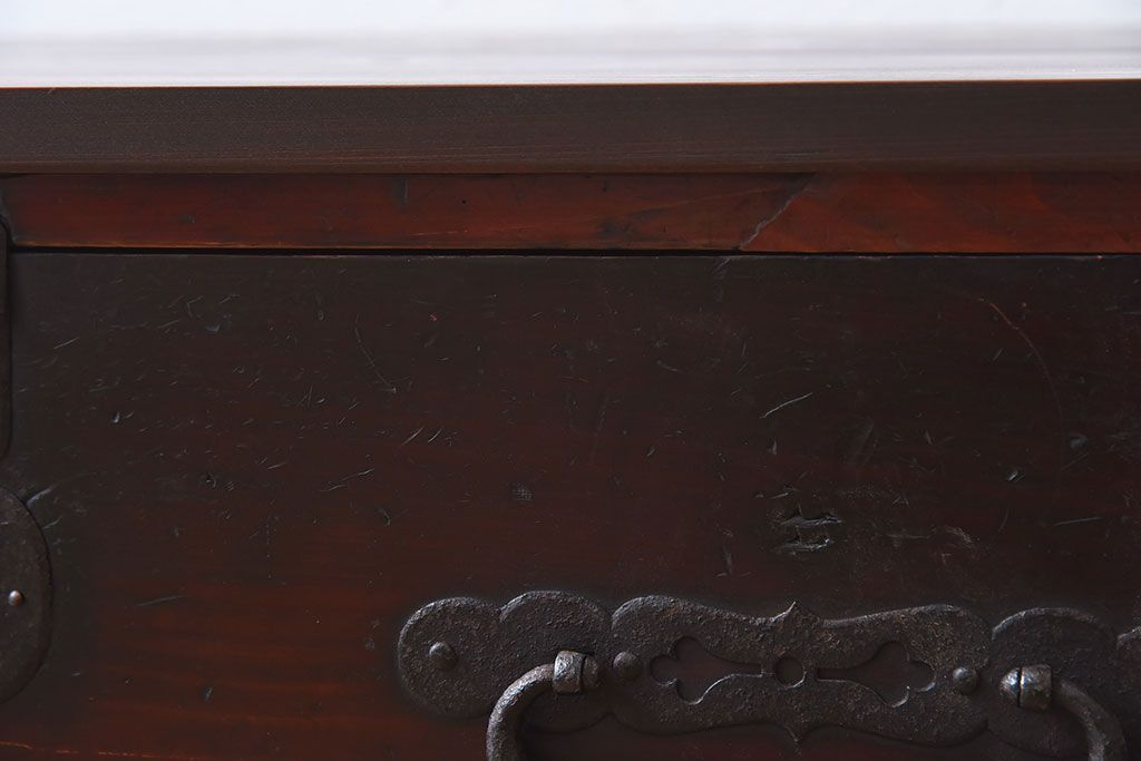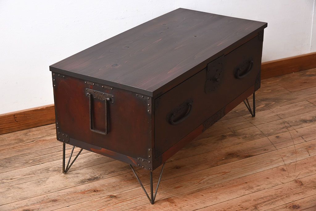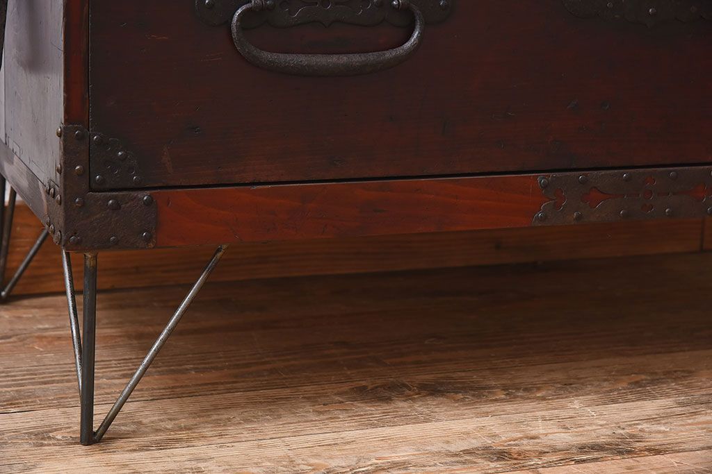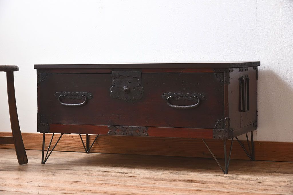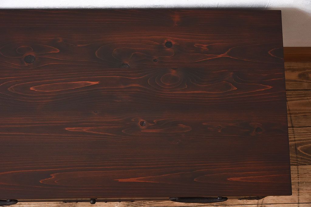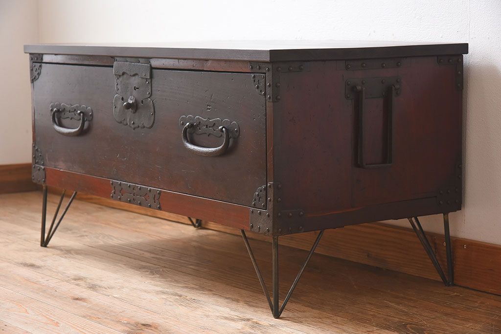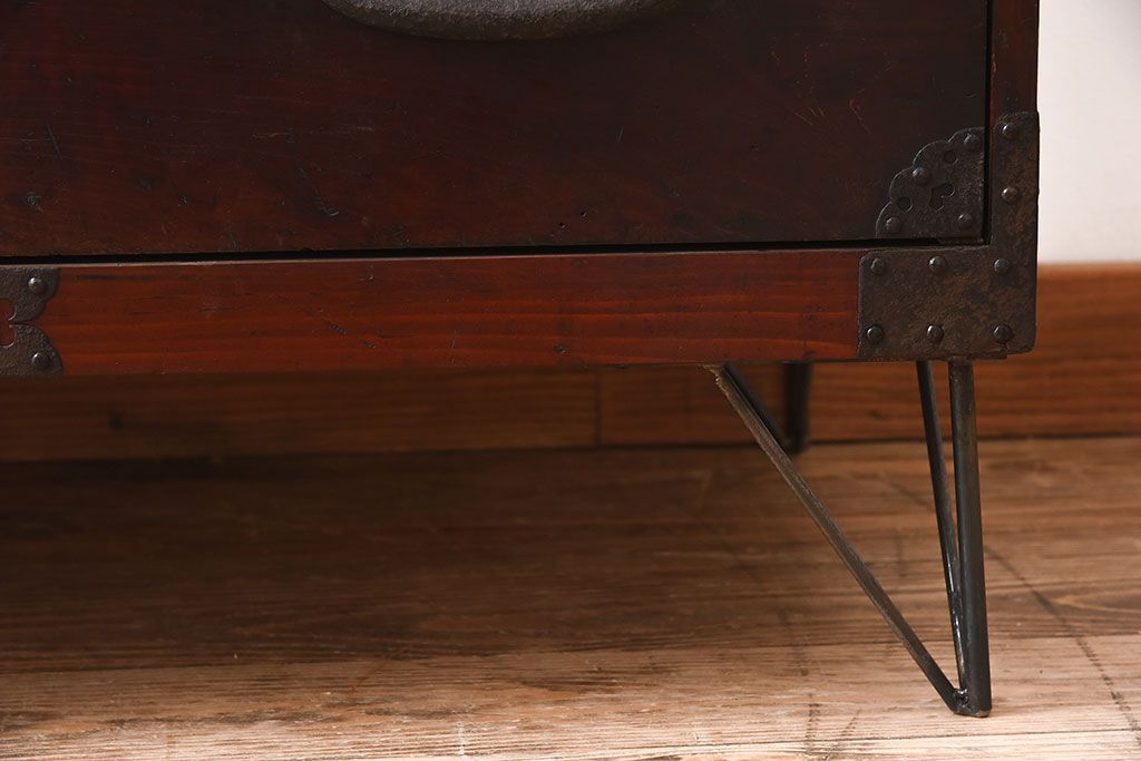 アンティーク家具 檜材天板 鉄脚付き時代箪笥ローボード 和製アンティーク(1)