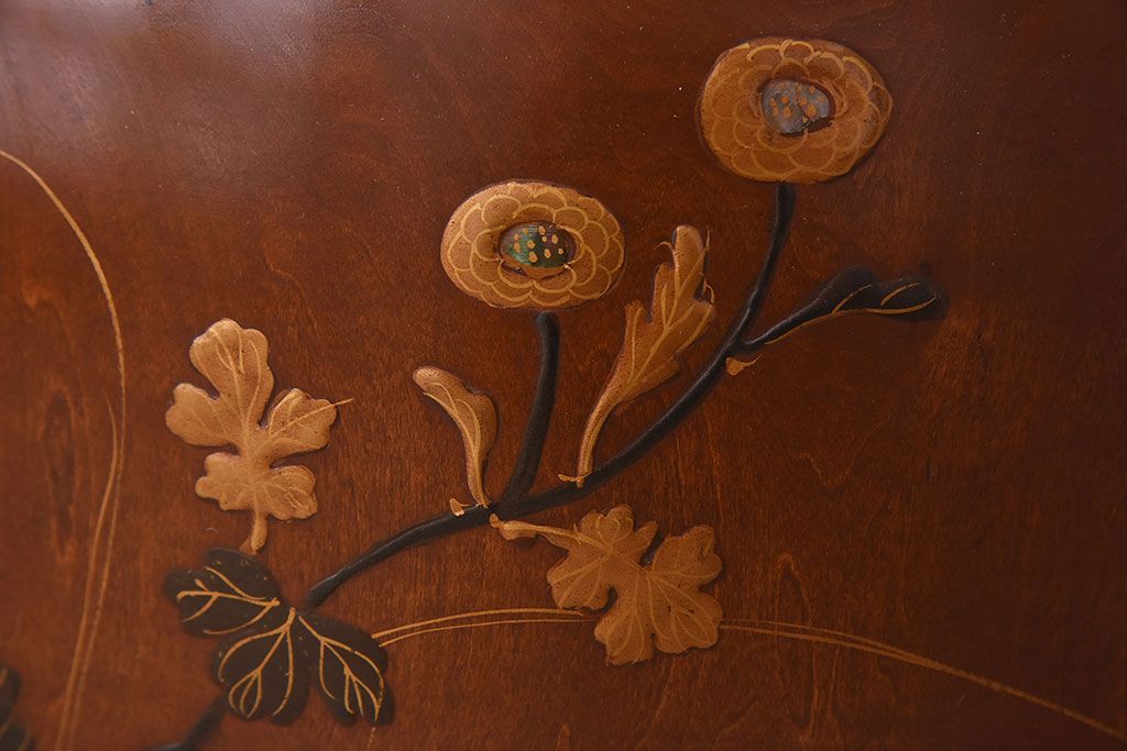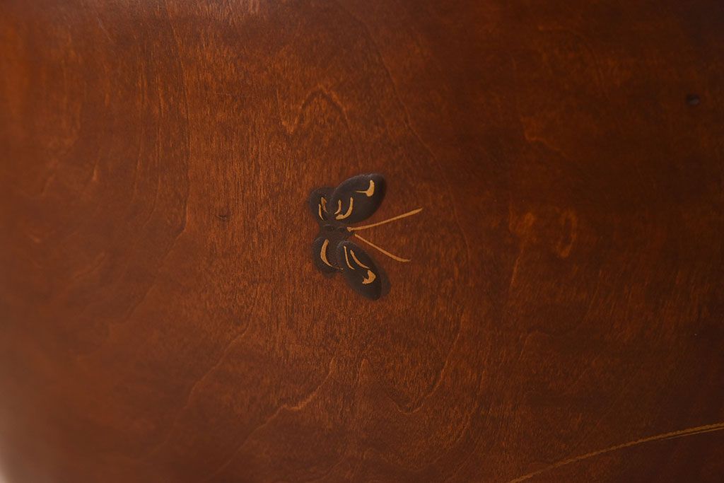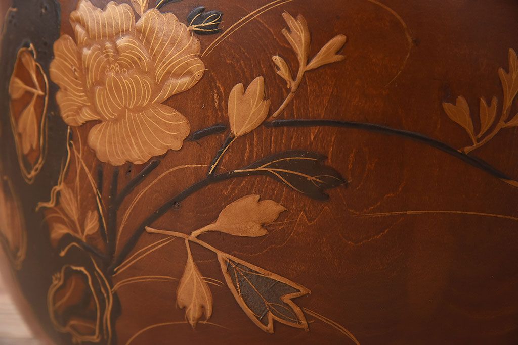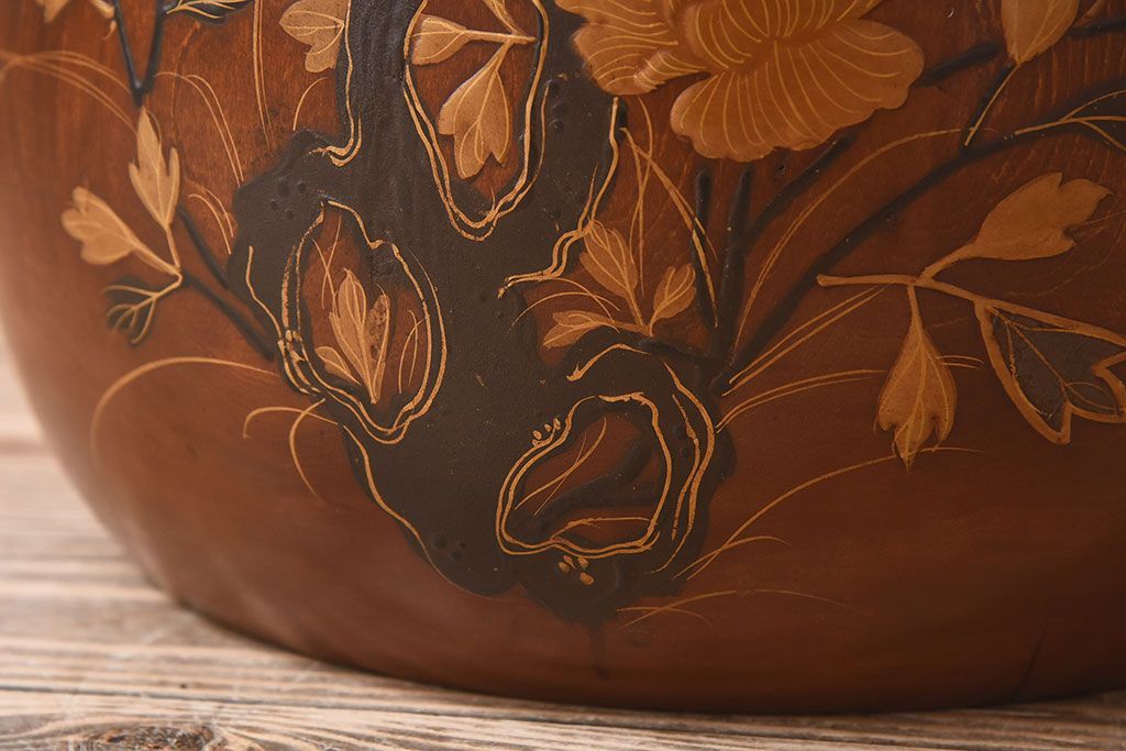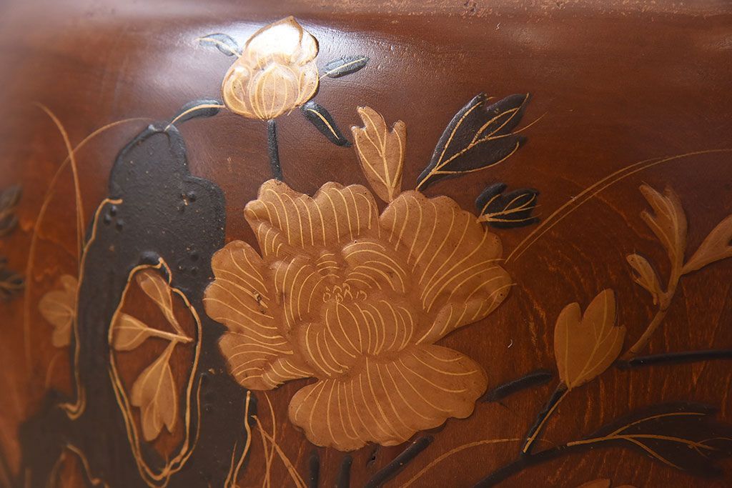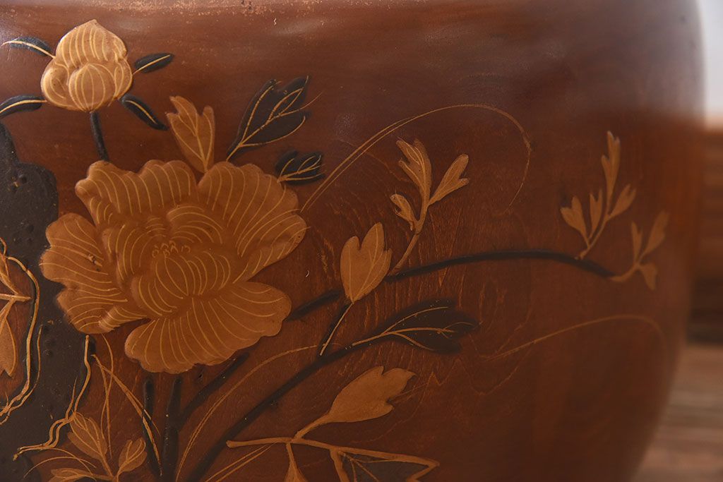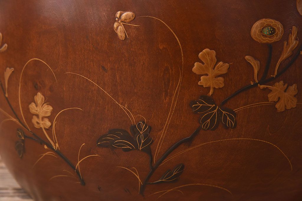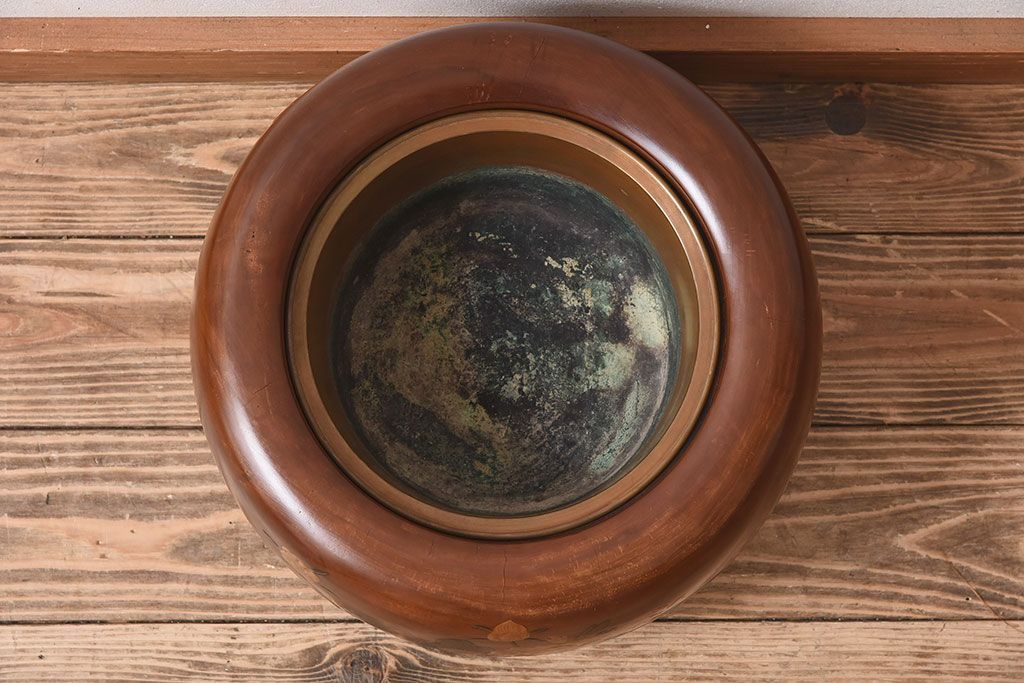 アンティーク雑貨 古民具・骨董 栃の木 木製 蒔絵が美しい刳り貫き火鉢