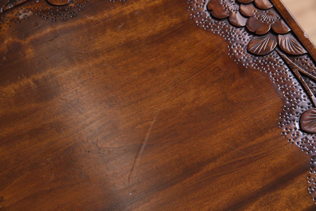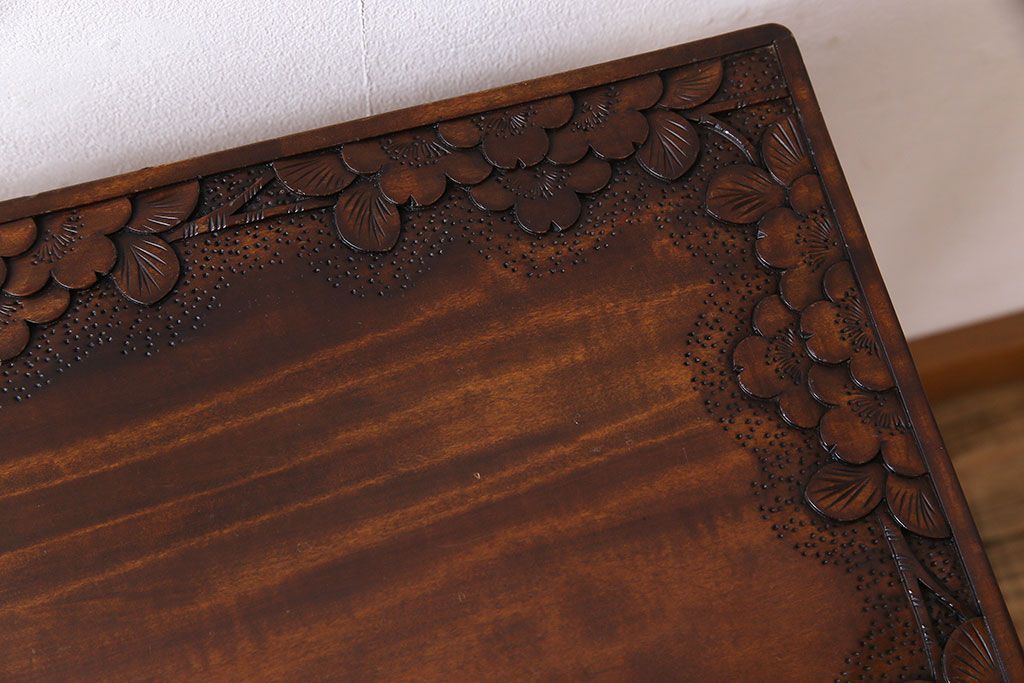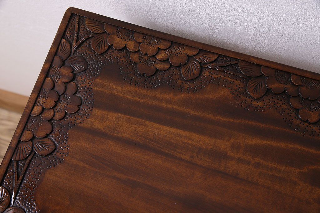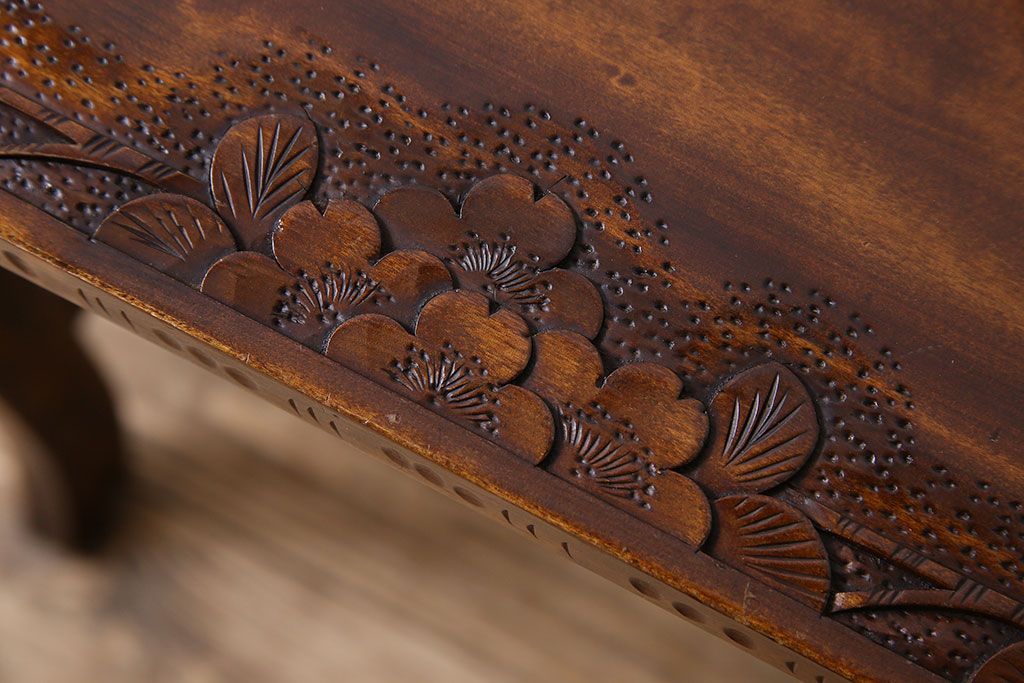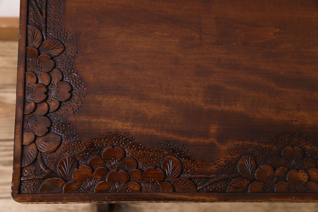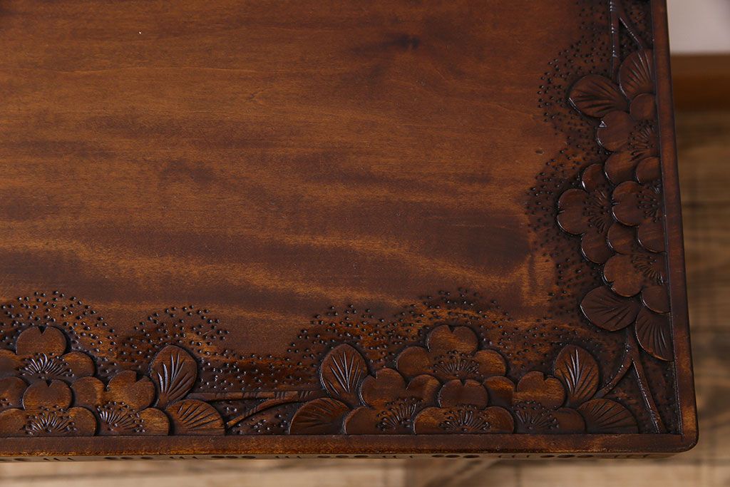 中古 桜モチーフが美しい伝統工芸軽井沢彫 サイドテーブル