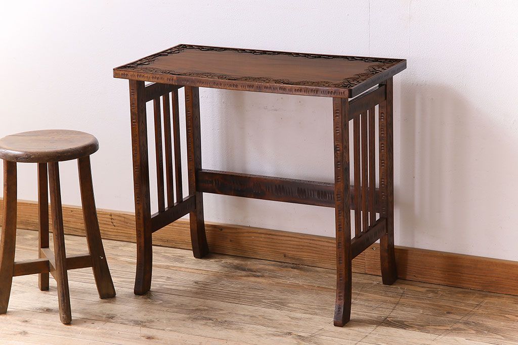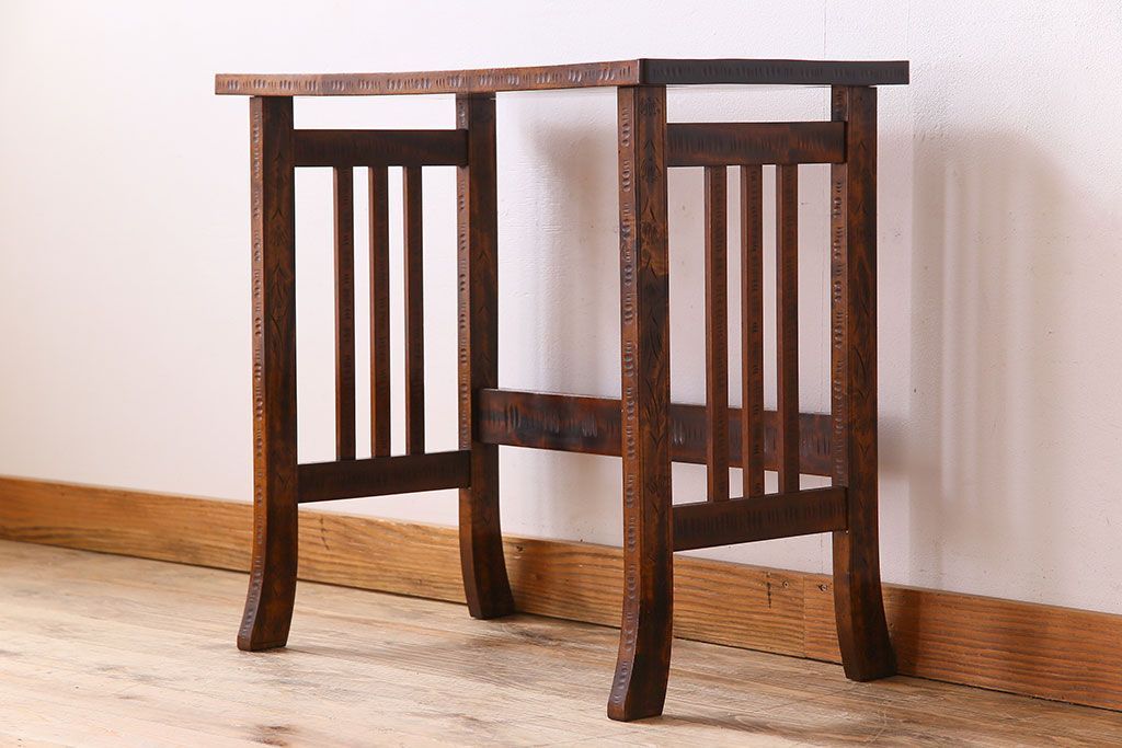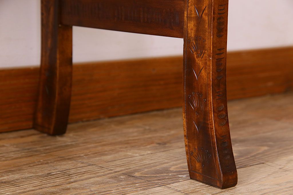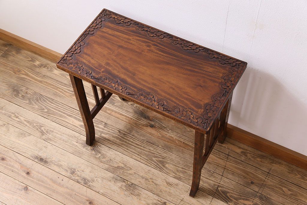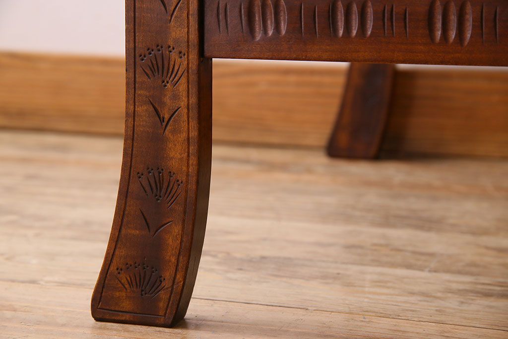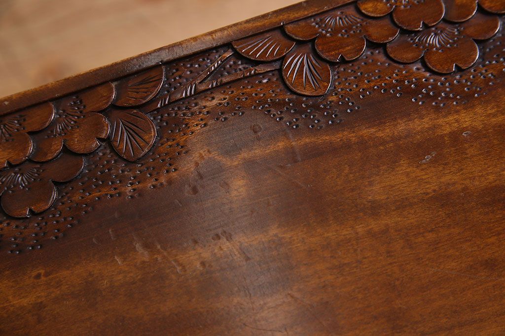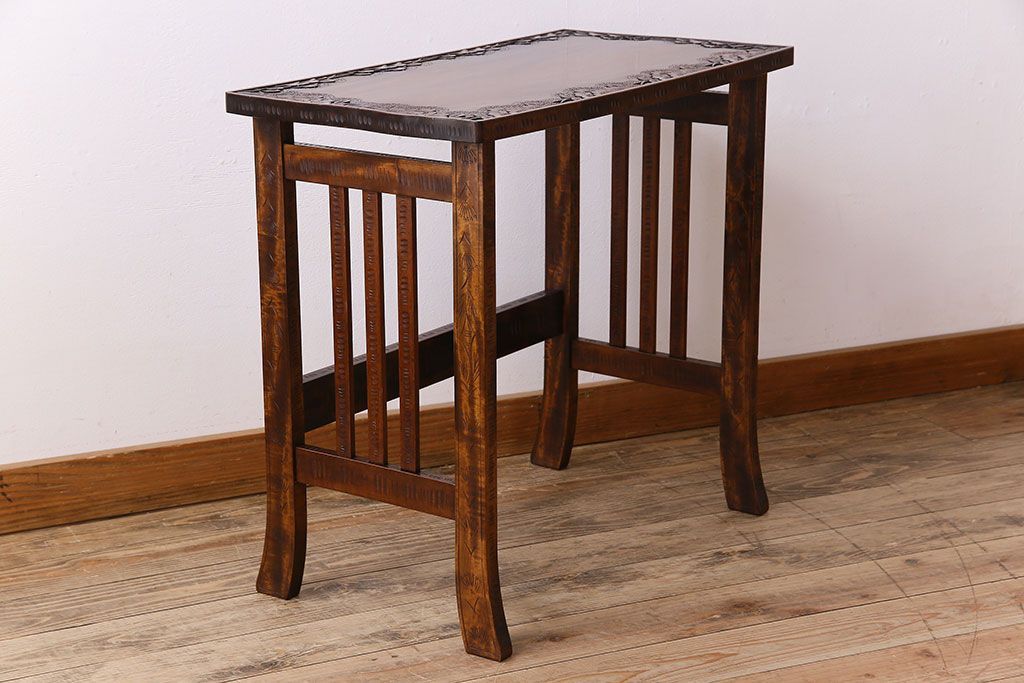 中古 桜モチーフが美しい伝統工芸軽井沢彫 サイドテーブル