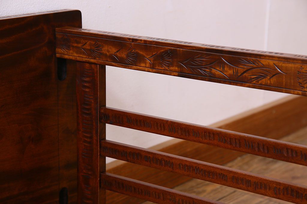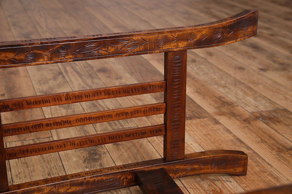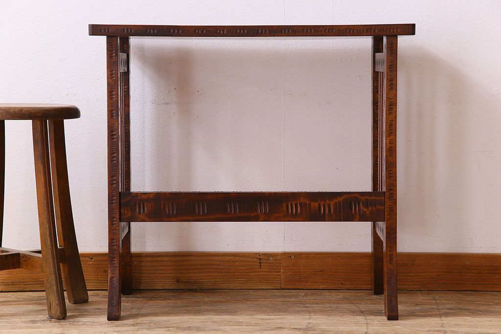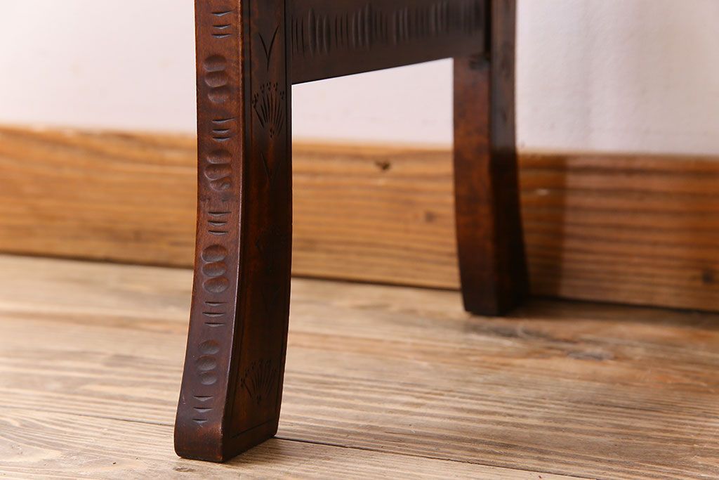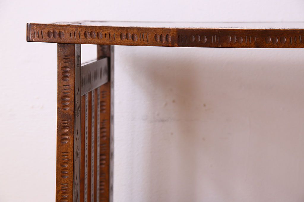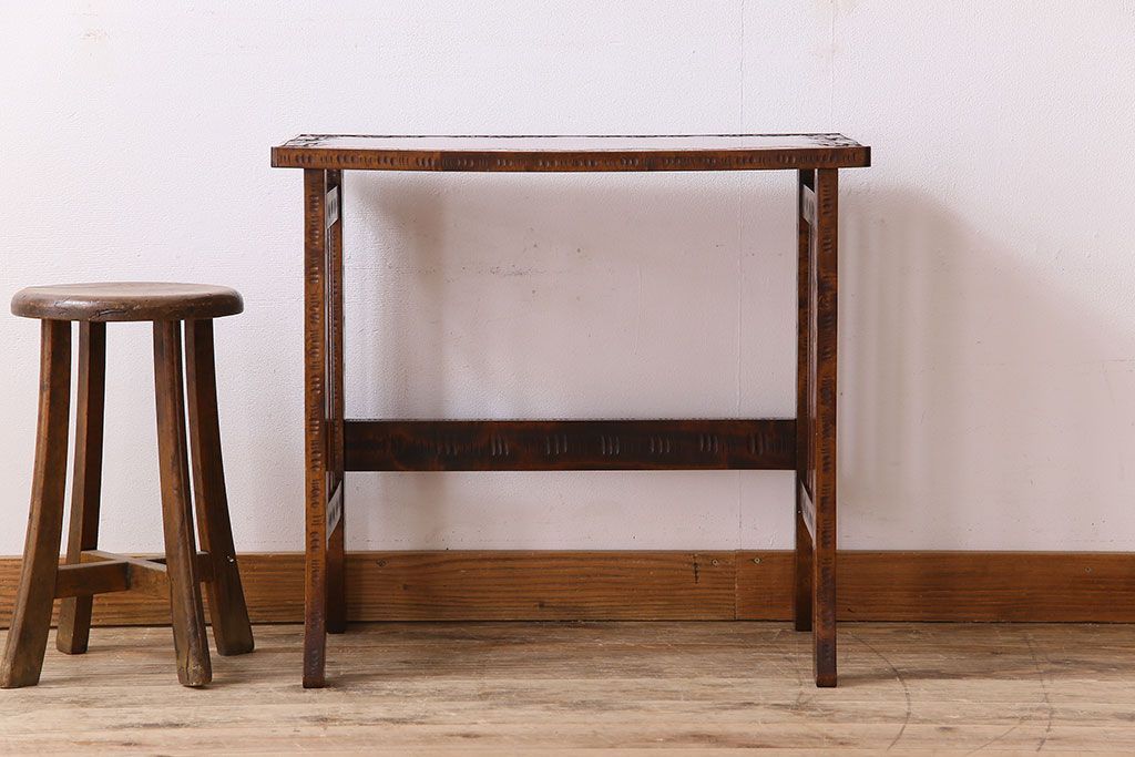 中古 桜モチーフが美しい伝統工芸軽井沢彫 サイドテーブル