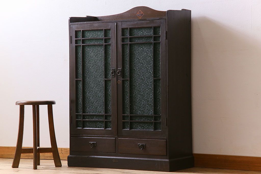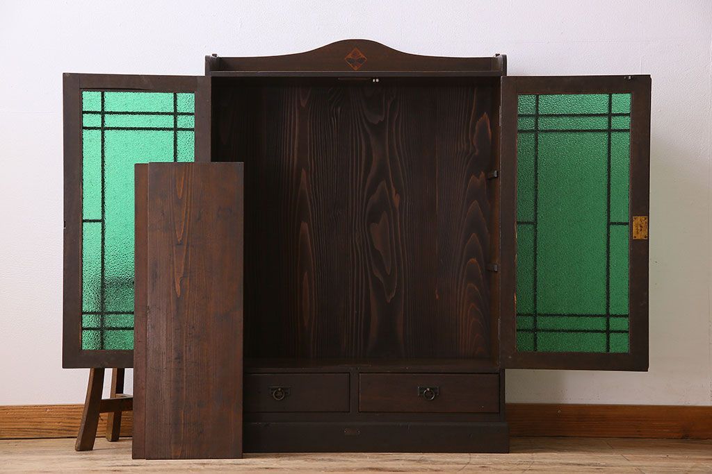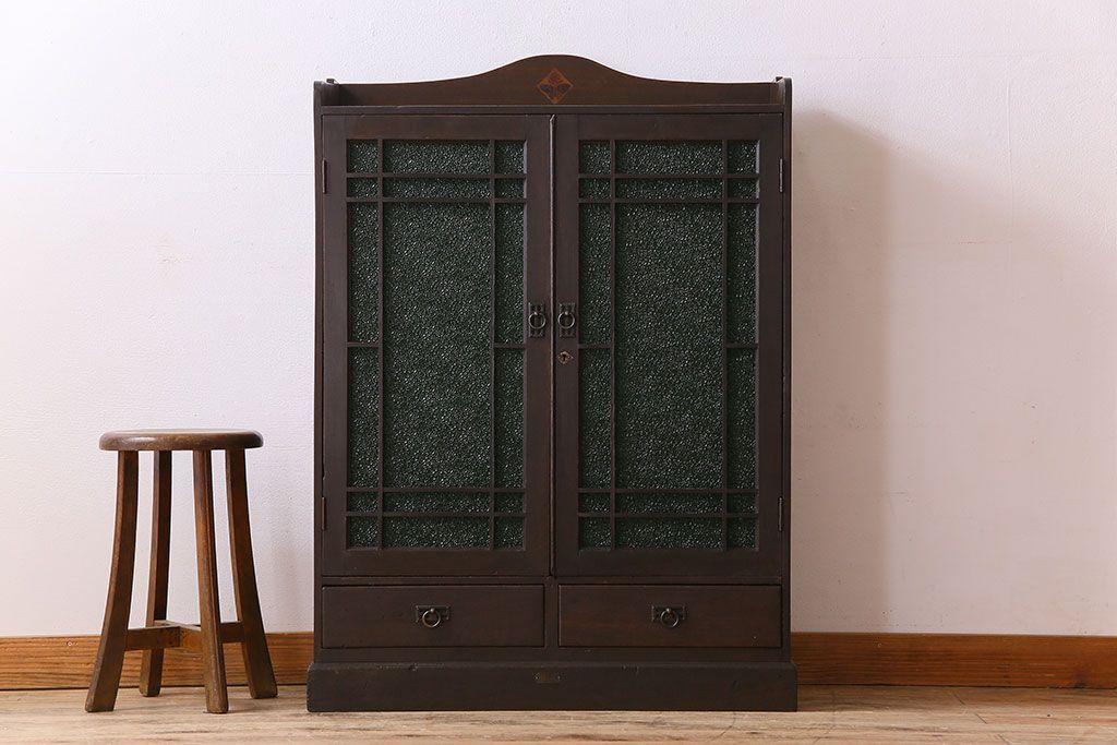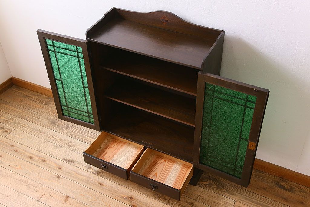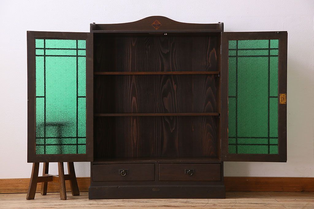 アンティーク家具 大正ロマン 和製アンティーク 当時物色ガラスがおしゃれな本箱(ブックケース)