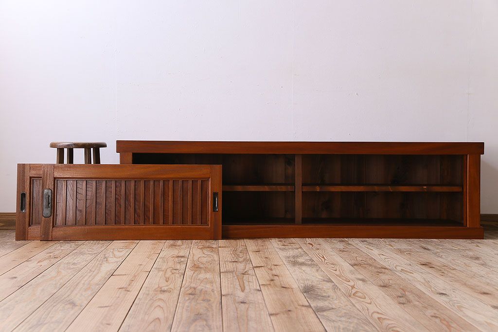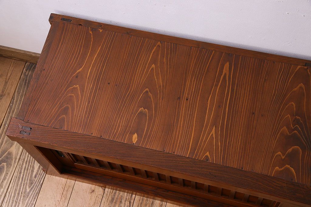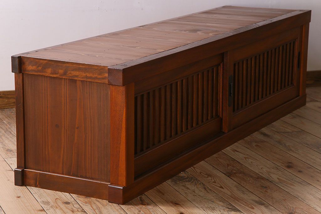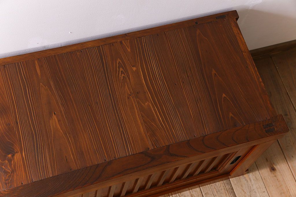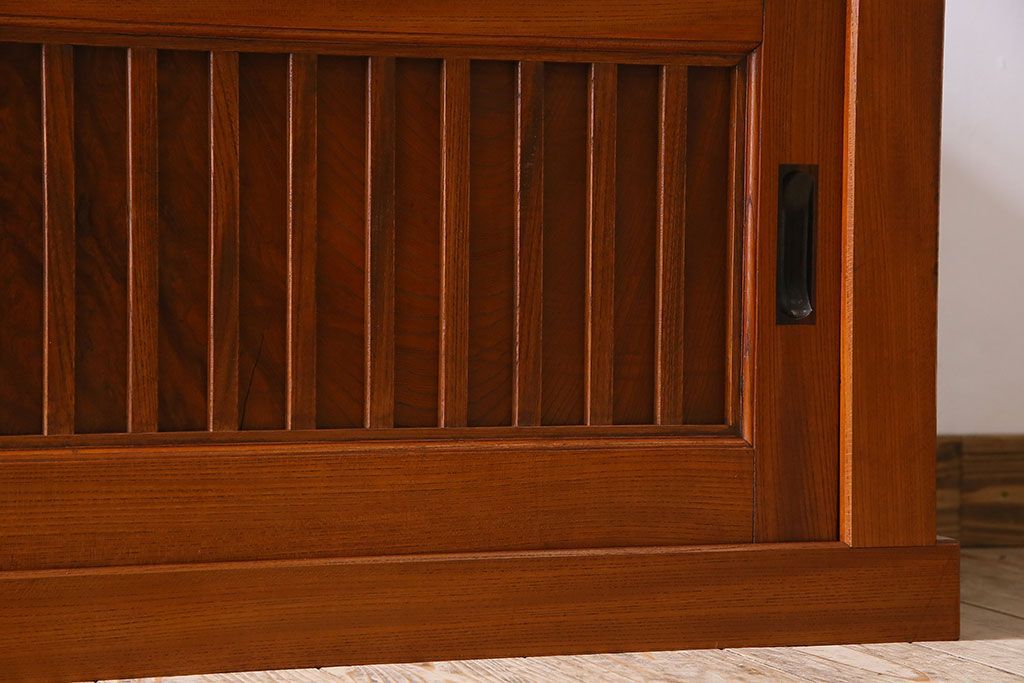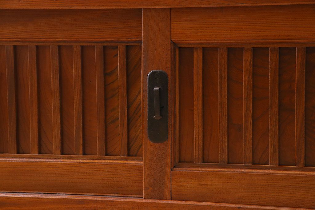 キャビネット・戸棚> テレビ台・ローボード > アンティーク家具 古民具・骨董 六尺 大正昭和期 縦桟引き戸の上品な時代箪笥ローボード(水屋箪笥、テレビ台、キャビネット、収納棚)(1)