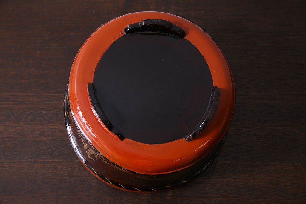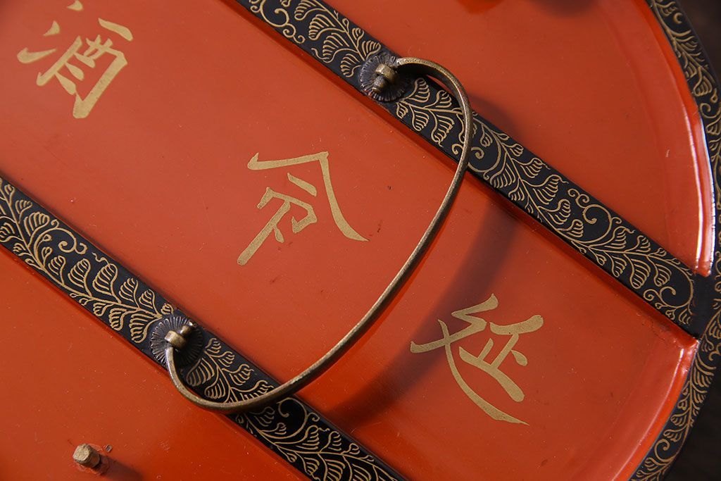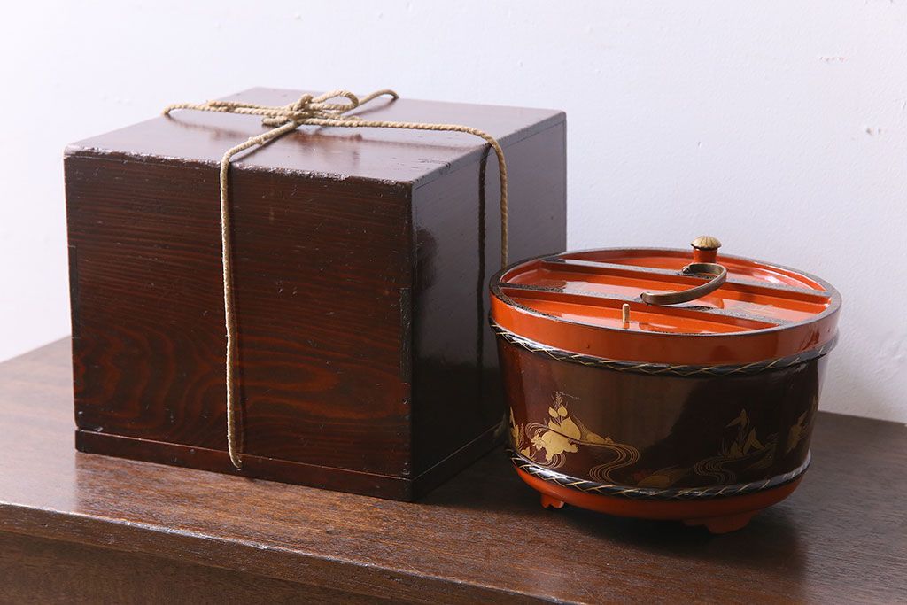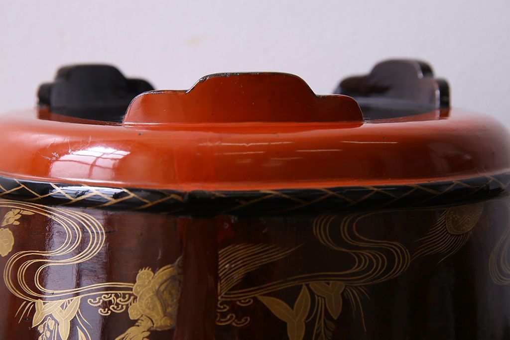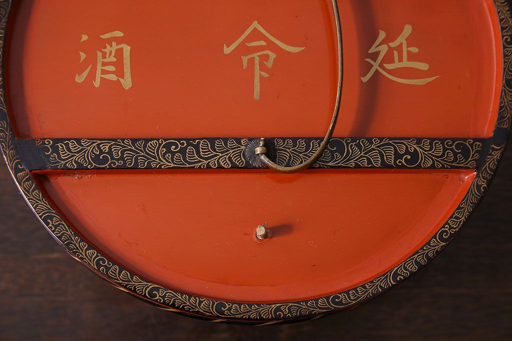 ラフジュ工房> 骨董・美術品 > 古民具・骨董 漆塗り 吉祥画 漆塗りが美しい亀の蒔絵の酒樽(酒入れ・漆器)