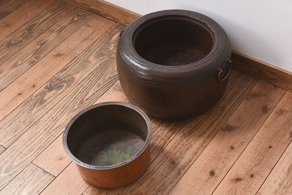 取っ手の銅金具やおとしの縁のデザインなど、シンプルながら