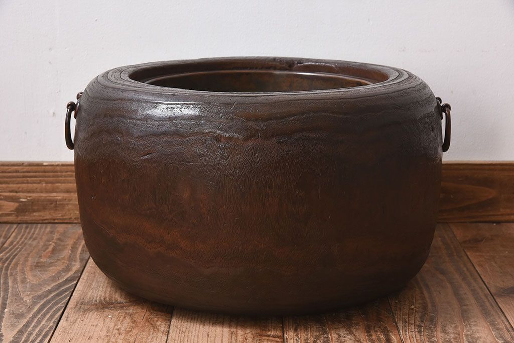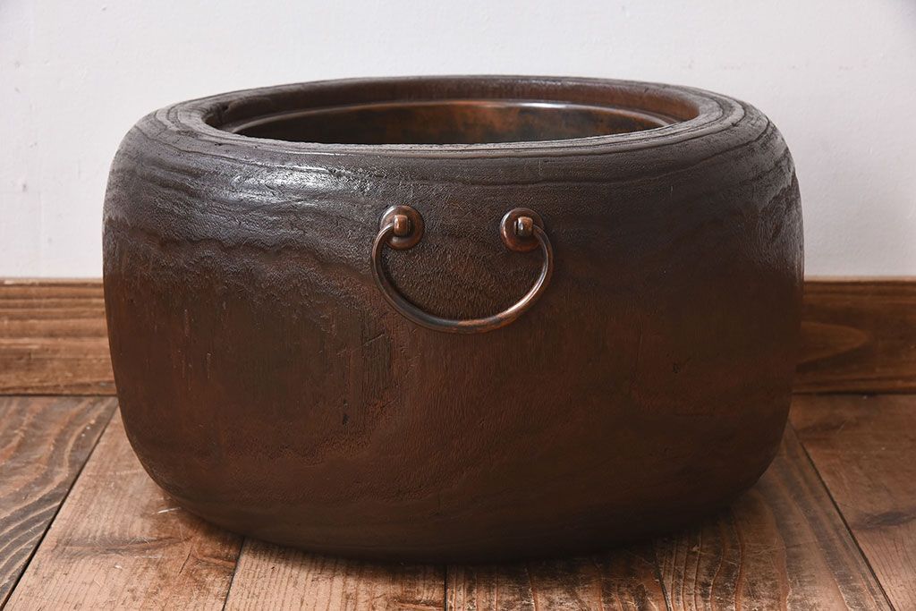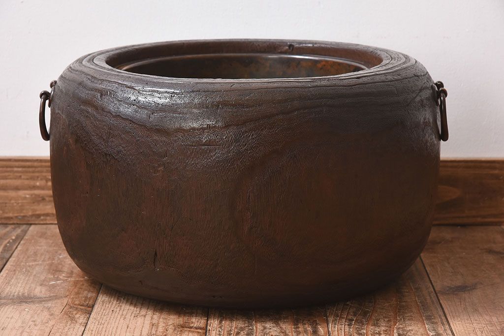 刳り貫き 古い木の味わいが趣ある和製アンティークの桐火鉢(2)です。