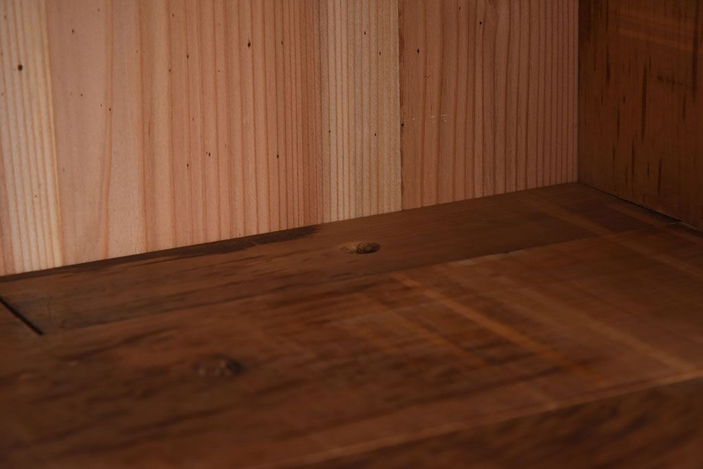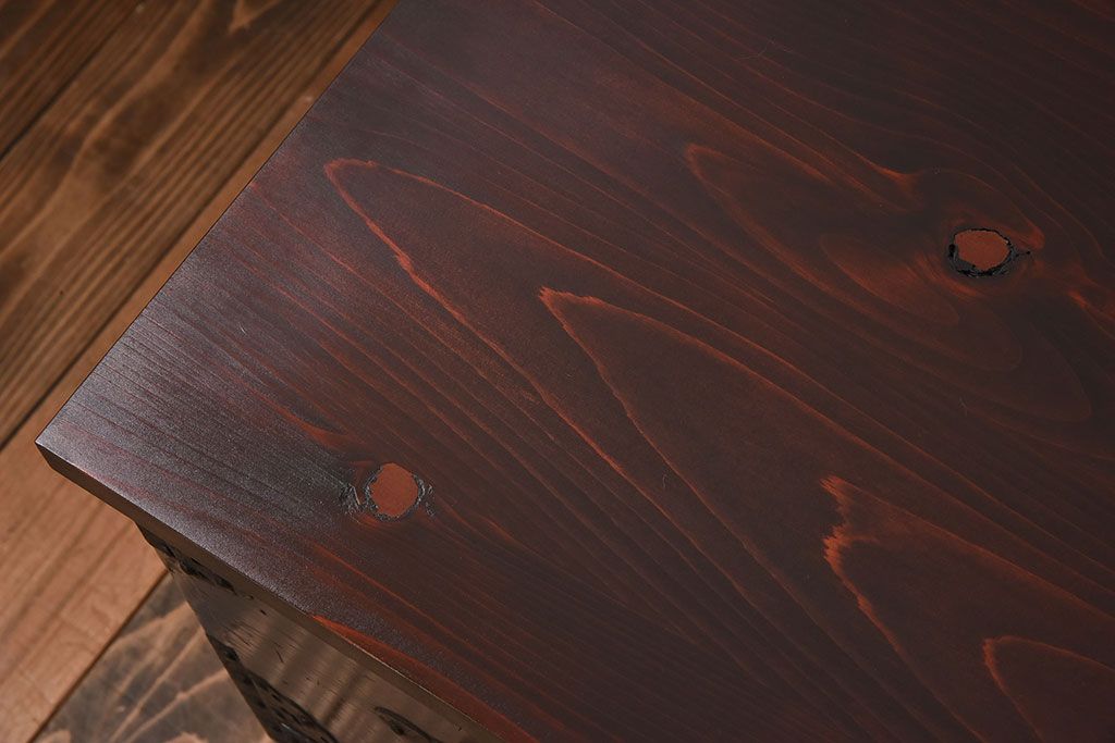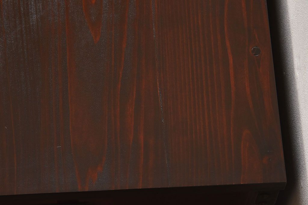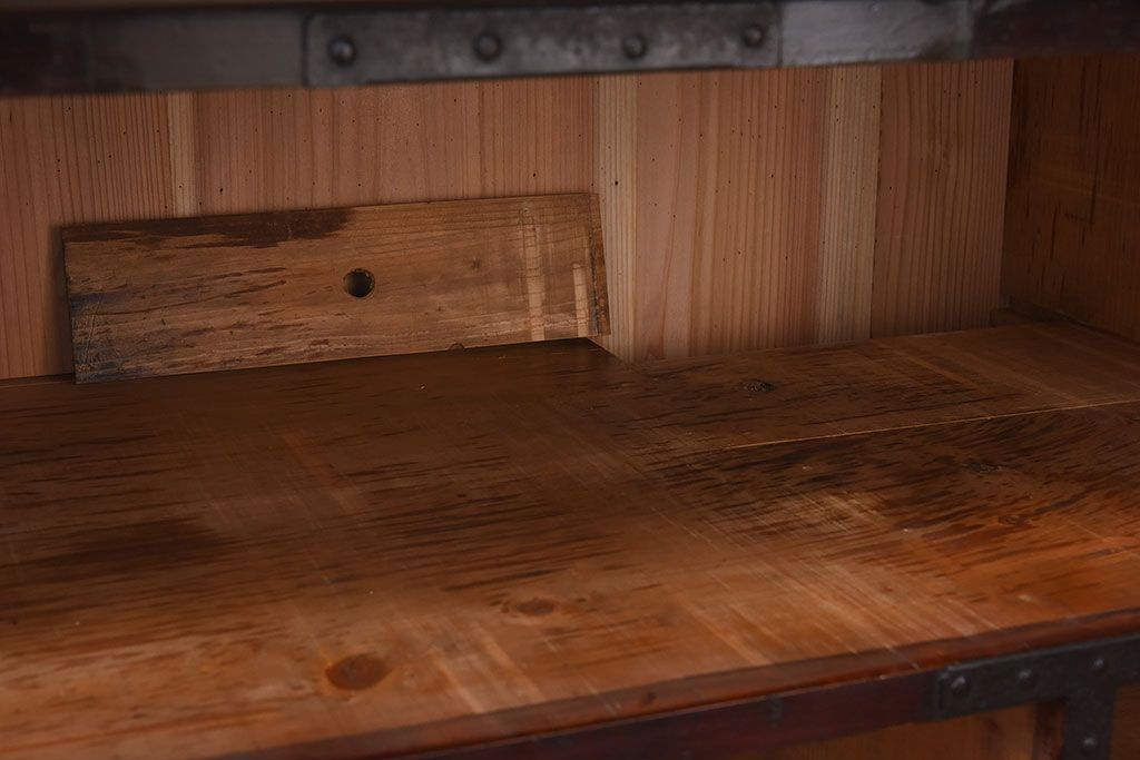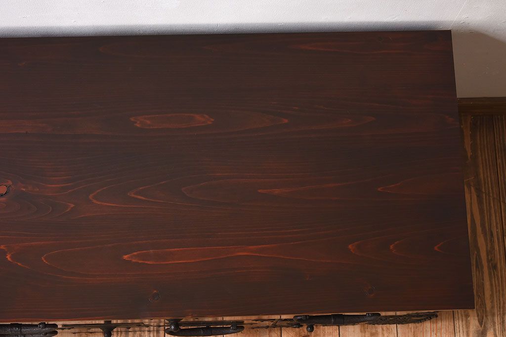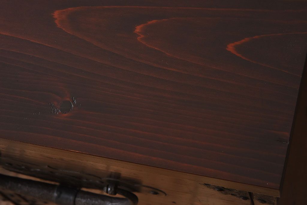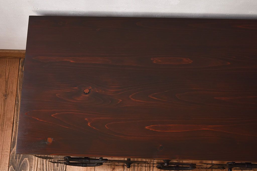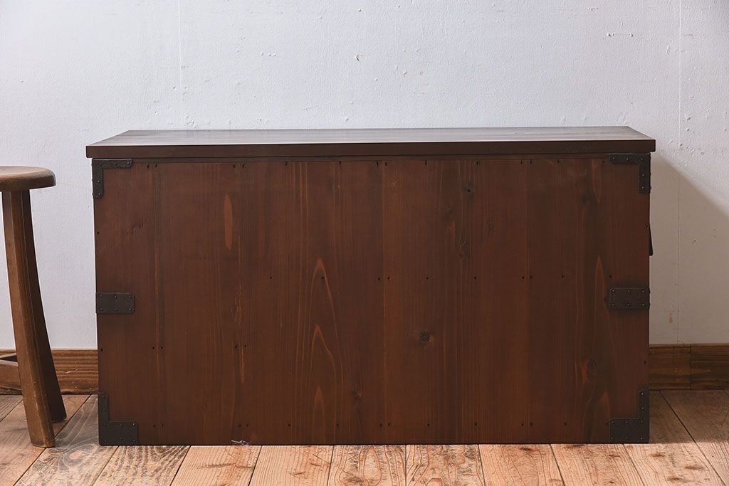 ラフジュ工房> キャビネット・戸棚> テレビ台・ローボード > アンティーク家具 明治期 檜材天板 重厚な金具の時代箪笥ローボード(衣装箪笥)