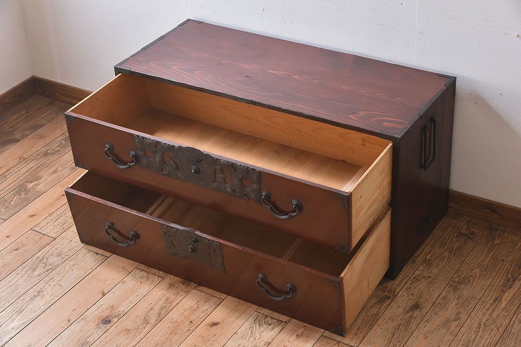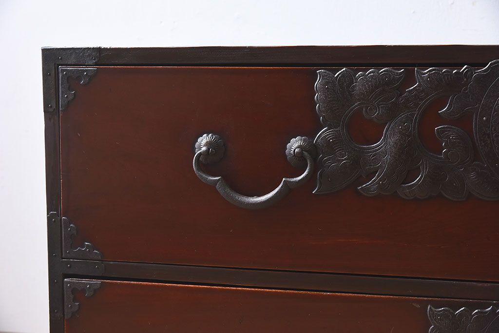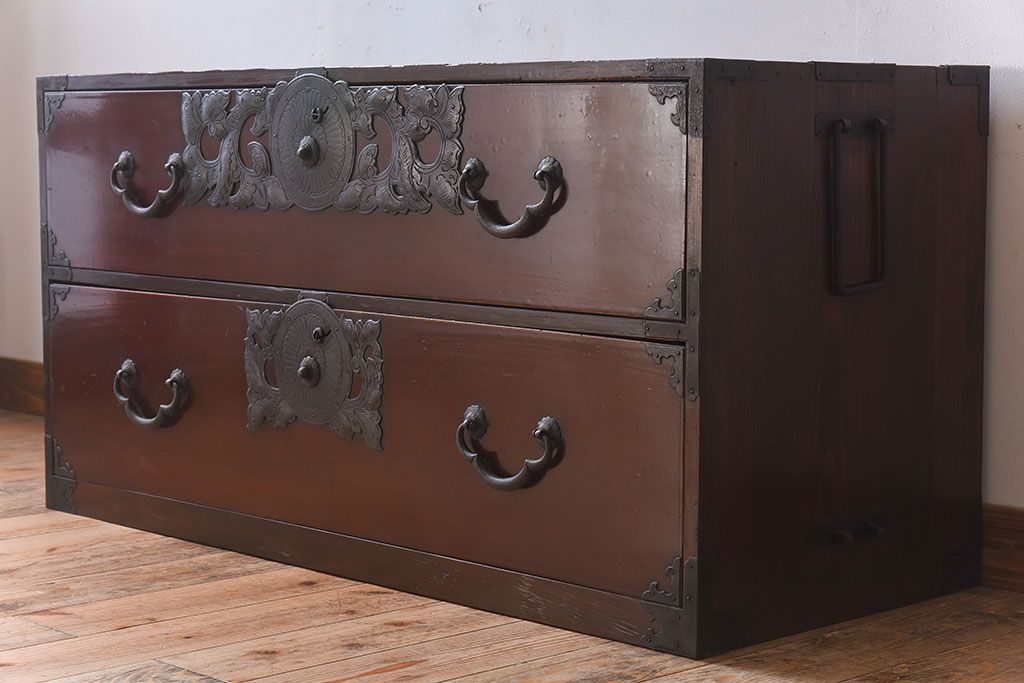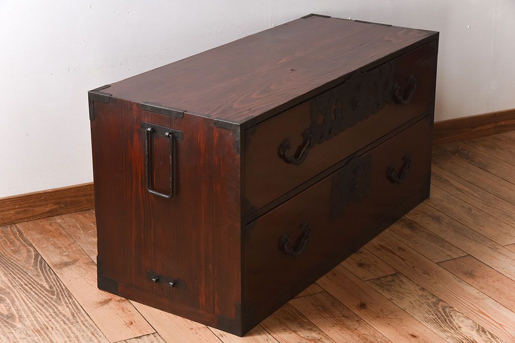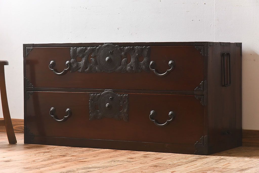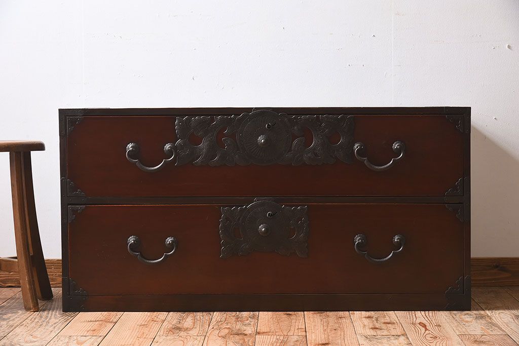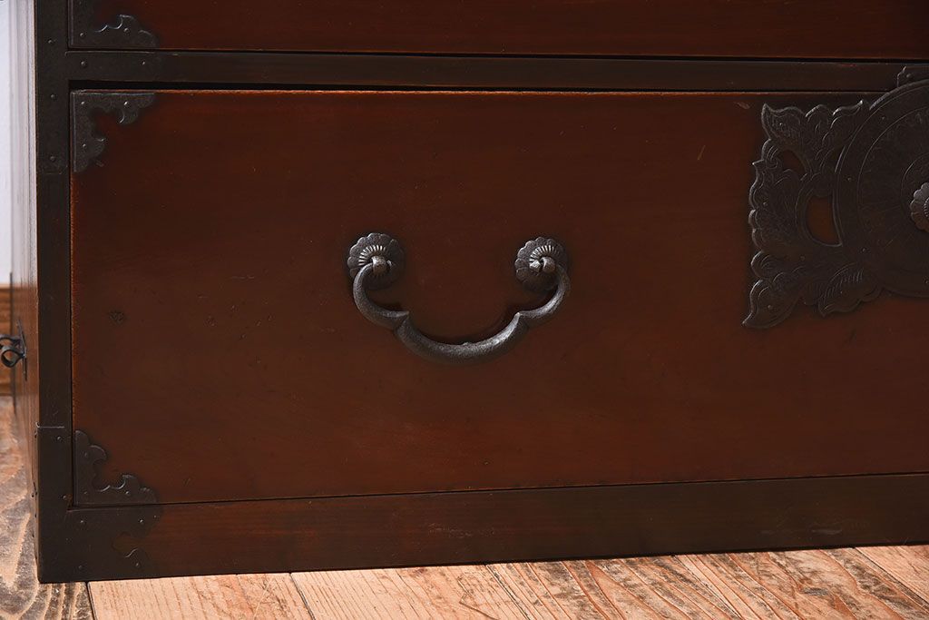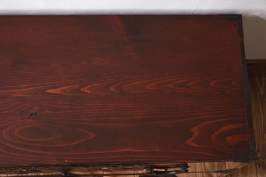 ラフジュ工房> 和箪笥 > アンティーク家具 和製アンティーク 前面欅材 古い木の味わいが重厚な仙台箪笥ローボード(衣装箪笥)(1)