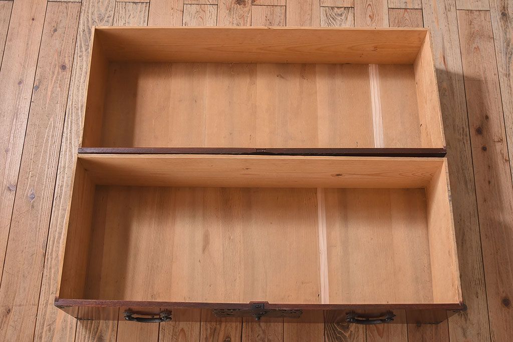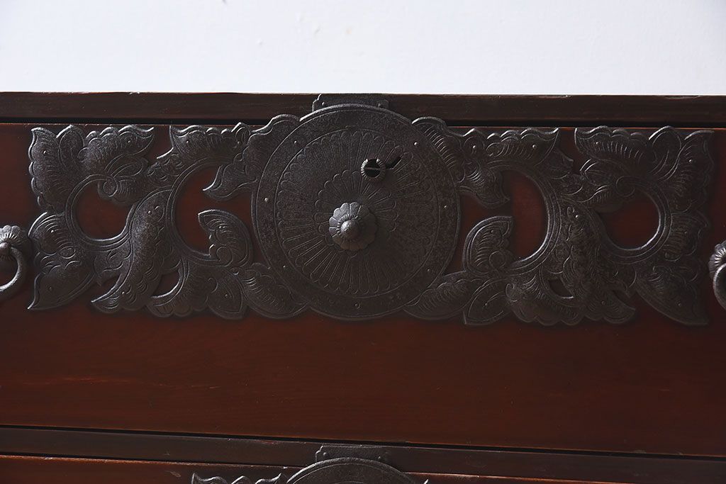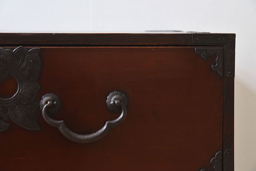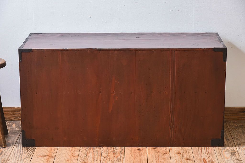 ラフジュ工房> 和箪笥> 衣装箪笥 > アンティーク家具 和製アンティーク 前面欅材 古い木の味わいが重厚な仙台箪笥ローボード(衣装箪笥)(1)