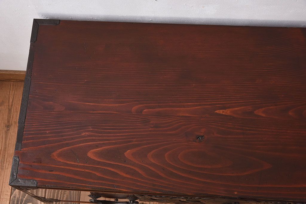 ラフジュ工房> キャビネット・戸棚> テレビ台・ローボード > アンティーク家具 和製アンティーク 前面欅材 古い木の味わいが重厚な仙台箪笥ローボード(衣装箪笥)(1)