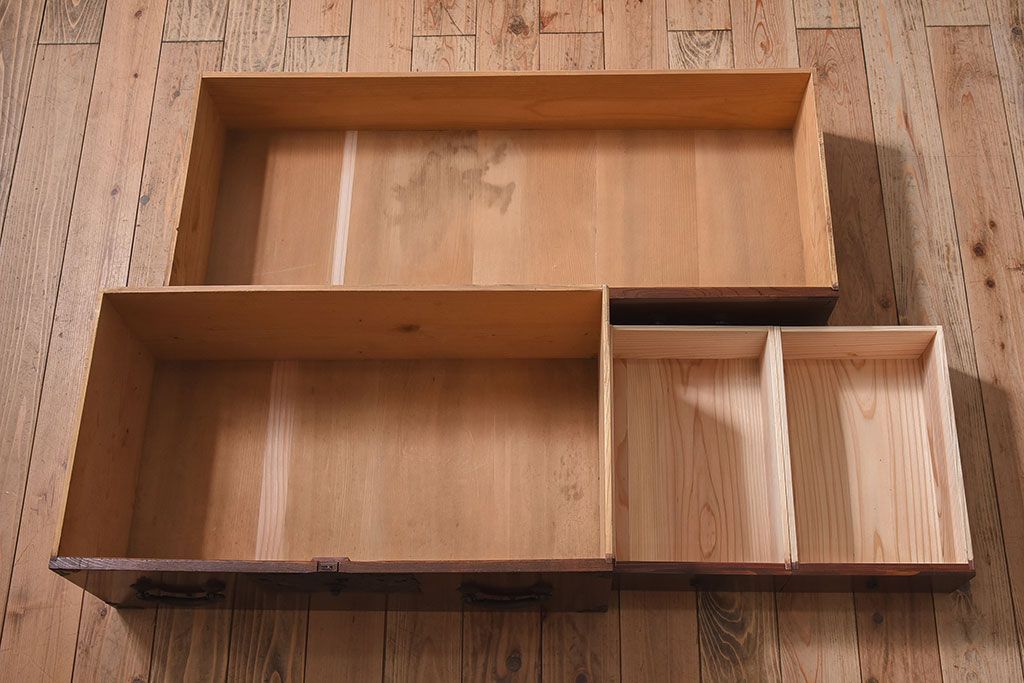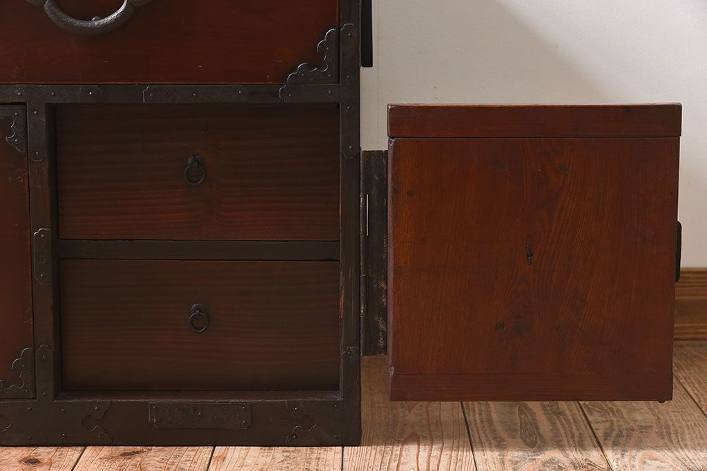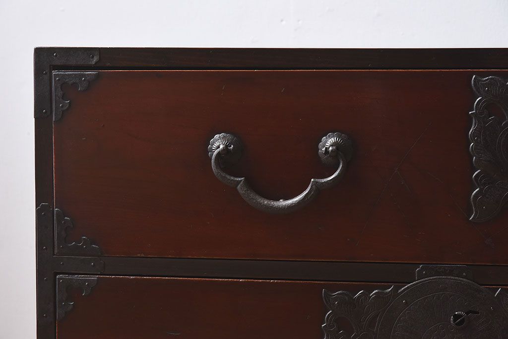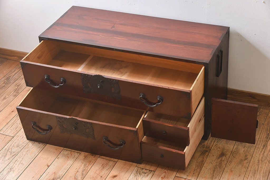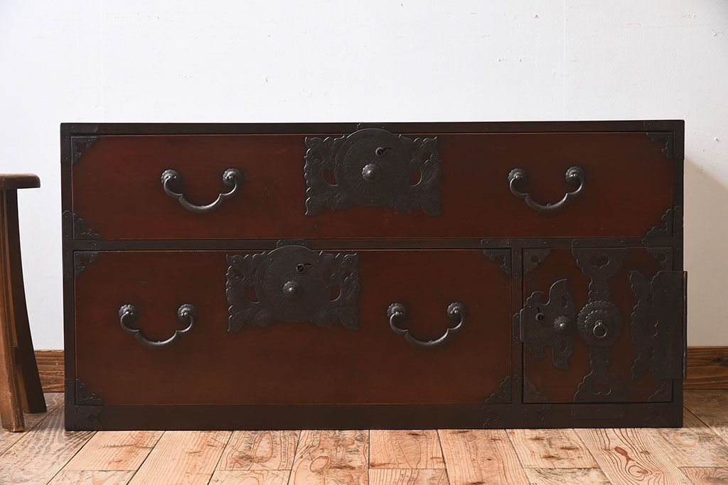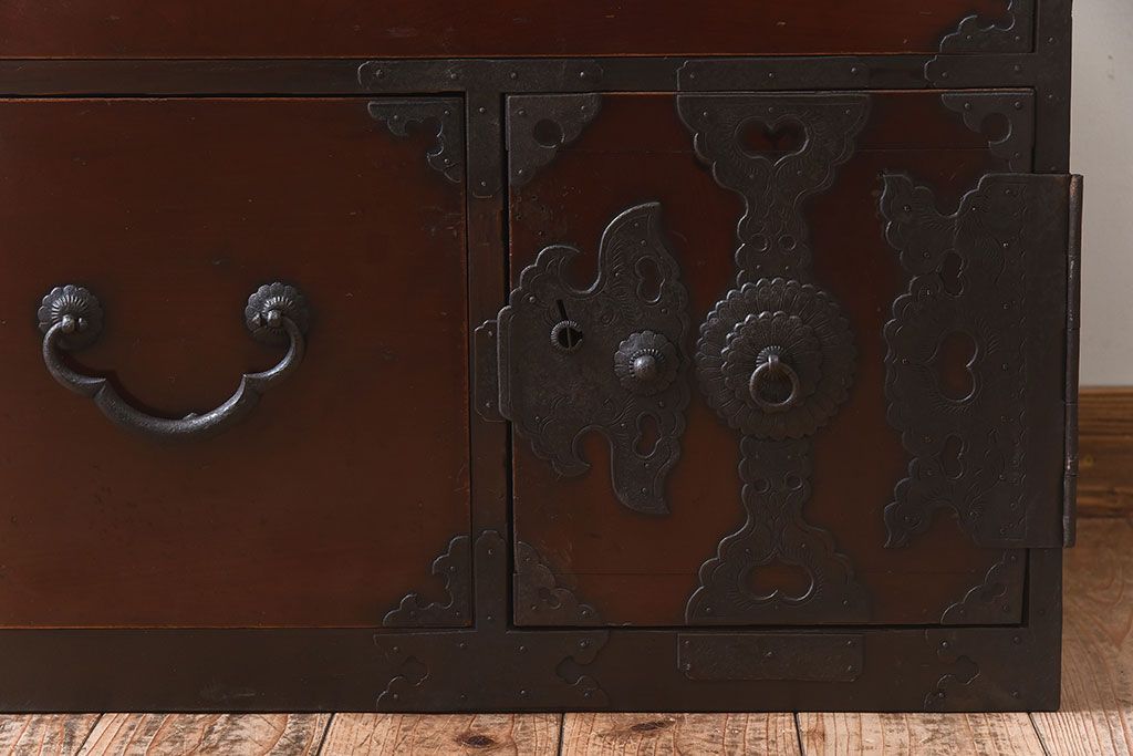 アンティーク家具 和製アンティーク 前面欅材 古い木の味わいが重厚な仙台箪笥ローボード(衣装箪笥)(2)