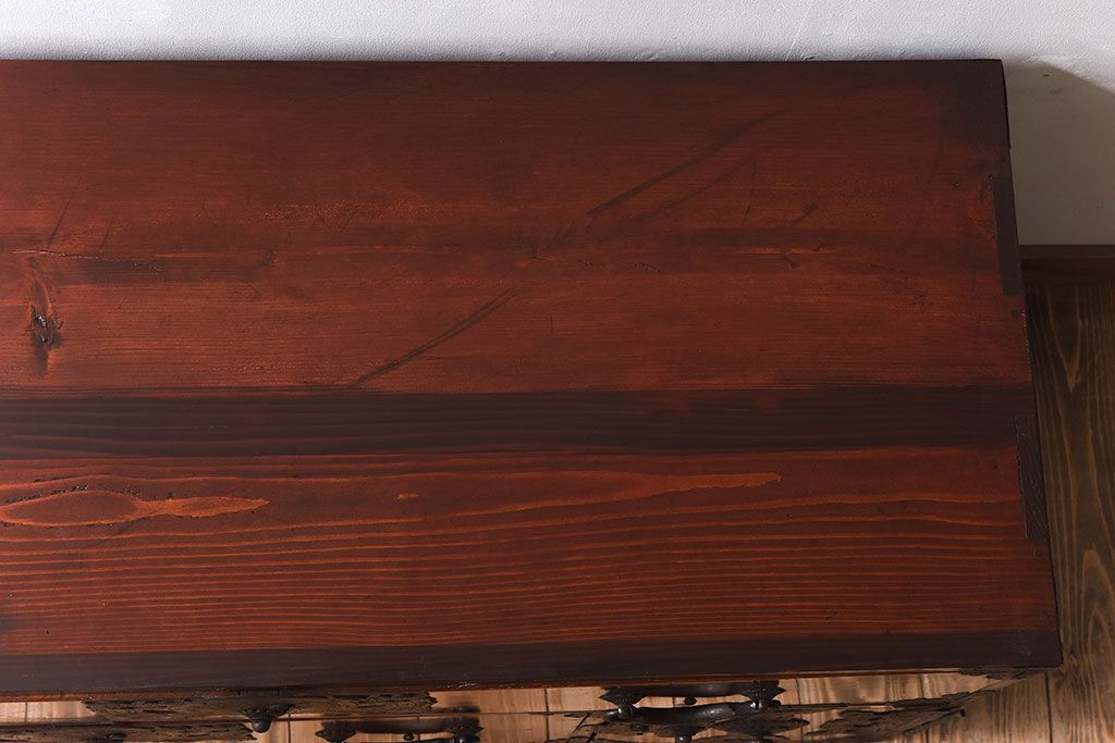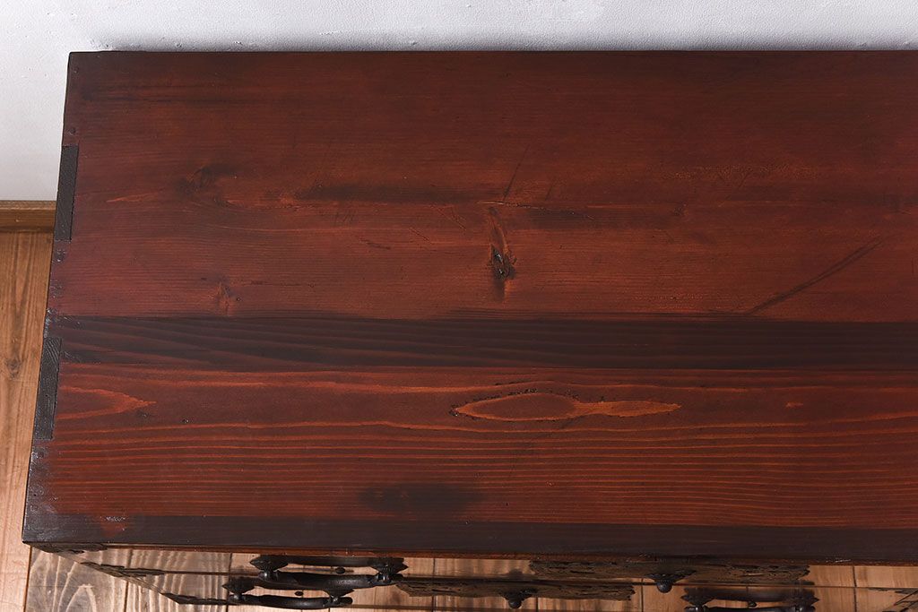 ラフジュ工房> キャビネット・戸棚> テレビ台・ローボード > アンティーク家具 和製アンティーク 前面欅材 古い木の味わいが重厚な仙台箪笥ローボード(衣装箪笥)(2)