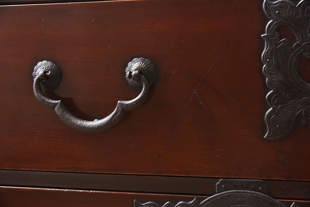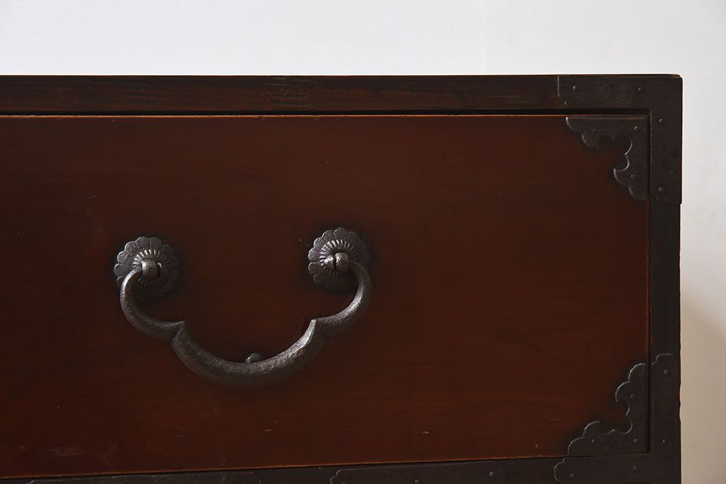 ラフジュ工房> 和箪笥> 衣装箪笥 > アンティーク家具 和製アンティーク 前面欅材 古い木の味わいが重厚な仙台箪笥ローボード(衣装箪笥)(2)