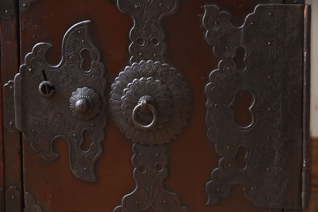 ラフジュ工房> 和箪笥 > アンティーク家具 和製アンティーク 前面欅材 古い木の味わいが重厚な仙台箪笥ローボード(衣装箪笥)(2)