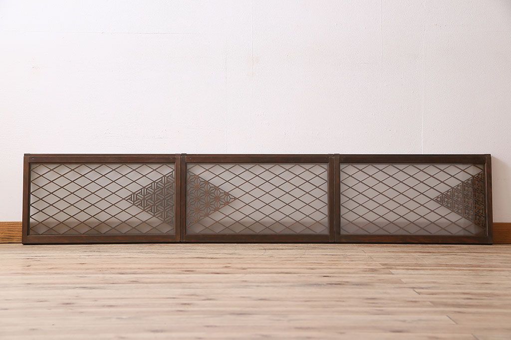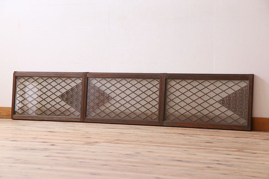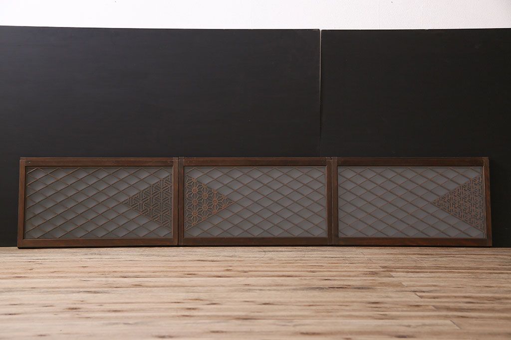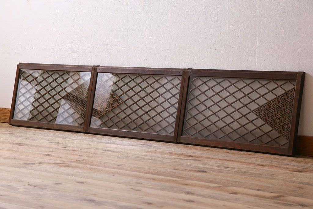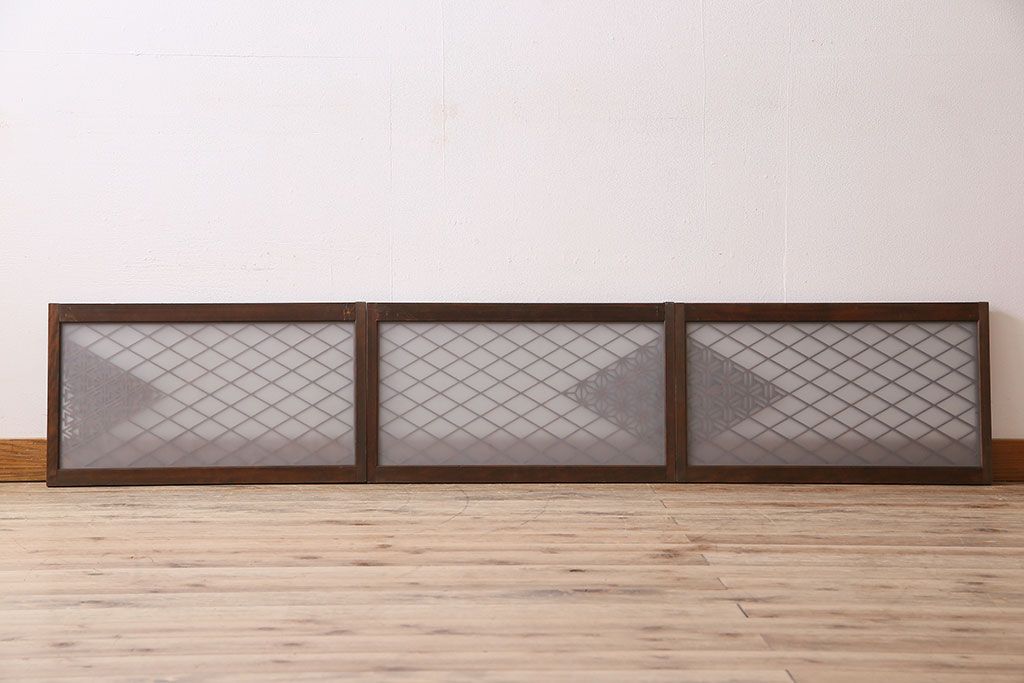 和製アンティーク 和モダン すりガラス入り!上品な組子の明り取り(明かり取り)3枚セット(窓)