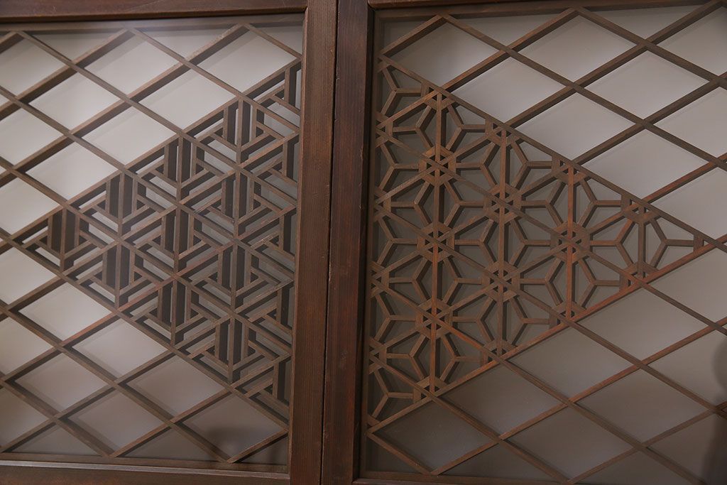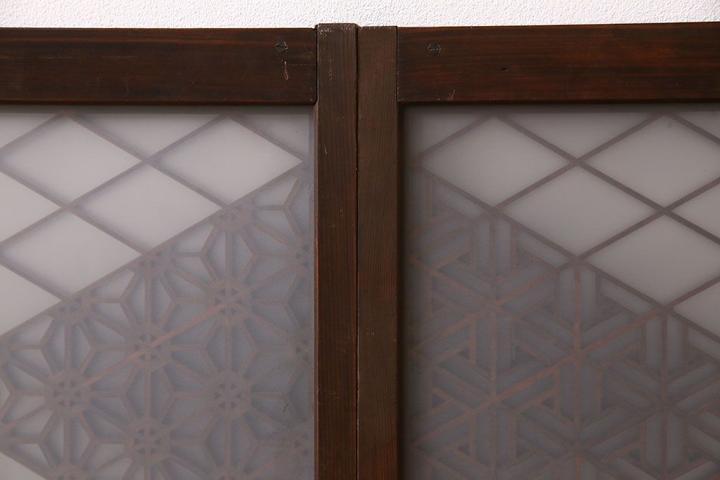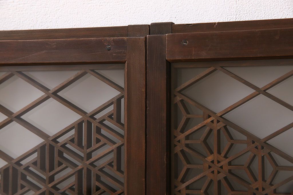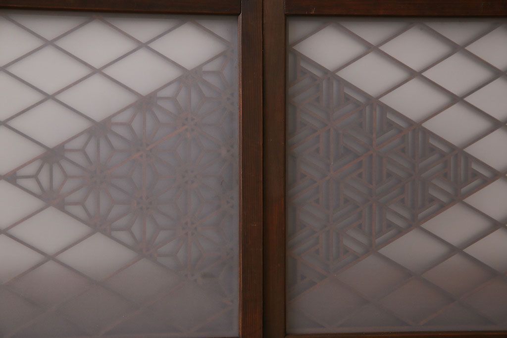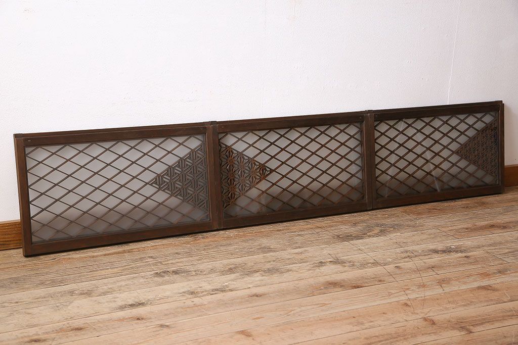 和製アンティーク 和モダン すりガラス入り!上品な組子の明り取り(明かり取り)3枚セット(窓)