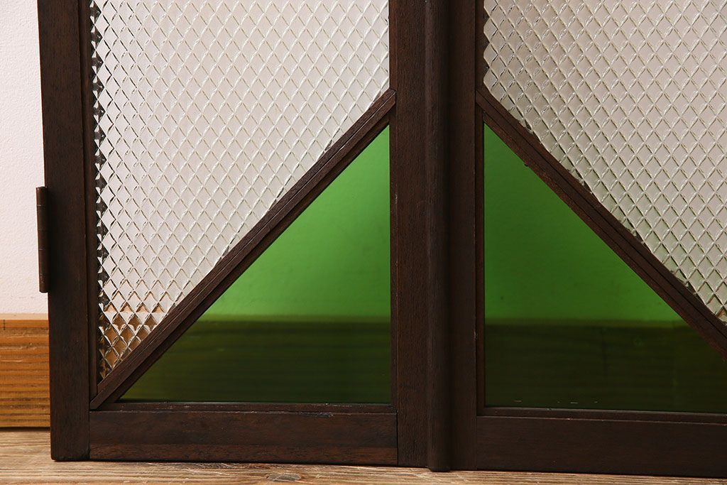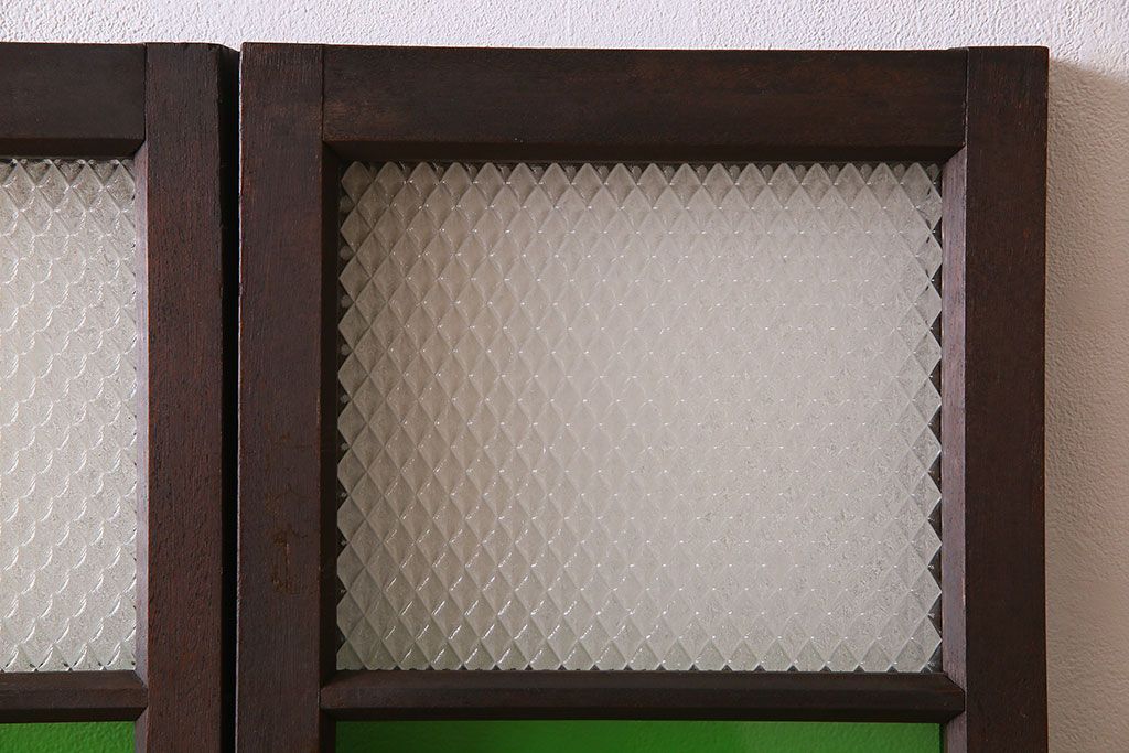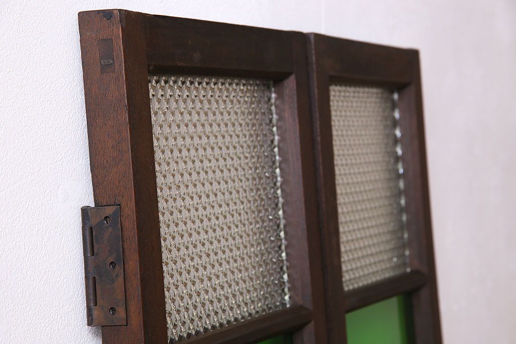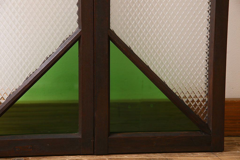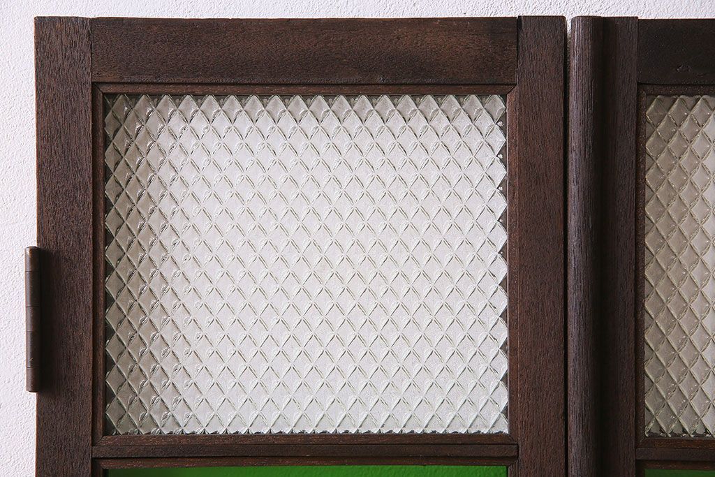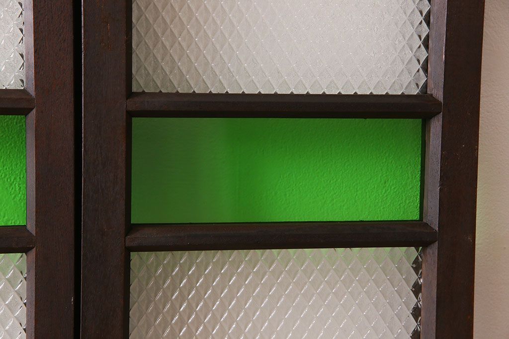 和製アンティーク 大正ロマン プレスガラスの味わいと色ガラスが美しいガラスドア2枚セット(窓)(3)