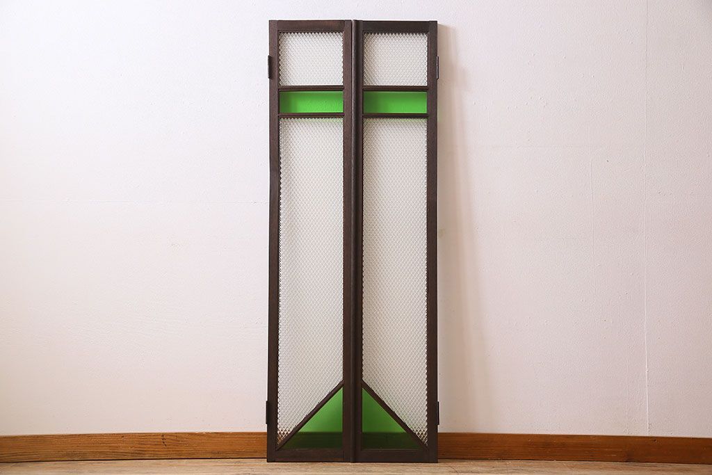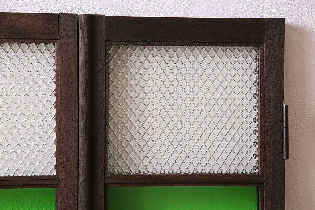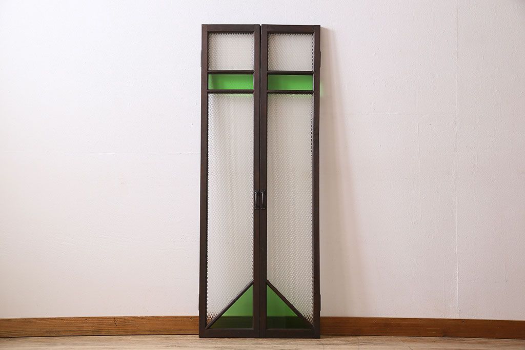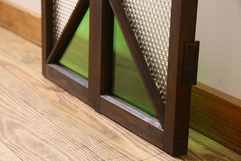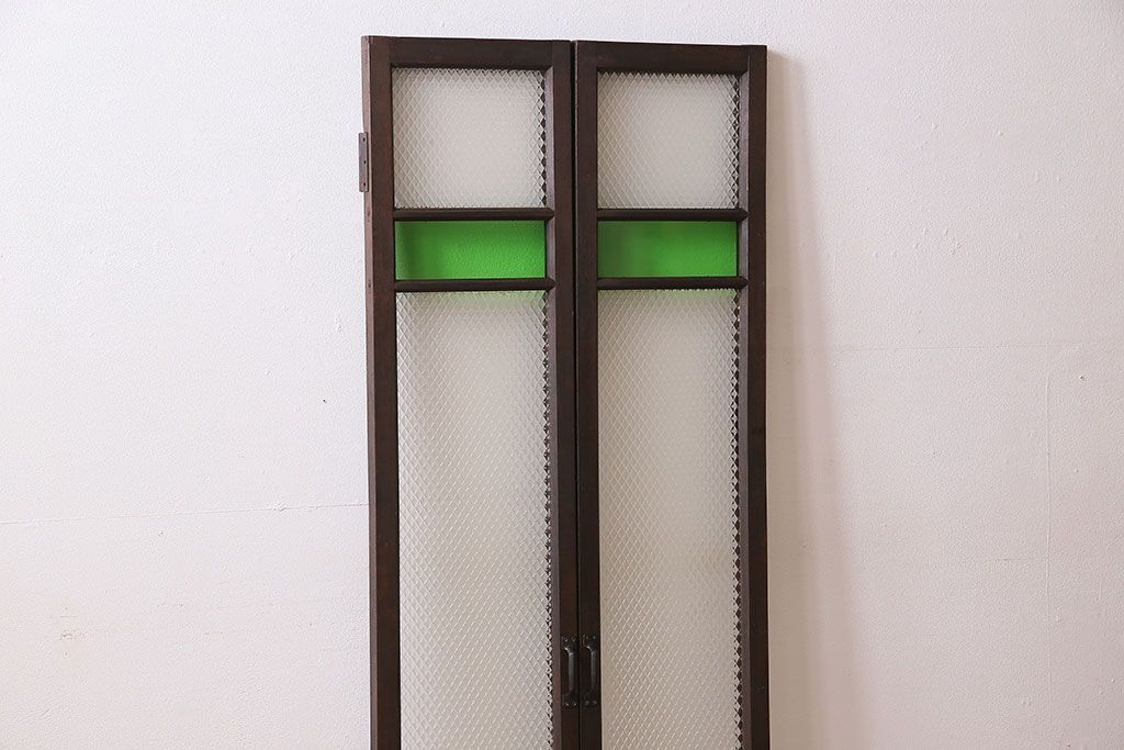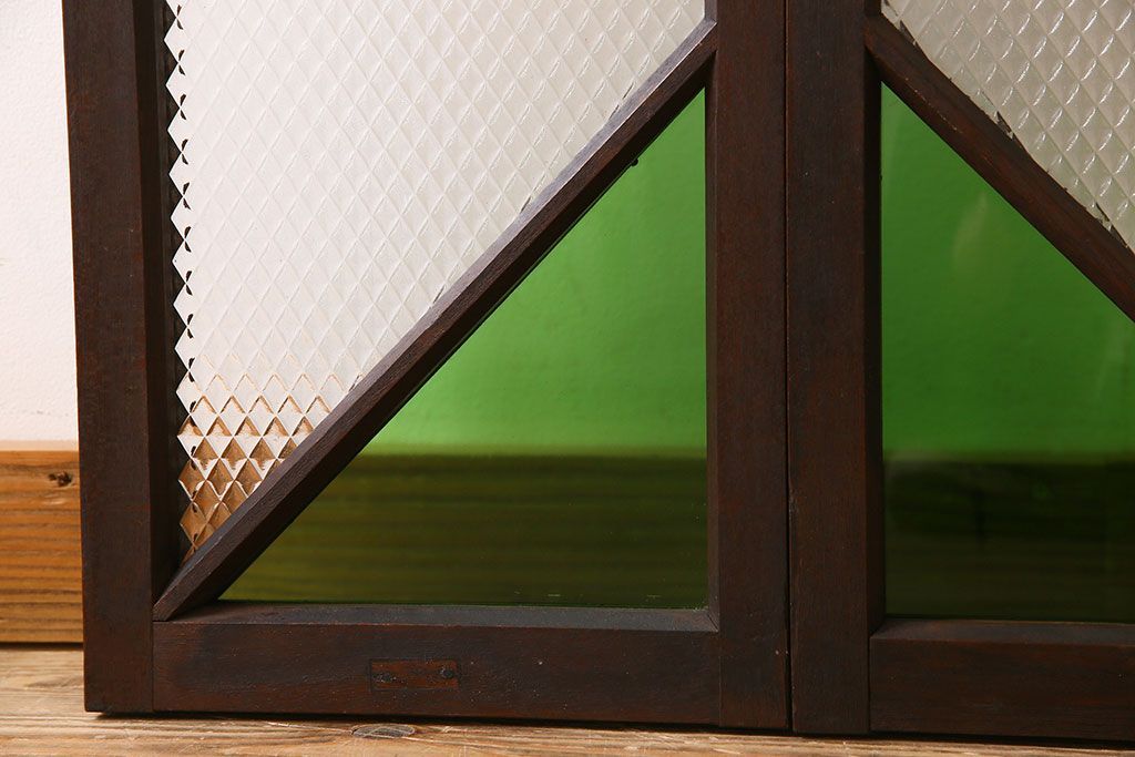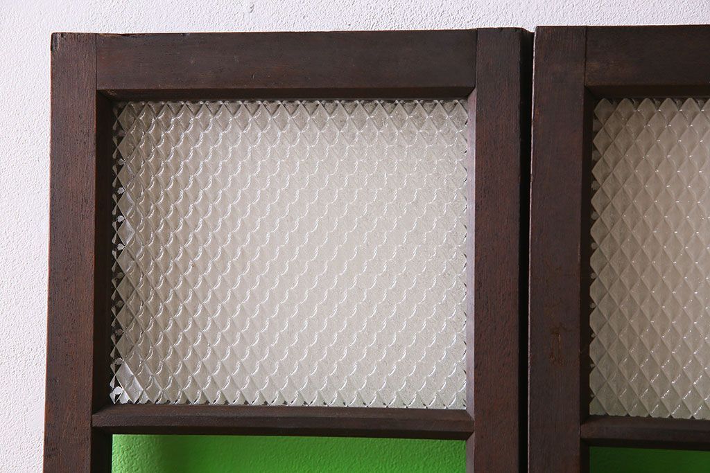 和製アンティーク 大正ロマン プレスガラスの味わいと色ガラスが美しいガラスドア2枚セット(窓)(3)
