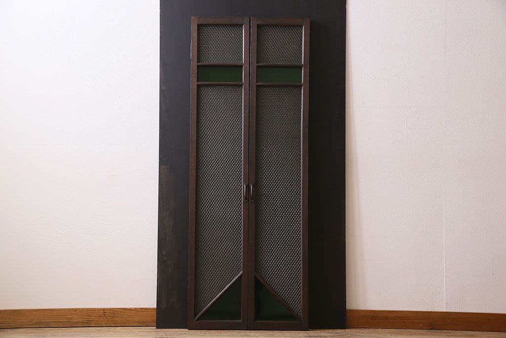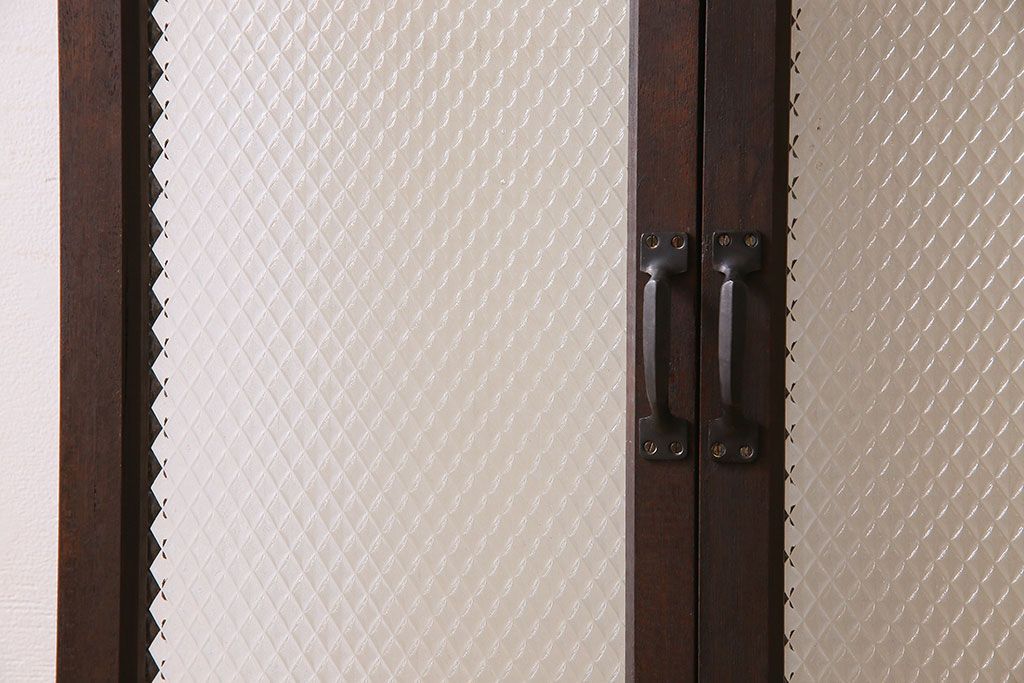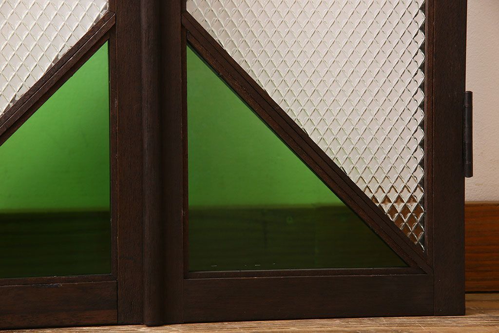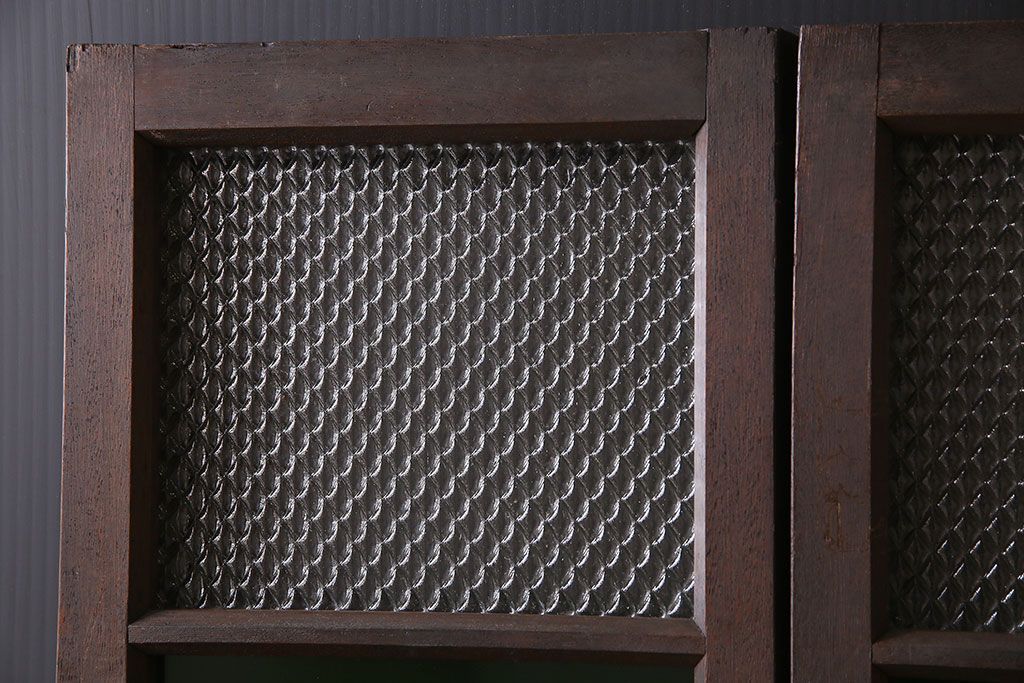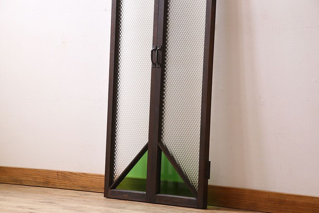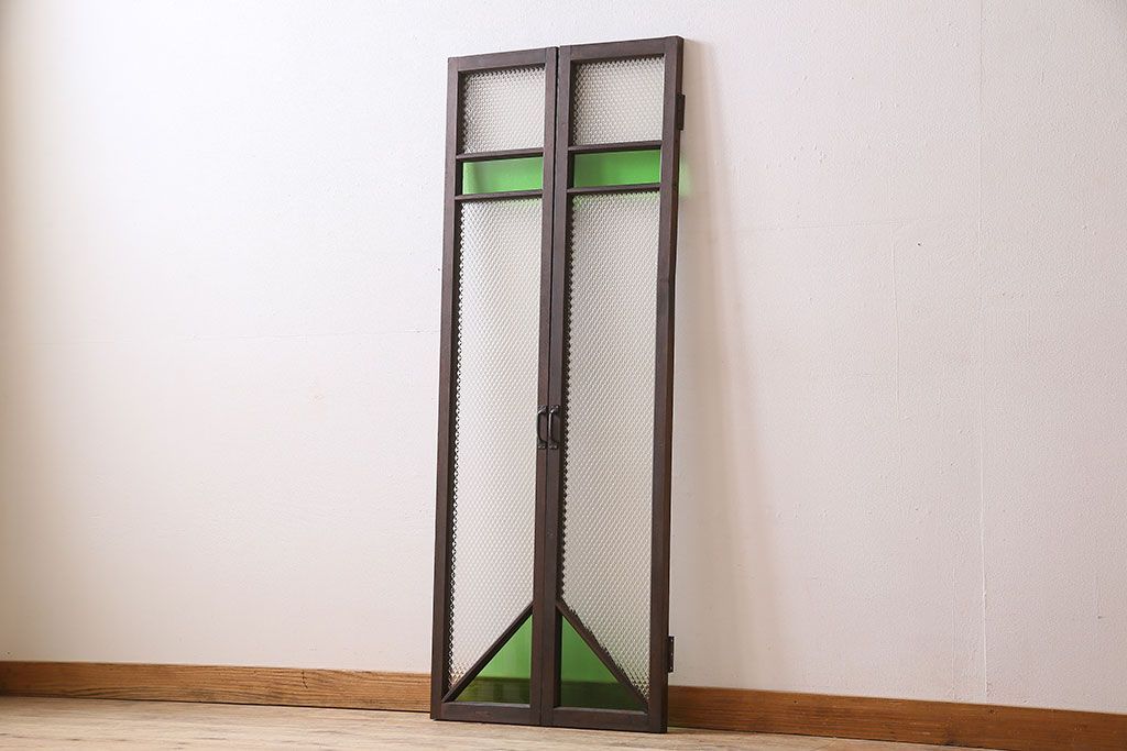和製アンティーク 大正ロマン プレスガラスの味わいと色ガラスが美しいガラスドア2枚セット(窓)(3)