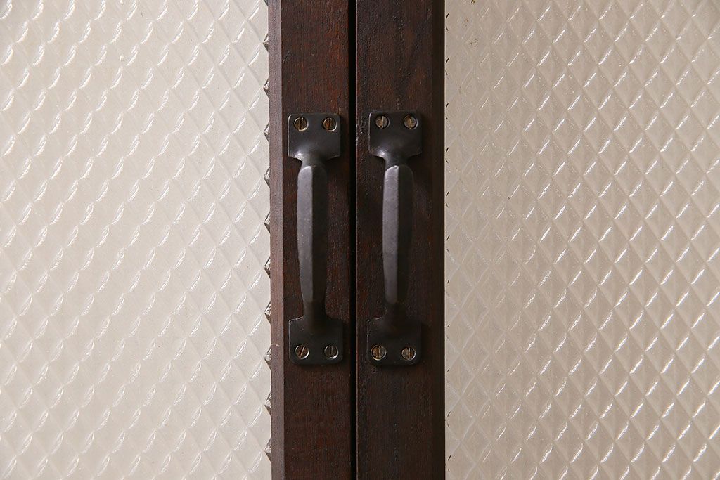 和製アンティーク 大正ロマン プレスガラスの味わいと色ガラスが美しいガラスドア2枚セット(窓)(3)です。