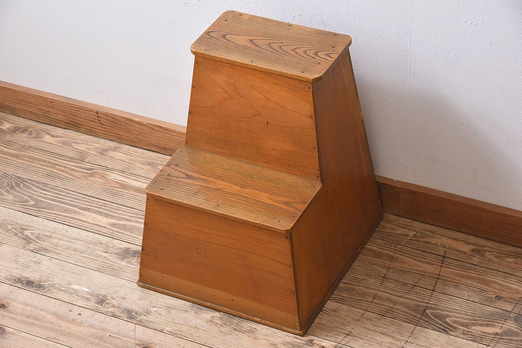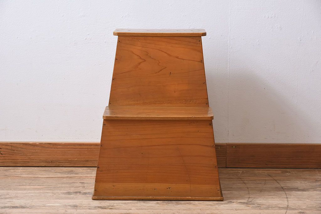 アンティーク雑貨 アンティーク レトロ 古い木製の踏み台(欅・檜)