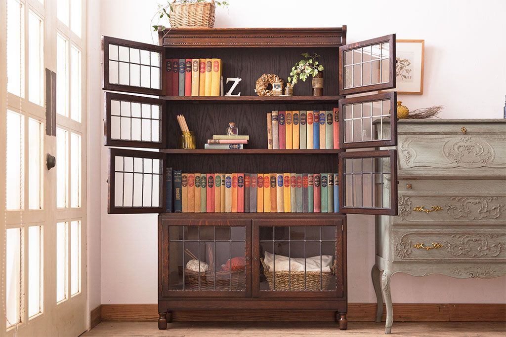 ラフジュ工房> キャビネット・戸棚> 本箱 > アンティーク家具 イギリスアンティーク ステンドグラス入り!スタッキングキャビネット(ブックケース)