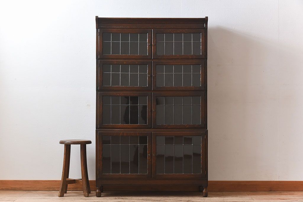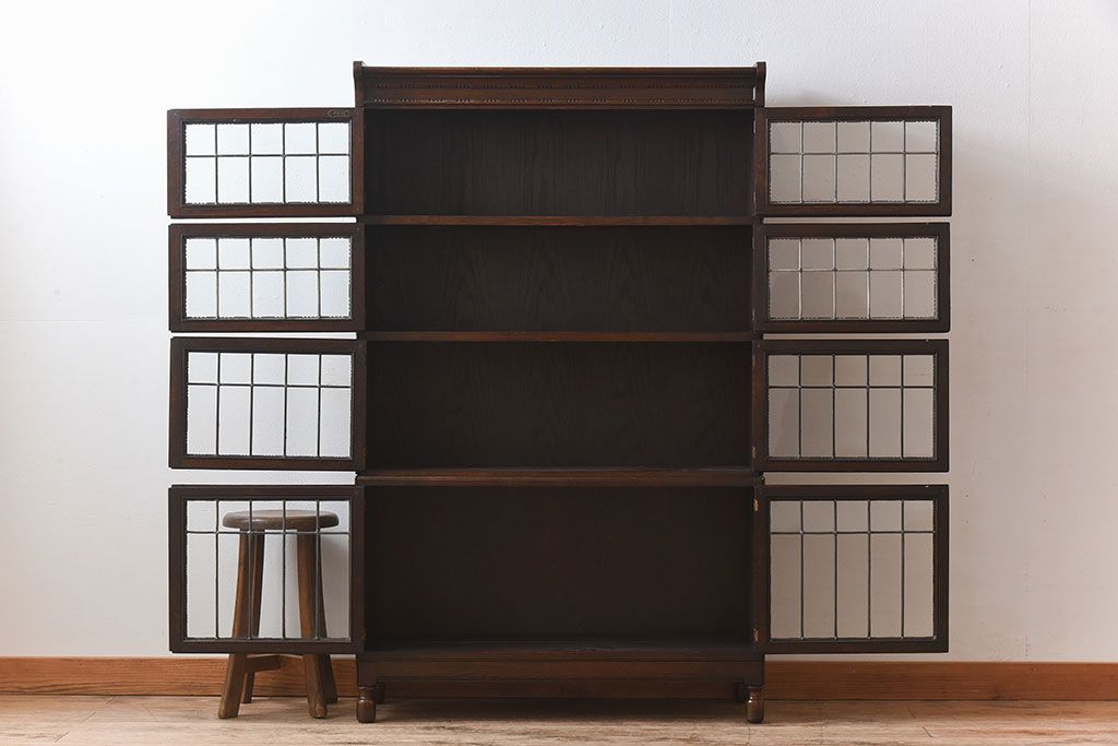 アンティーク家具 イギリスアンティーク ステンドグラス入り!スタッキングキャビネット(ブックケース)